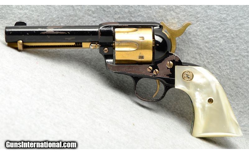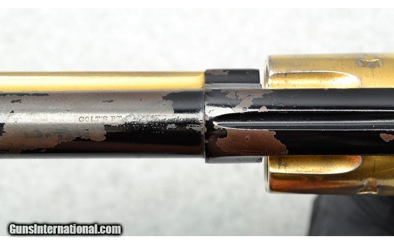 Description: This first gen Colt is priced right for someone to put back the way it should be! The black coating comes off easily with just a fingernail. The revolver does have a timing issue, so it is being sold as a wallhanger only. Save this bit of American history! .38 WCF SOLD Antique: Yes Chambers: 6 rounds Metal Condition: Plumb patina visible under what looks to be flaking black paint Wood Condition: Grips excellent Bore Condition: Strong rifling with some pitting in the grooves Barrels: 4 3/4-inch Triggers: Single action Weight: 2 lb 3 oz Sights: Fixed Item Location: Cheektowaga, NY |
