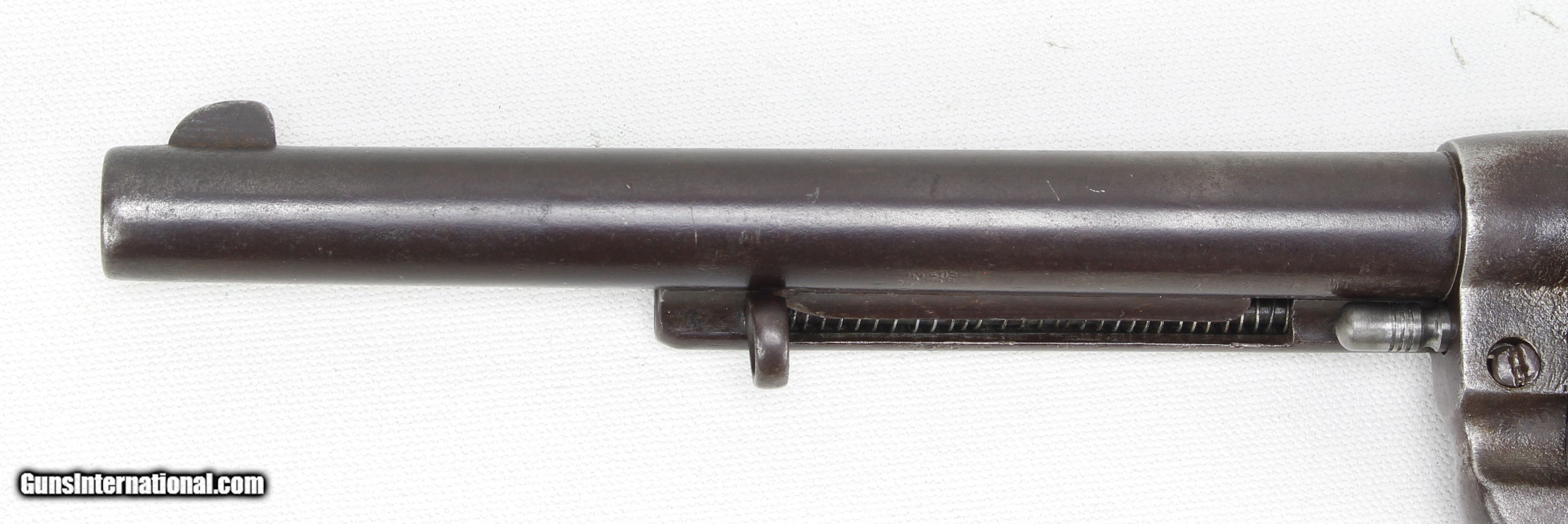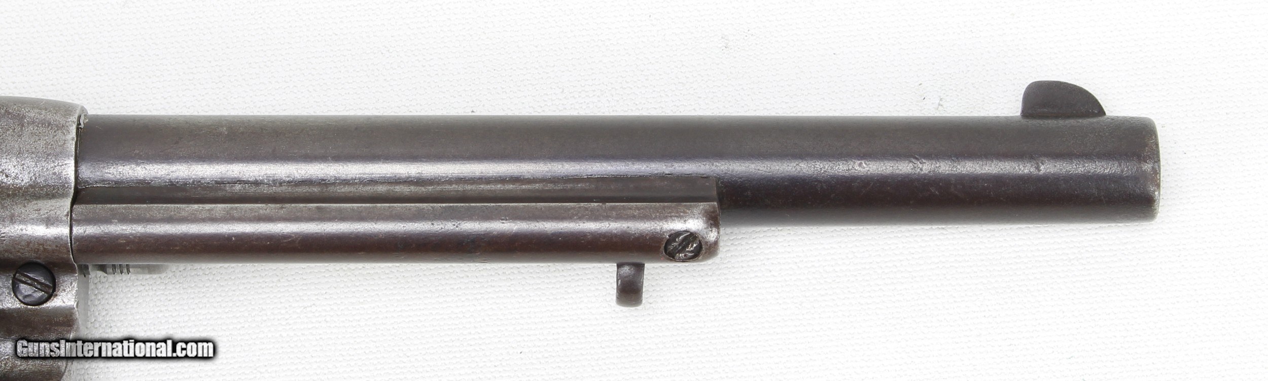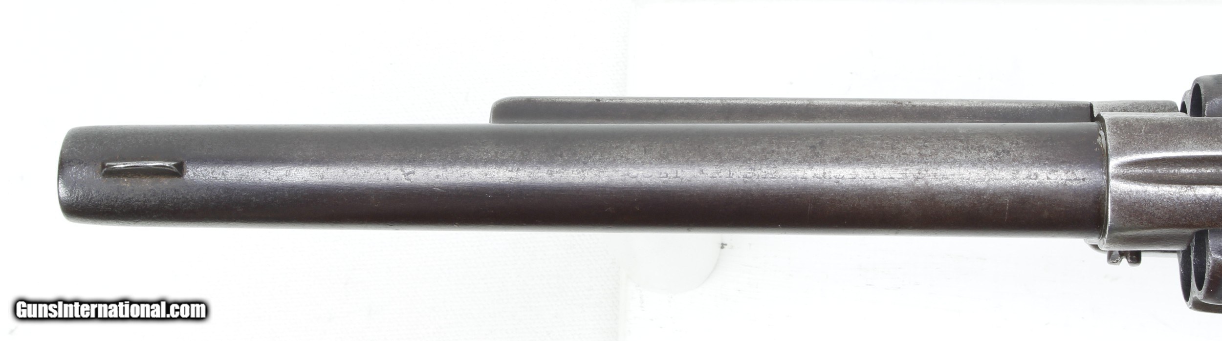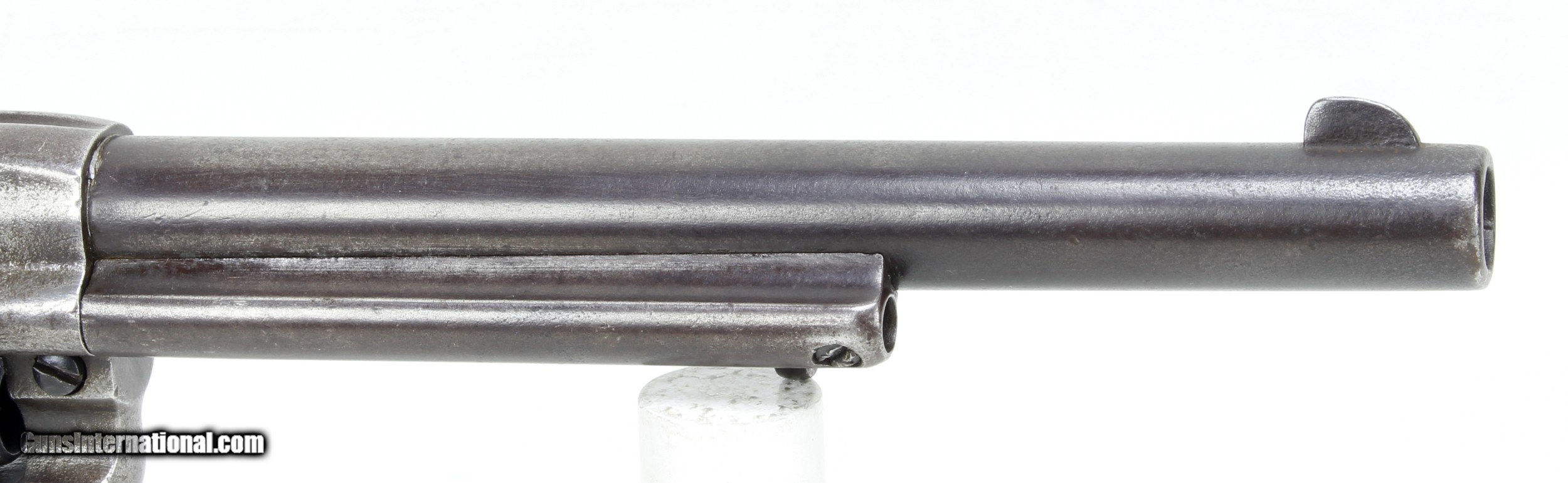 Description: Colt Model 1878 Revolver in .45 Colt. 7 1/2" barrel. Bore is good to very good for age. Slightly frosted, scattered light pitting and clear rifling. The metal finish has turned to a Patina color as not much blue remains. The wood grips are in good condition for their age, showing some handling marks and wear. Gun would require some work and replacement parts to function correctly. Such as another Cylinder Hand and Cylinder Bushing and pin has some wear effecting lock-up. This is an Antique and requires no FFl to purchase. SOLD Antique: Yes Manufacturer: Colt Model: 1878 DA Caliber Info: .45 Colt Bore: Good to VG for age Condition: Good Metal Condition: Good for age Barrels: 7 1/2 |