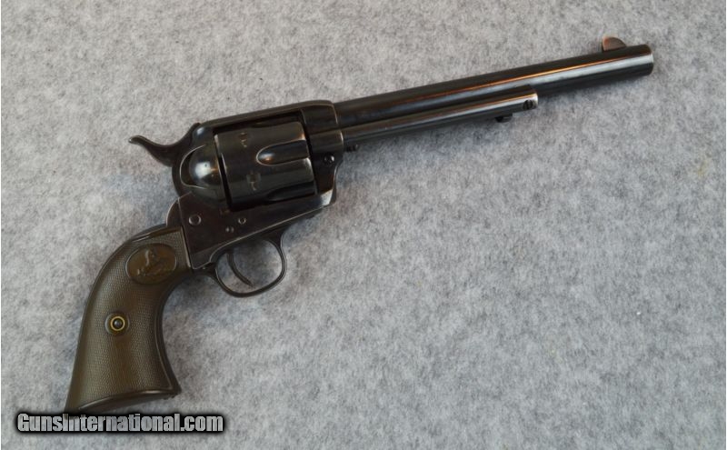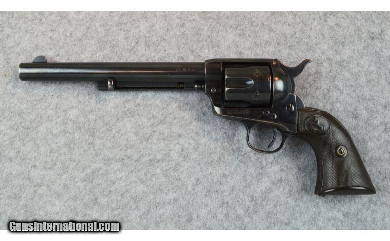 Description: Here is a Colt Single Action Army in caliber 38 Long Colt. The serial number on the firearm is 180162 which indicates a manufactuer date of 1898 from the Colt serial number archives. This firearm has been reblued sometime in it's life time, with the bluing still crisp on the firearm. There is a slight rub mark on the front of the barrel from holster wear. It locks up tight, and the action shows no sign of heavy use or wear and tear. The grips are a brownish colt logo. SOLD Antique: Yes Manufacturer: 1898 Caliber Info: 38 Long Colt Metal Condition: Good Wood Condition: Good Bore Condition: Fair Item Location: Oklahoma City, OK |