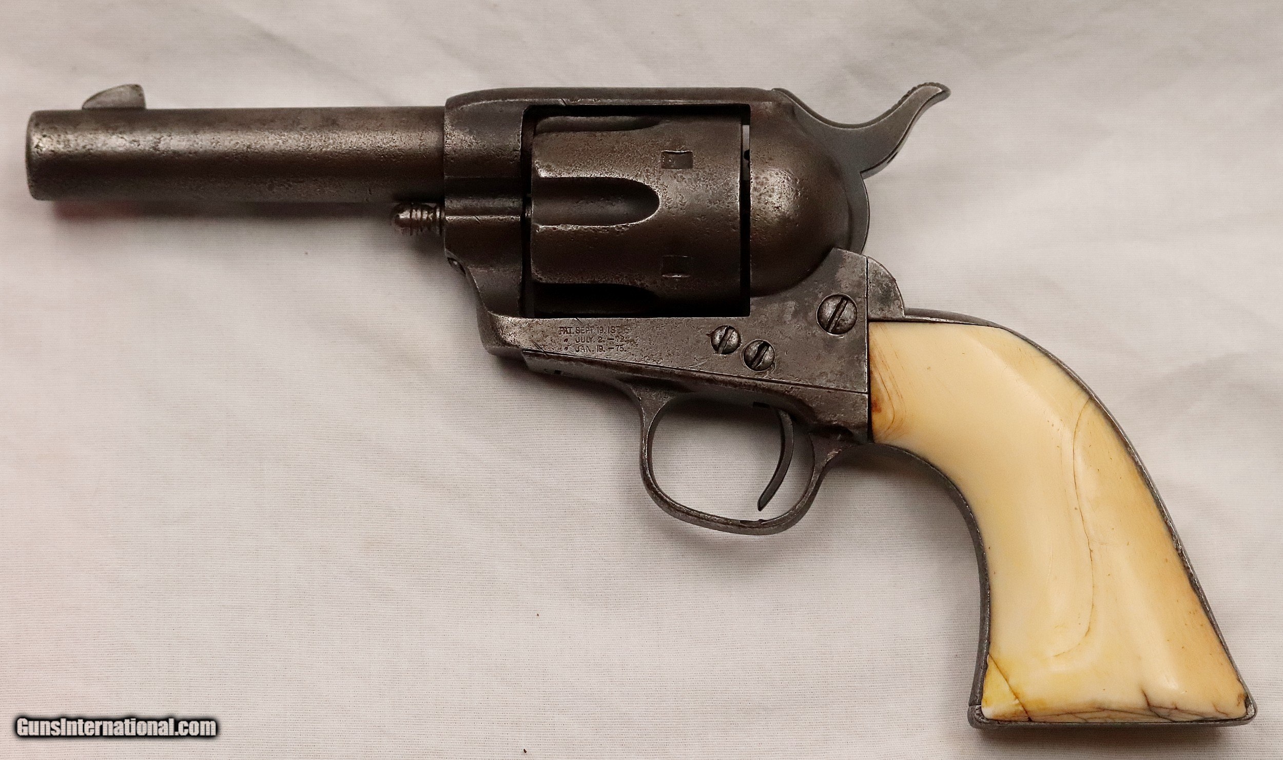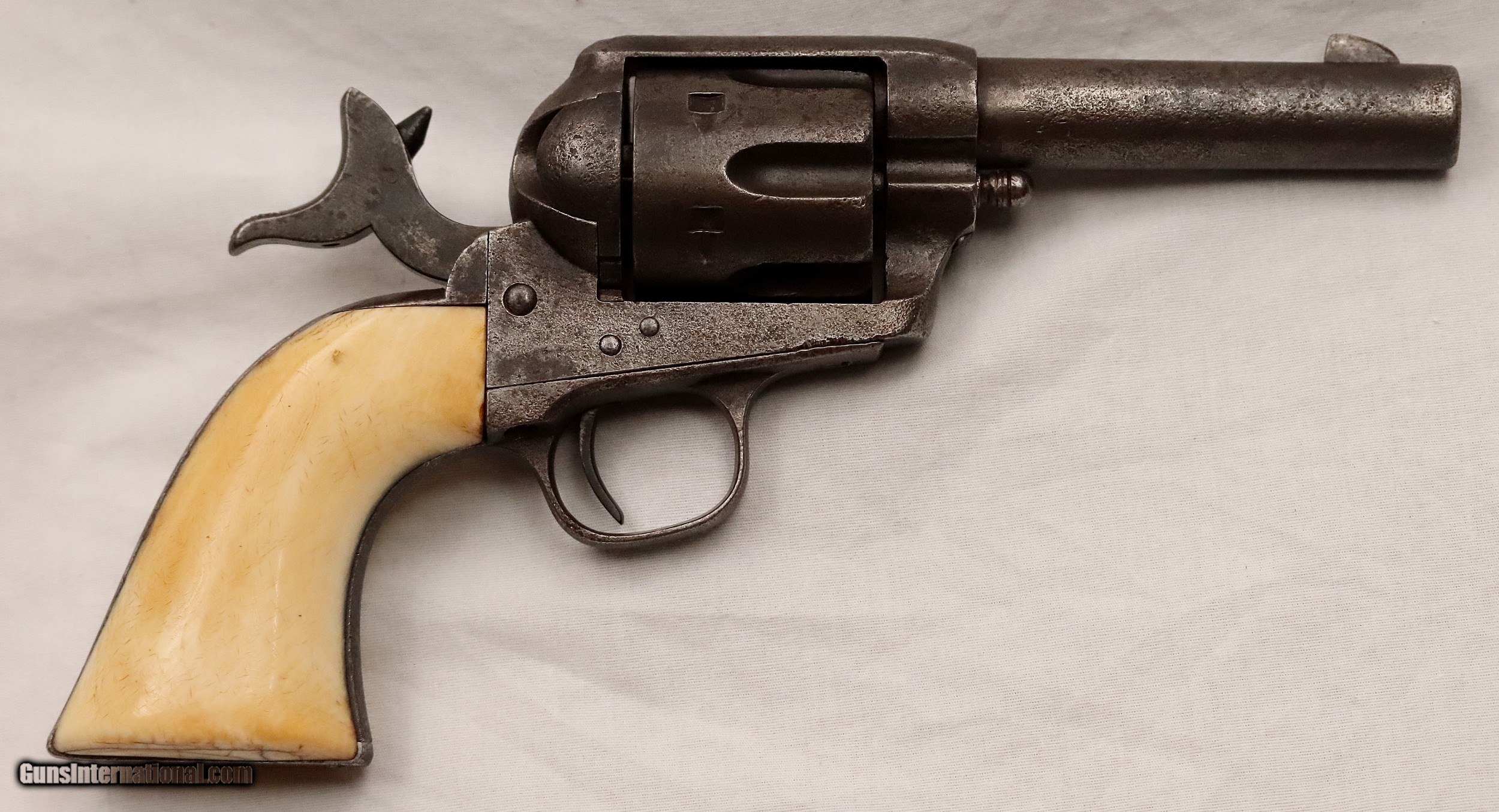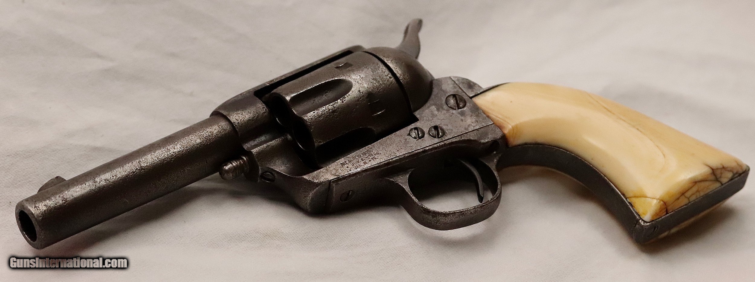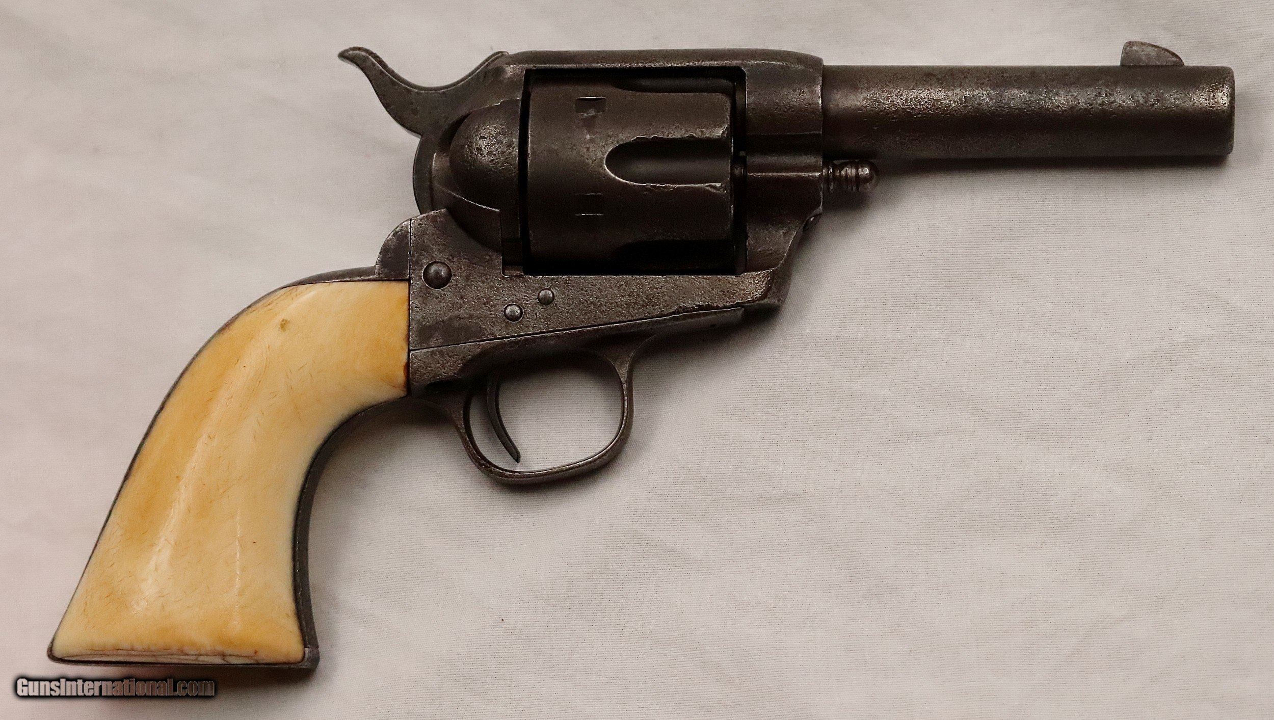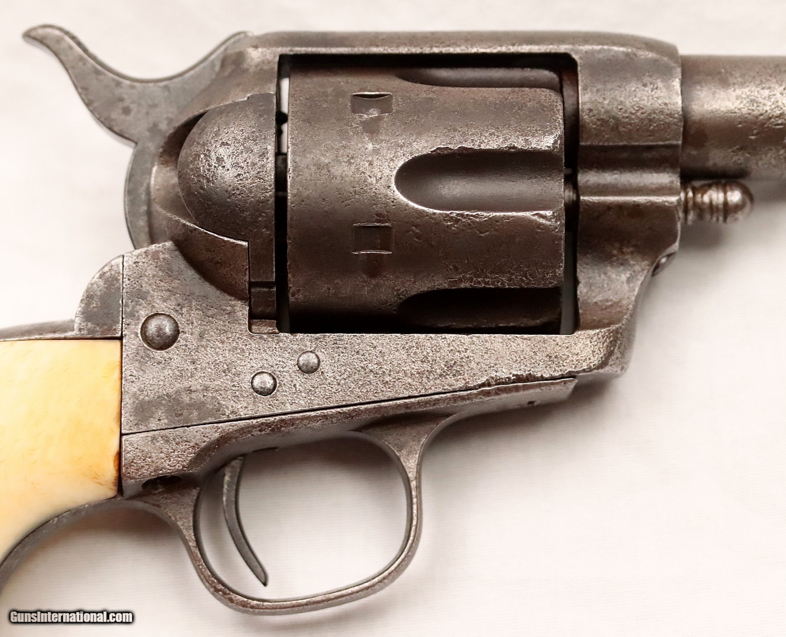 Description: This Colt Sheriff’s Model must have a rich history but unfortunately, it’s been lost to the ages. What we do know has been provided by substantial research. The May 26, 1976, Colt letter confirms the caliber and barrel length and says it was shipped to Hibbard, Spencer, Bartlett & Co. Chicago Illinois on Feb. 25,1882. It was one of 10 firearms in the shipment. The March 7, 2000, letter from Edwin Wayne Paul reports that Colt SN 77638 was among the First 10 Sheriff models shipped from Colts. Most likely all 10 guns would not have Ivory grips, so it’s probable that the present Ivory’s were installed by a proud new owner. Now our history pool freezes over. We can observe that this poor Colt has had a troubled life. The front end of the gun has uniform pitting all over with the exception of the recessed areas. It must have been wrapped in a damp rag or holster for many years. The protected recessed areas suggest that they were not in contact with the corrosive material. The hammer and grip straps do not show such corrosion, suggesting they may have been exposed to the air. The action is smooth, crisp and tight, much better than would be expected given the overall condition. The bore corroded and rough, it may clean up with some work, but why bother. This Colt is in near relic condition, but that negative is offset by the One of Ten status. Overall, this Colt has a uniform pleasing appearance. If you collect engraved and gold inlayed Colts’ you may not see it, but you are missing out. ITS ABOUT THE HISTORY ! This historic Colt is displayed in a locking glass lid case with a period silver doller. The coin is dated 1882, from the Carson City mint, the Comstock load. This is a great addition to any Colt Collection or a fantastic accent piece for your office or den. Serial number 77638. Cal. .45 Colt with a 4” barrel. It will be shipped with both letters the custom presentation case and the 1882 Silver Doller as shown. Antique Firearm. Antique firearms, pre 1899 do not require a Federal License. For purchase, a copy of a Government Issued Identification (Drivers License, Etc), showing date of birth and current address will be required. Beaver Creek Arms TERMS & CONDITIONS Objective: As a collector of 35 years and Licensed Firearms Dealer since 1989 I have a clear definition of a satisfactory transaction. I will be paid as we agreed to, and you will be satisfied with your purchase. My goal is to establish a client list of satisfied repeat customers who will recommend me to other collectors. It’s just that simple. Exiled Saudi princes with secret funds needing change from an over paid purchase need not apply. Notice: ALL Federal, State, & Local firearms laws will be followed. I will take NO shortcuts in the process of a legal sale or transfer, so please don’t ask. SHIPPING: Shipments are made via U.S.P.S. Priority Mail, Insured, with a return receipt. Packing, Shipping and Insurance cost for this handgun is $45.00. Checks are to be made out to: Steve Clark Mailed to: 380 Beaver Creek Rd, Dillsburg PA 17019 Availability: All items are in stock and available for immediate shipment. Please call or email and an Item will be held up to a week with your Name, Address, & Phone Number. Items marked Reserved are being held for awaiting payment or on layaway. If you are interested in a reserved item, please call or E-Mail to be placed on a backup list. FIREARMS: Antique firearms, pre 1899 do not require a Federal License. For purchase, a copy of a Government Issued Identification (Drivers License, Etc), showing date of birth and current address will be required. GUARANTEE: Your complete satisfaction is assured, see objective above. If you are not satisfied, please contact me within 3 days of receipt. Please don’t fire the weapon, safety, function and accuracy are NOT Guaranteed. Any weapon offered by Beaver Creek Arms is never test fired nor is there any representation the gun is functional and safe to fire. These guns are sold for collectors and only represented as used firearms that must be checked by a competent person, observe all the necessary safety precautions prior to attempting to load and fire one of these weapons RETURNS: Returns must be made within 3 days of receipt. They must be received in exactly the same condition with no parts exchanged. If it has been altered, damaged, or fired, a refund will not be made. Packing, shipping and insurance cost will not be refunded. All layaway purchases are returnable for merchandise credit only. PAYMENT: Bank check, Personal check, and Money Orders are preferred. Visa and MasterCard are accepted with a 3% processing fee. For Visa and MasterCard orders please provide the account number, code number, expiration date, name on card, phone number and card billing address. This information can be phoned in, or E-Mailed. All orders must be paid in advance, C.O.D. orders are not accepted. Checks, both Bank and Personal must clear before the order will be shipped, usually a 2 week delay. LAYAWAYS: A 20% deposit is required. Balance is due in 60 days. Deposits are non-refundable and are forfeited after 60 days. Layaway sales are returnable for merchandise credit only. SALES TAX: Pennsylvania state sales tax is 6% for in state purchases. The payment of other states sales tax, if applicable, for shipped items is the buyers responsibility. DISCREET: Client information will remain Confidential. Your privacy is protected. SOLD Antique: Yes |
