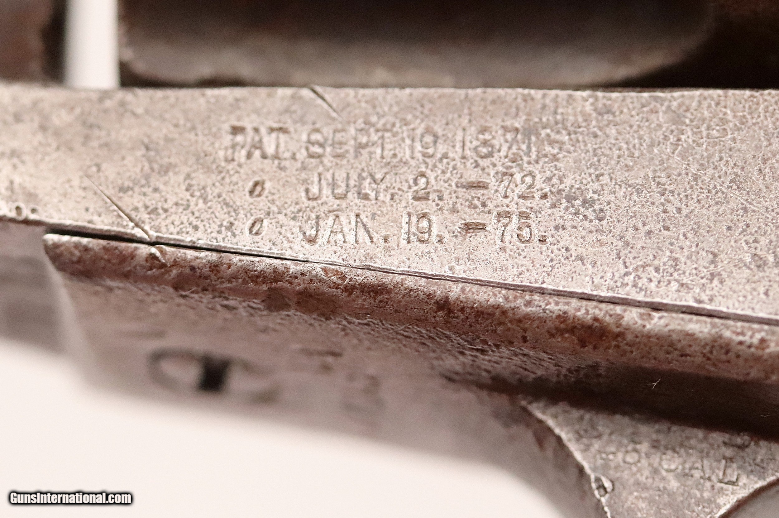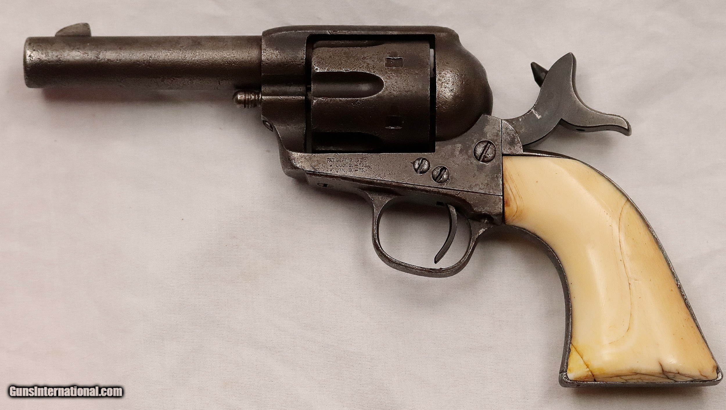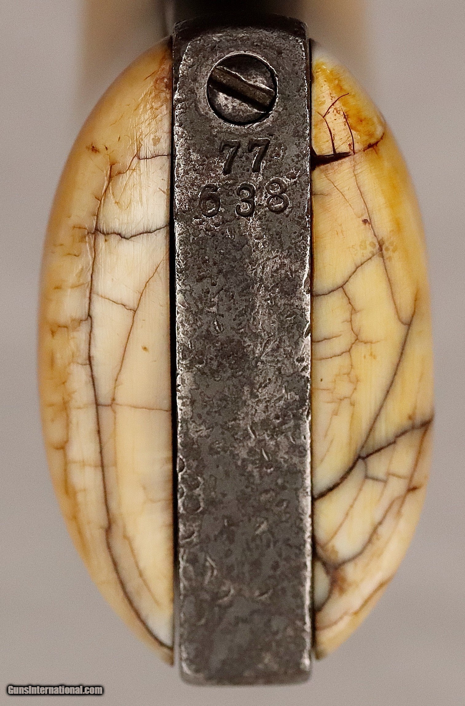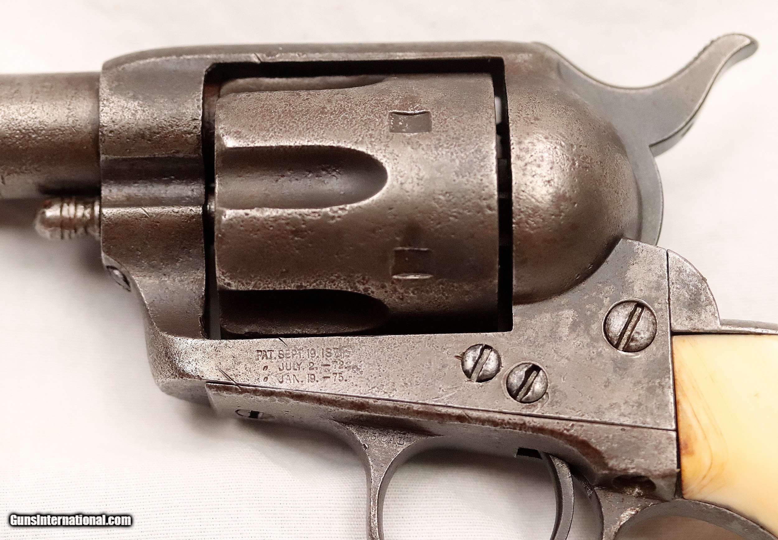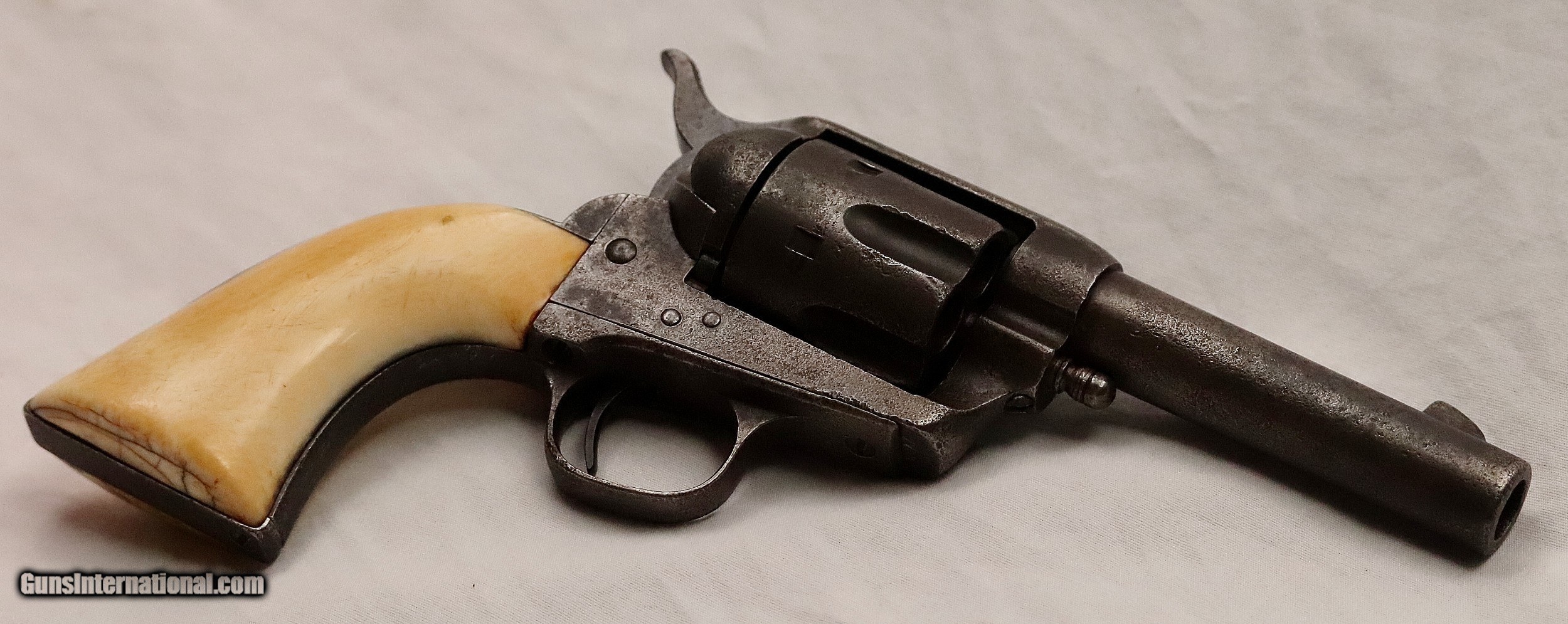 Description: This Colt Sheriff’s Model must have a rich history but unfortunately, it’s been lost to the ages. What we do know has been provided by substantial research. The May 26, 1976, Colt letter confirms the caliber and barrel length and says it was shipped to Hibbard, Spencer, Bartlett & Co. Chicago Illinois on Feb. 25,1882. It was one of 10 firearms in the shipment. The March 7, 2000, letter from Edwin Wayne Paul reports that Colt SN 77638 was among the First 10 Sheriff models shipped from Colts. Most likely all 10 guns would not have Ivory grips, so it’s probable that the present Ivory’s were installed by a proud new owner. Now our history pool freezes over. We can observe that this poor Colt has had a troubled life. The front end of the gun has uniform pitting all over with the exception of the recessed areas. It must have been wrapped in a damp rag or holster for many years. The protected recessed areas suggest that they were not in contact with the corrosive material. The hammer and grip straps do not show such corrosion, suggesting they may have been exposed to the air. The action is smooth, crisp and tight, much better than would be expected given the overall condition. The bore corroded and rough, it may clean up with some work, but why bother. This Colt is in near relic condition, but that negative is offset by the One of Ten status. Overall, this Colt has a uniform pleasing appearance. If you collect engraved and gold inlayed Colts’ you may not see it, but you are missing out. ITS ABOUT THE HISTORY ! This historic Colt is displayed in a locking glass lid case with a period silver doller. The coin is dated 1882, from the Carson City mint, the Comstock load. This is a great addition to any Colt Collection or a fantastic accent piece for your office or den. Serial number 77638. Cal. .45 Colt with a 4” barrel. It will be shipped with both letters the custom presentation case and the 1882 Silver Doller as shown. Antique Firearm. Antique firearms, pre 1899 do not require a Federal License. For purchase, a copy of a Government Issued Identification (Drivers License, Etc), showing date of birth and current address will be required. Beaver Creek Arms TERMS & CONDITIONS Objective: As a collector of 35 years and Licensed Firearms Dealer since 1989 I have a clear definition of a satisfactory transaction. I will be paid as we agreed to, and you will be satisfied with your purchase. My goal is to establish a client list of satisfied repeat customers who will recommend me to other collectors. It’s just that simple. Exiled Saudi princes with secret funds needing change from an over paid purchase need not apply. Notice: ALL Federal, State, & Local firearms laws will be followed. I will take NO shortcuts in the process of a legal sale or transfer, so please don’t ask. SHIPPING: Shipments are made via U.S.P.S. Priority Mail, Insured, with a return receipt. Packing, Shipping and Insurance cost for this handgun is $45.00. Checks are to be made out to: Steve Clark Mailed to: 380 Beaver Creek Rd, Dillsburg PA 17019 Availability: All items are in stock and available for immediate shipment. Please call or email and an Item will be held up to a week with your Name, Address, & Phone Number. Items marked Reserved are being held for awaiting payment or on layaway. If you are interested in a reserved item, please call or E-Mail to be placed on a backup list. FIREARMS: Antique firearms, pre 1899 do not require a Federal License. For purchase, a copy of a Government Issued Identification (Drivers License, Etc), showing date of birth and current address will be required. GUARANTEE: Your complete satisfaction is assured, see objective above. If you are not satisfied, please contact me within 3 days of receipt. Please don’t fire the weapon, safety, function and accuracy are NOT Guaranteed. Any weapon offered by Beaver Creek Arms is never test fired nor is there any representation the gun is functional and safe to fire. These guns are sold for collectors and only represented as used firearms that must be checked by a competent person, observe all the necessary safety precautions prior to attempting to load and fire one of these weapons RETURNS: Returns must be made within 3 days of receipt. They must be received in exactly the same condition with no parts exchanged. If it has been altered, damaged, or fired, a refund will not be made. Packing, shipping and insurance cost will not be refunded. All layaway purchases are returnable for merchandise credit only. PAYMENT: Bank check, Personal check, and Money Orders are preferred. Visa and MasterCard are accepted with a 3% processing fee. For Visa and MasterCard orders please provide the account number, code number, expiration date, name on card, phone number and card billing address. This information can be phoned in, or E-Mailed. All orders must be paid in advance, C.O.D. orders are not accepted. Checks, both Bank and Personal must clear before the order will be shipped, usually a 2 week delay. LAYAWAYS: A 20% deposit is required. Balance is due in 60 days. Deposits are non-refundable and are forfeited after 60 days. Layaway sales are returnable for merchandise credit only. SALES TAX: Pennsylvania state sales tax is 6% for in state purchases. The payment of other states sales tax, if applicable, for shipped items is the buyers responsibility. DISCREET: Client information will remain Confidential. Your privacy is protected. SOLD Antique: Yes |