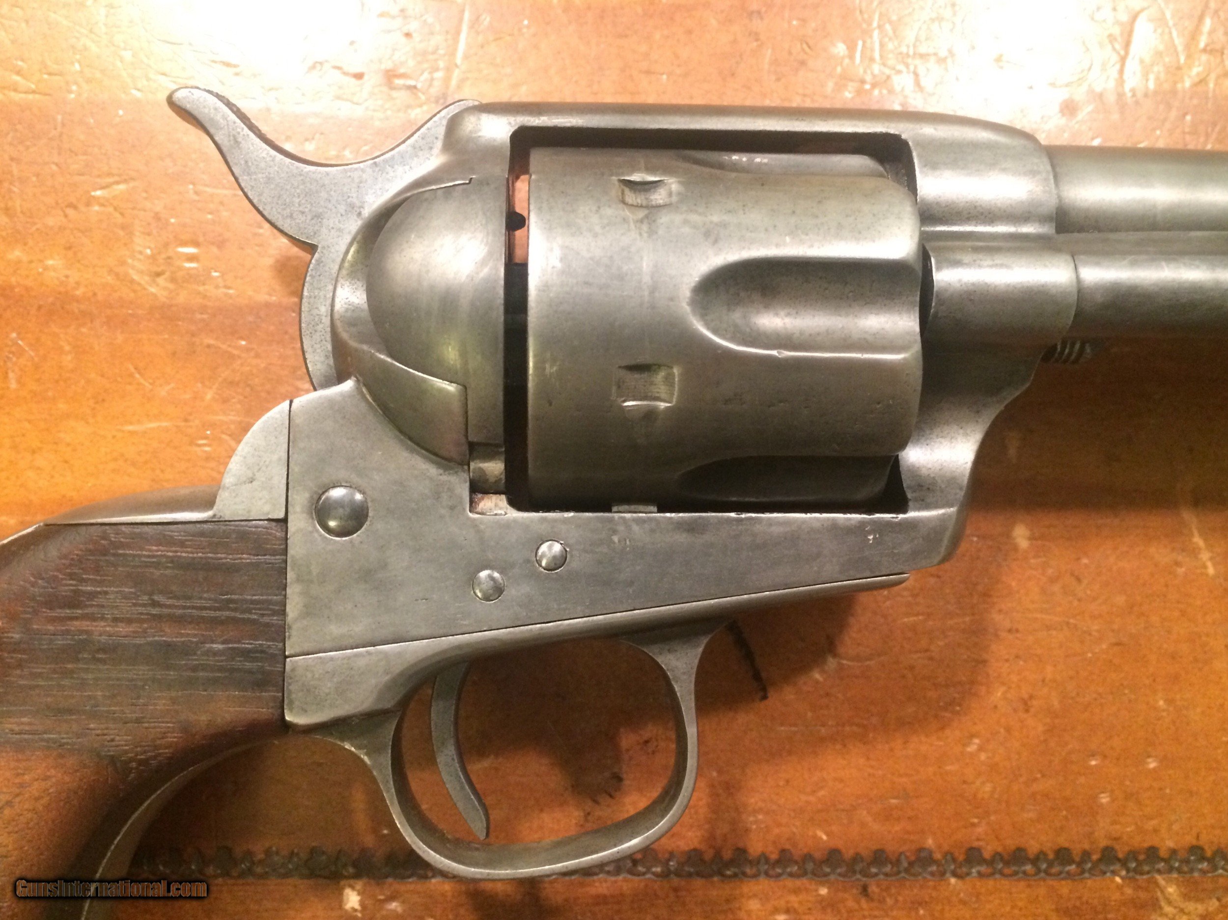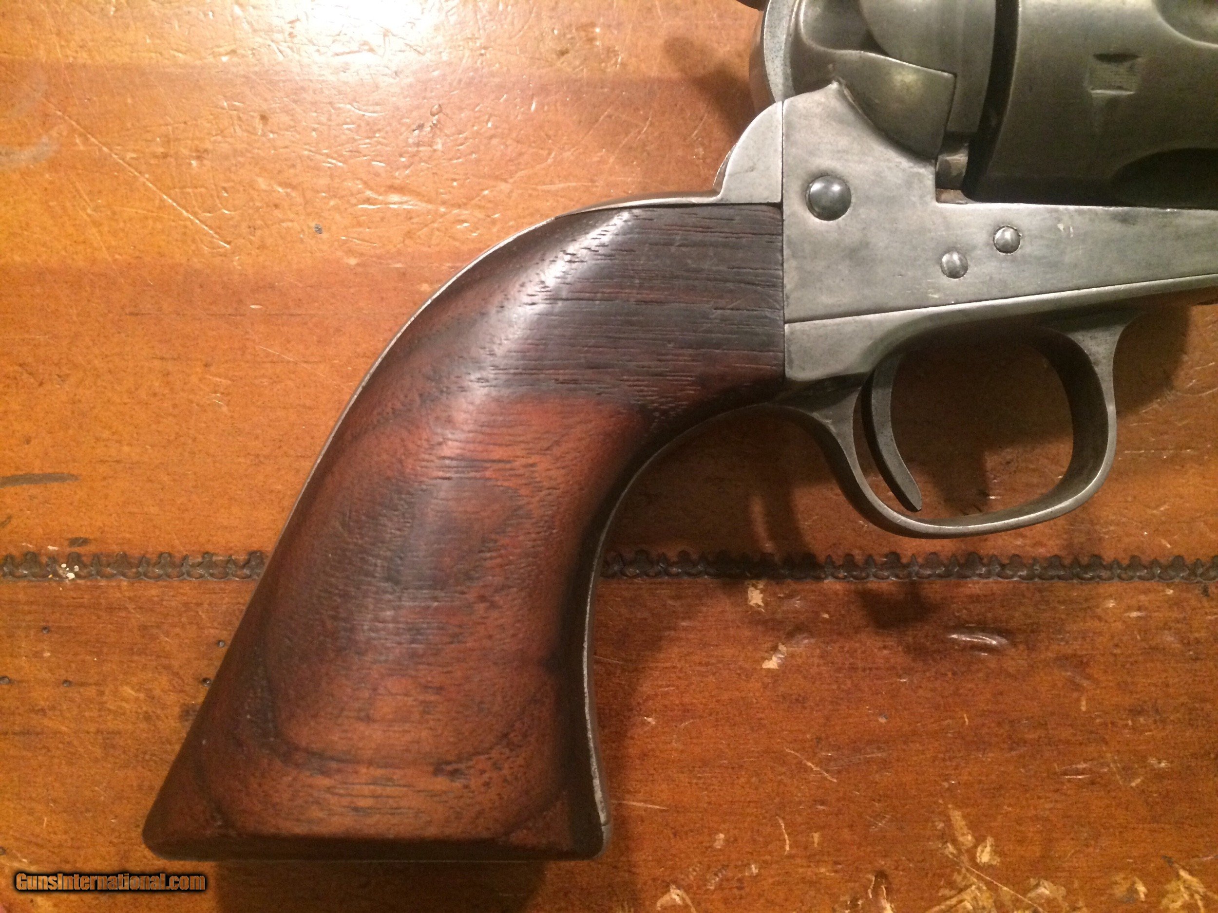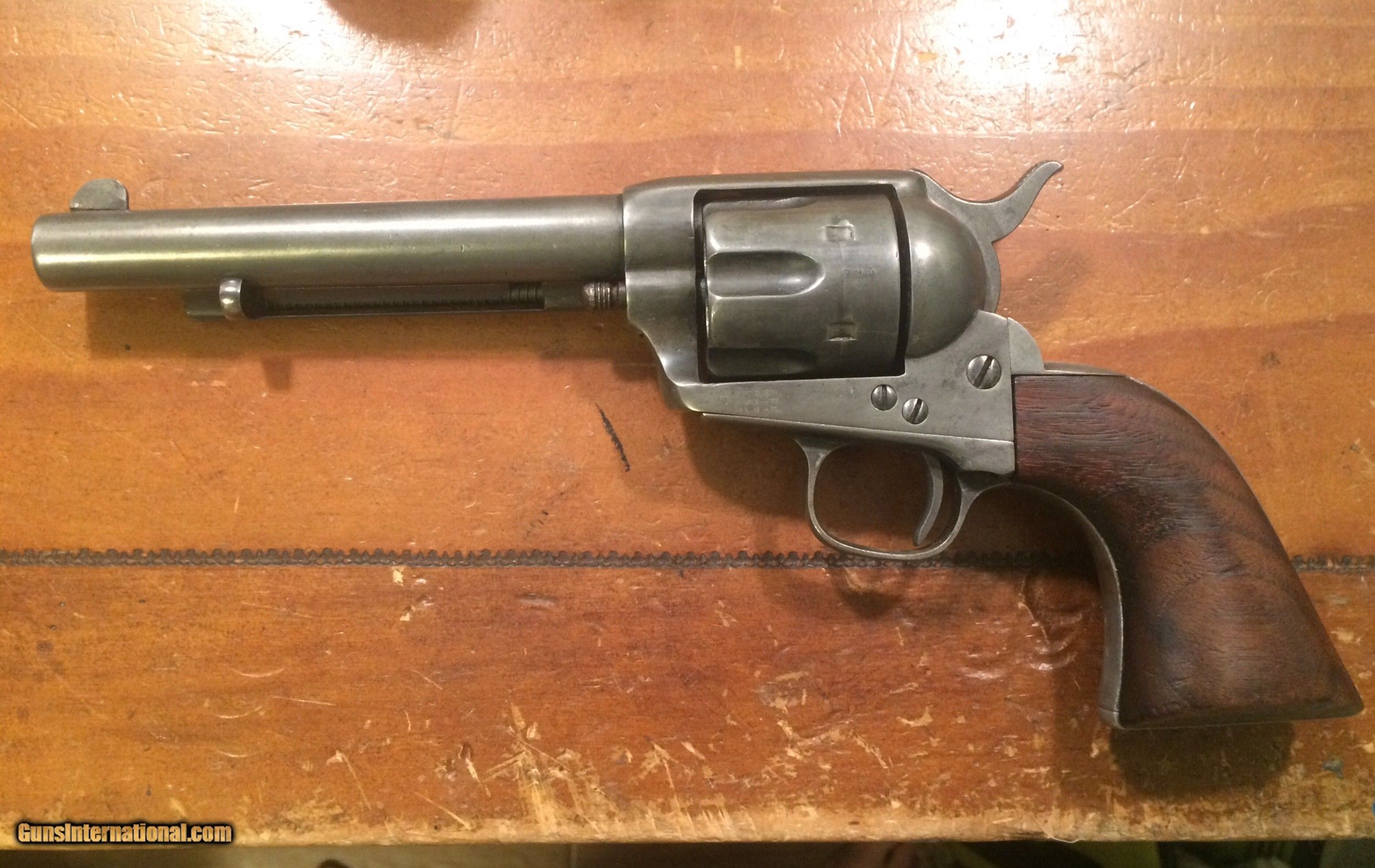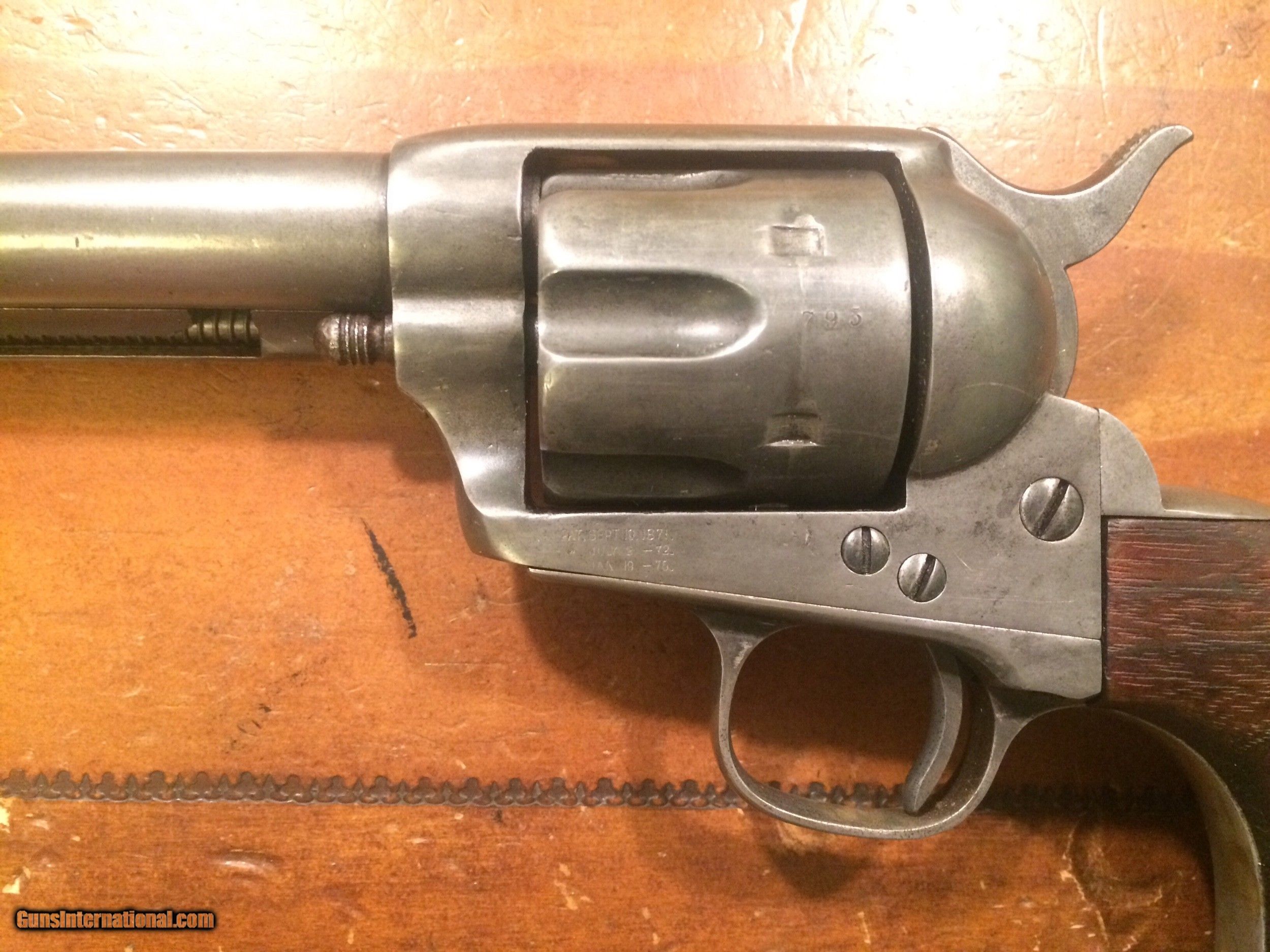 Description: Colt single action 44-40 Frontier Six Shooter made in 1880 shipped to Hartley & Graham per the Colt letter. The action is very good with all four clicks on this old cowboy gun. Serial numbers match on Barrel, cylinder, frame, backstrap and trigger guard. Antique gun can ship direct for $36.00. Glad to answer any question or discuss. Matt 214-957-7574 SOLD Antique: Yes Manufacturer: Colt Model: Frontier Six Shooter |