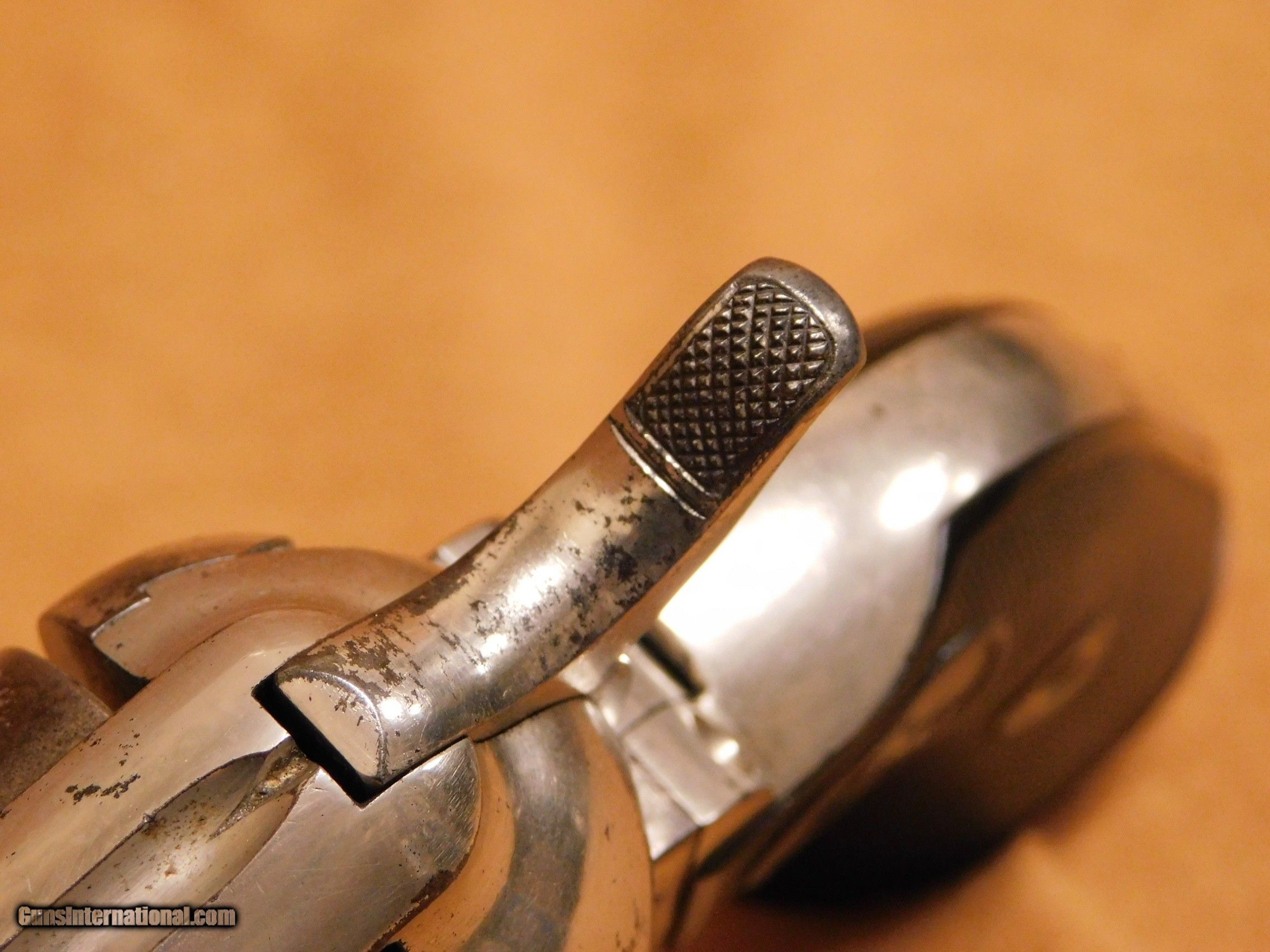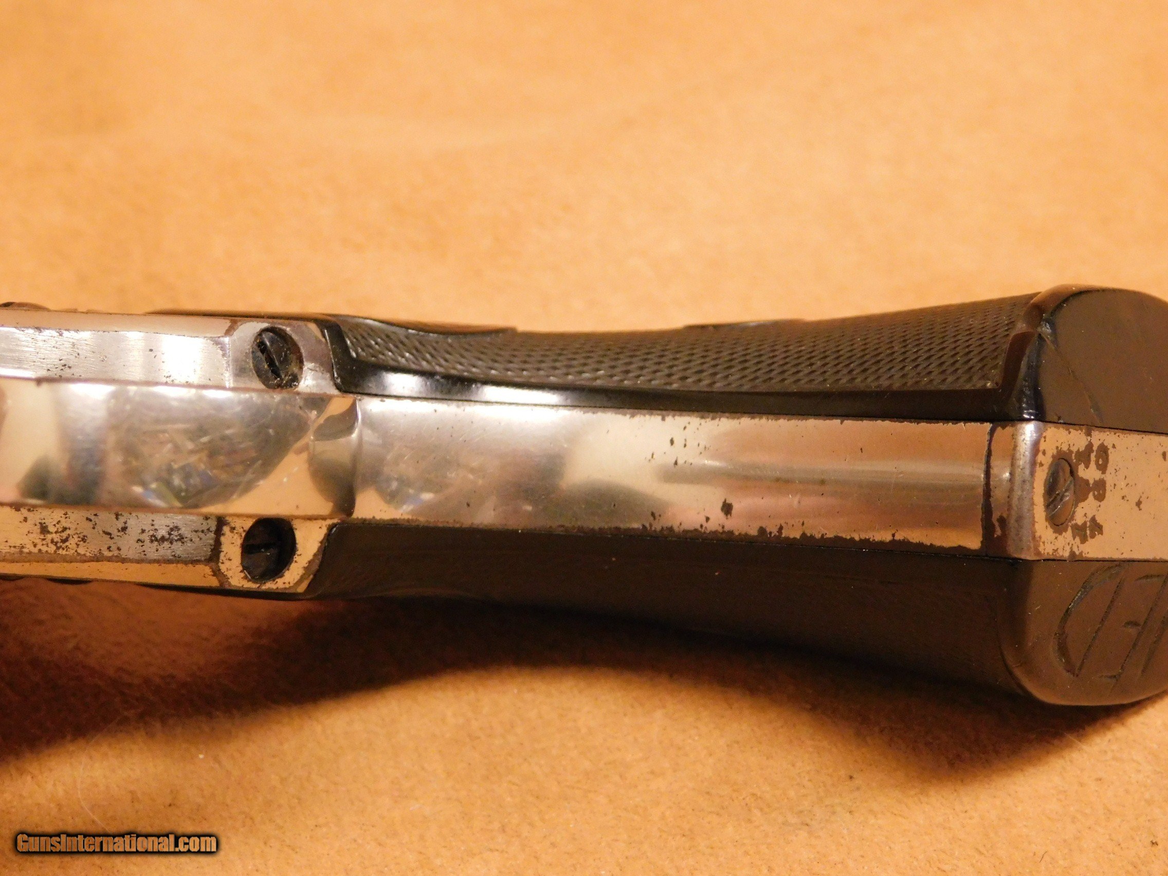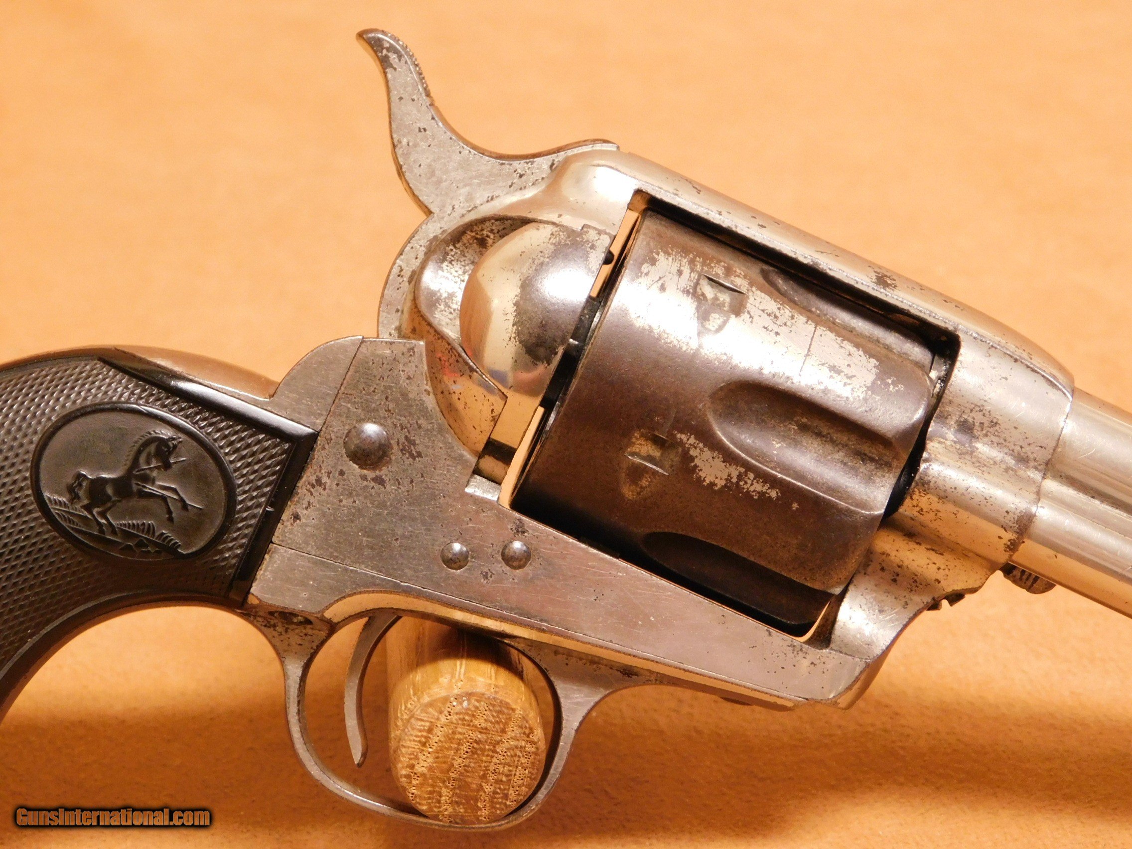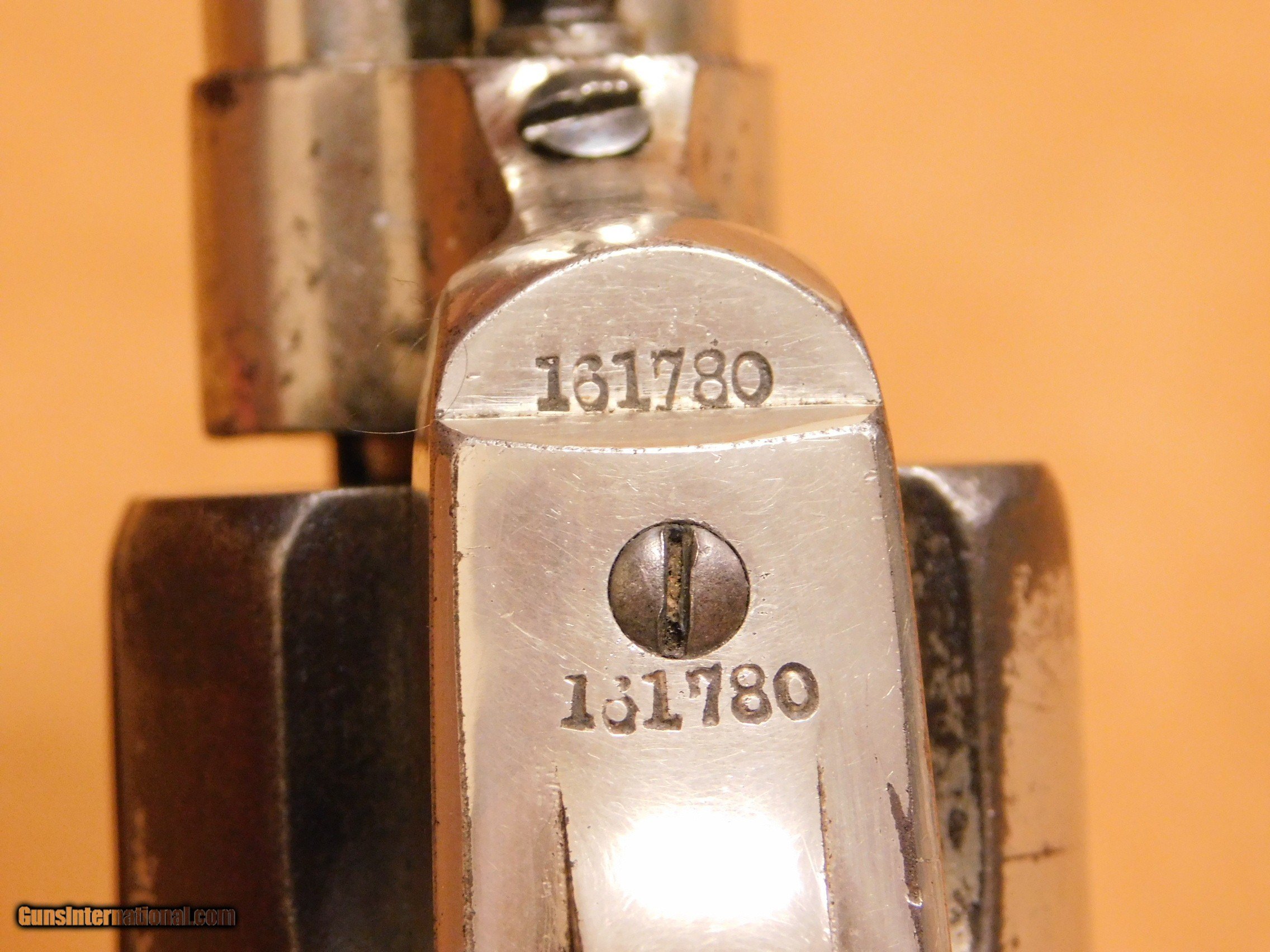 Description: This is a fine example of an antique nickel Colt Single Action Army revolver that was manufactured in 1895. The top of the barrel is marked with the two line address, the left side is marked "38 W.C.F.", and the left side of the frame is marked with the two line, three patent dates followed by the circled Rampant Colt. The underside of the barrel has the factory caliber designation: "41" (38-40 WCF and .41 Long Colt shared the same bore diameter). The bore is in good condition, with light to moderate pitting throughout. The revolver retains approximately 80% of its original nickel finish, with the majority of the loss being confined to the cylinder, muzzle and recoil shield. The screws are un-molested and retain much of their nitre blue. The black gutta percha grips match the condition of the gun and their fitment is perfect. This gun comes with its factory Colt letter, verifying its original configuration. All items are also available for sale in our brick & mortar store and are subject to prior sale. Think long, think wrong. Payment On firearms, we typically only accept credit cards or money orders/cashier's checks.