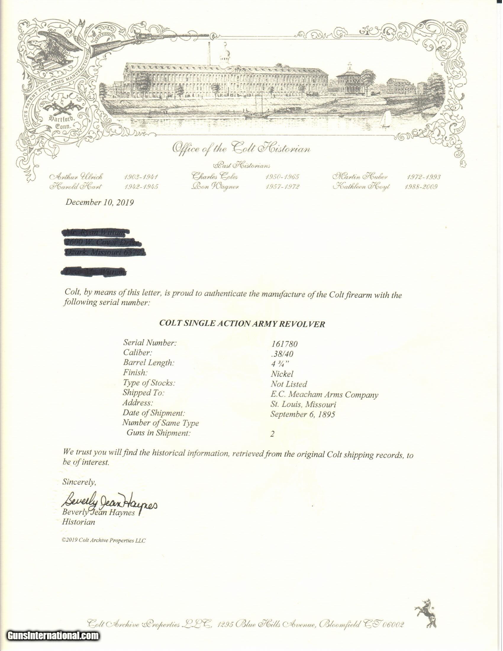 Colt SAA Single Action Army (.38-40, 4-3/4-inch, w/ Factory LETTER, Mfg 1895, ANTIQUE)