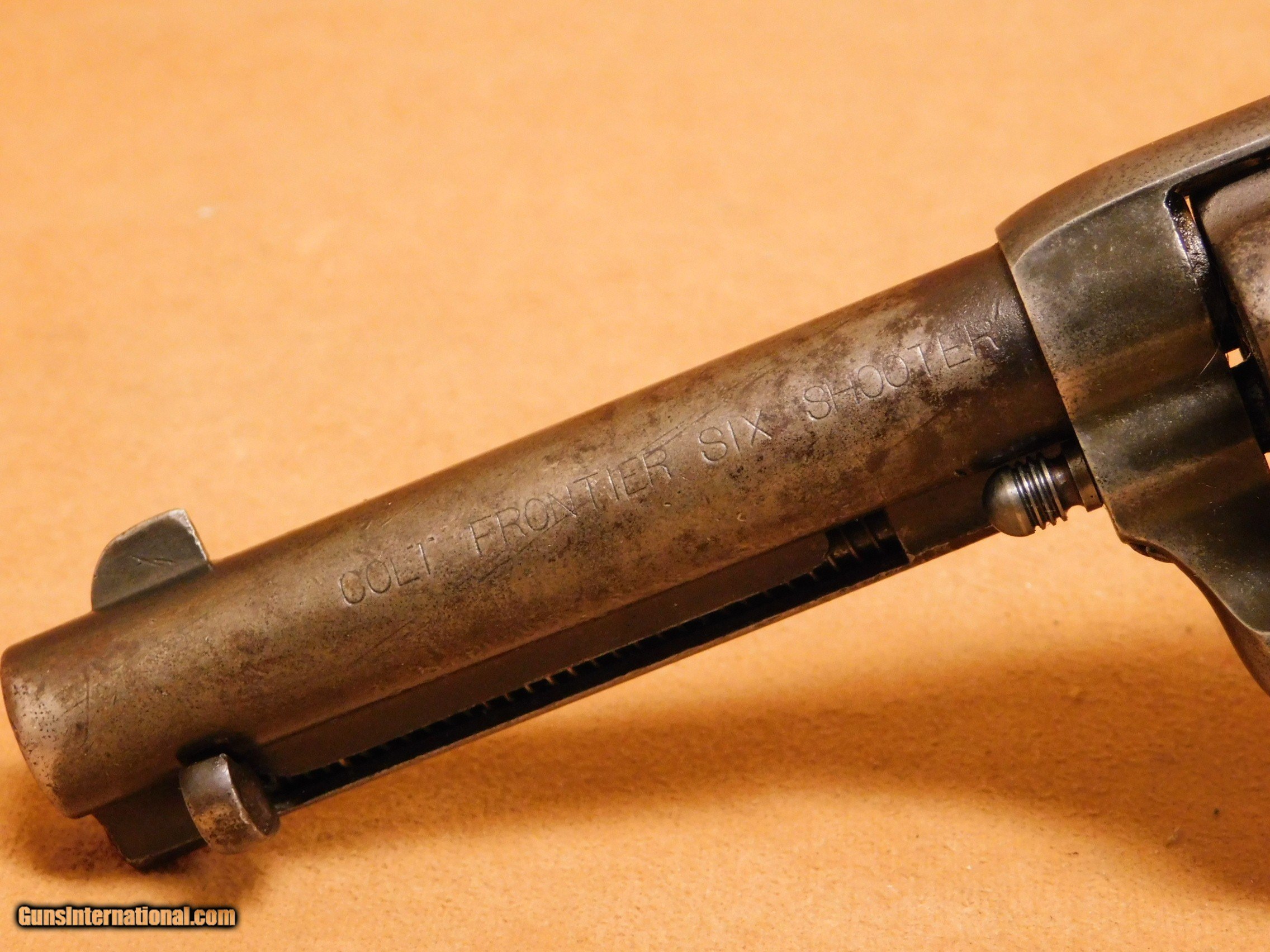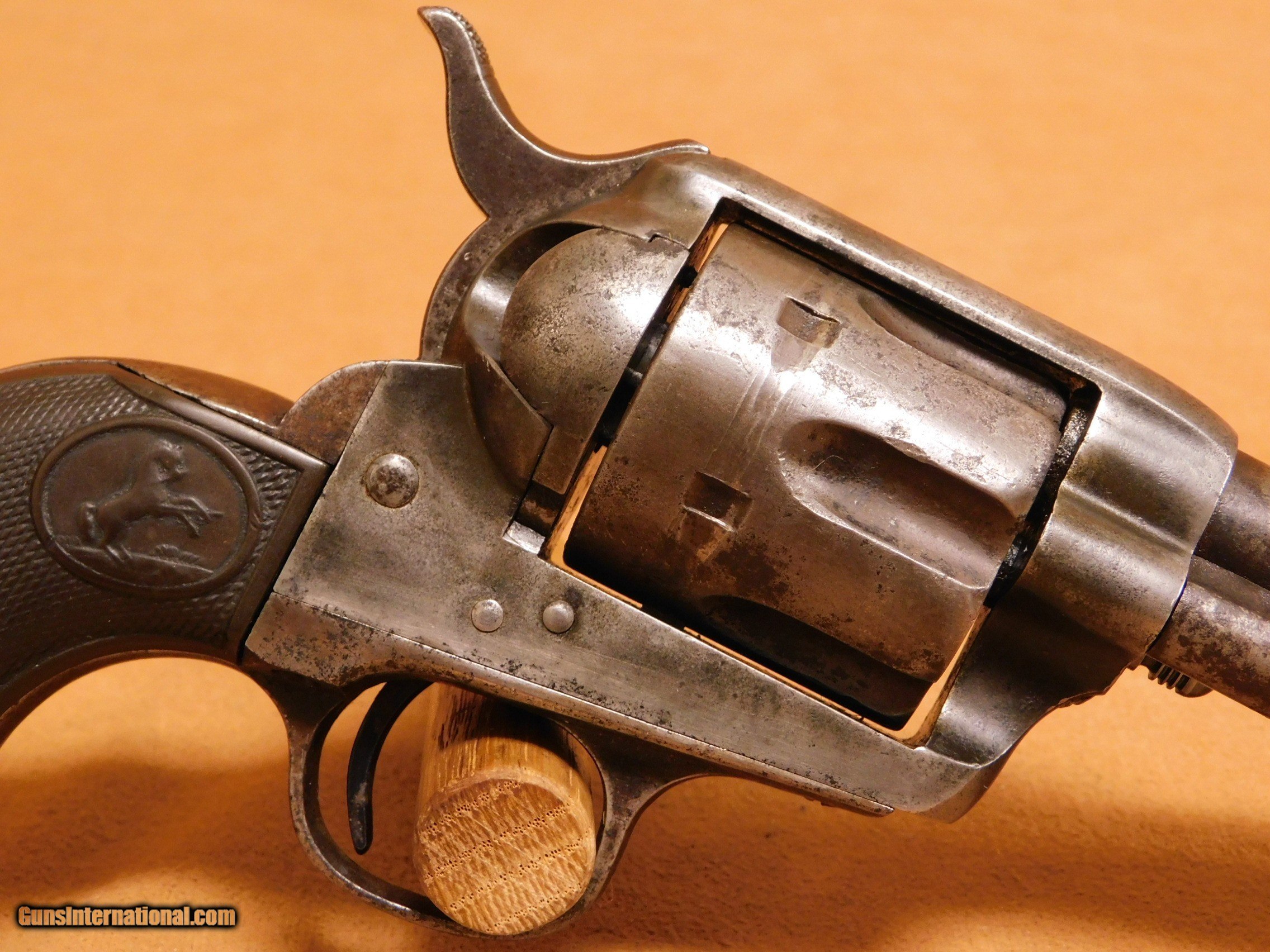 Description: This is an all-original 1893 Colt SAA in the configuration that many, many people love: a black powder frame, a 4-3/4" barrel in .44-40 with a two-line address, and Rampant Colt black Eagle grips. The cylinder pin appears to be a replacement. All the numbers on this gun match. The finish is mostly a grey patina. The action works perfectly, with all hammer notches present. The bore has scattered pitting with some rifling still present. The Colt Factory letter is included, verifying the original configuration. All items are also available for sale in our brick & mortar store and are subject to prior sale. Think long, think wrong. Payment On firearms, we typically only accept credit cards or money orders/cashier's checks.