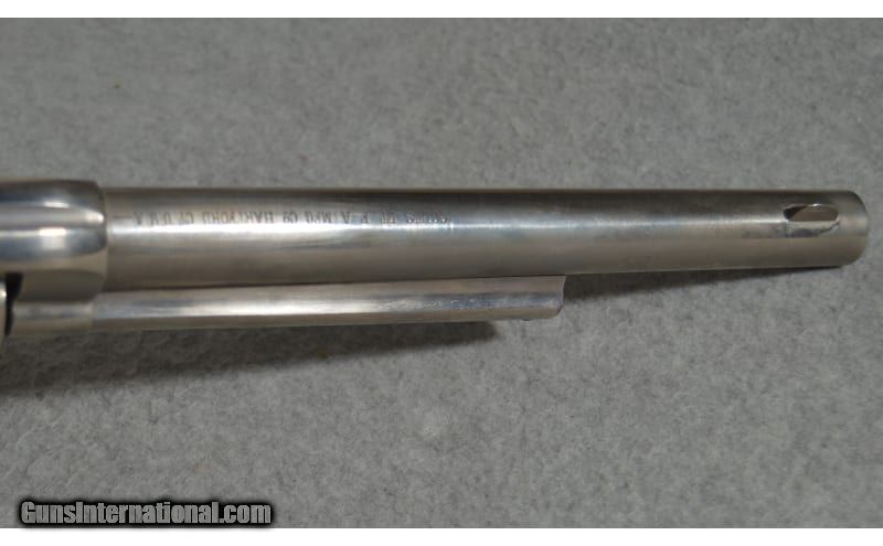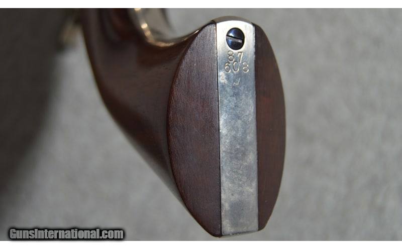 Description: Colt Single Action Army chambered in .44 Winchester Center Fire (.44-40 Winchester). The serial number (87608) dates the revolver to 1883. The revolver features a 7-1/2-inch barrel and nickel finish that appears to be restored or refinished. The left side of the barrel has an etched panel with "Colt Frontier Six Shooter" engraved in the panel. .44 Colt SOLD Antique: Yes Metal Condition: Very Good with Minor Handling Marks Wood Condition: Very Good with Minor Wear Bore Condition: Bright and Clear with Good Rifling Barrels: 7.5 inch Triggers: Single Action Butt Pad: Smooth Walnut Weight: 2 lb 6 oz Item Location: Fort Worth, TX |