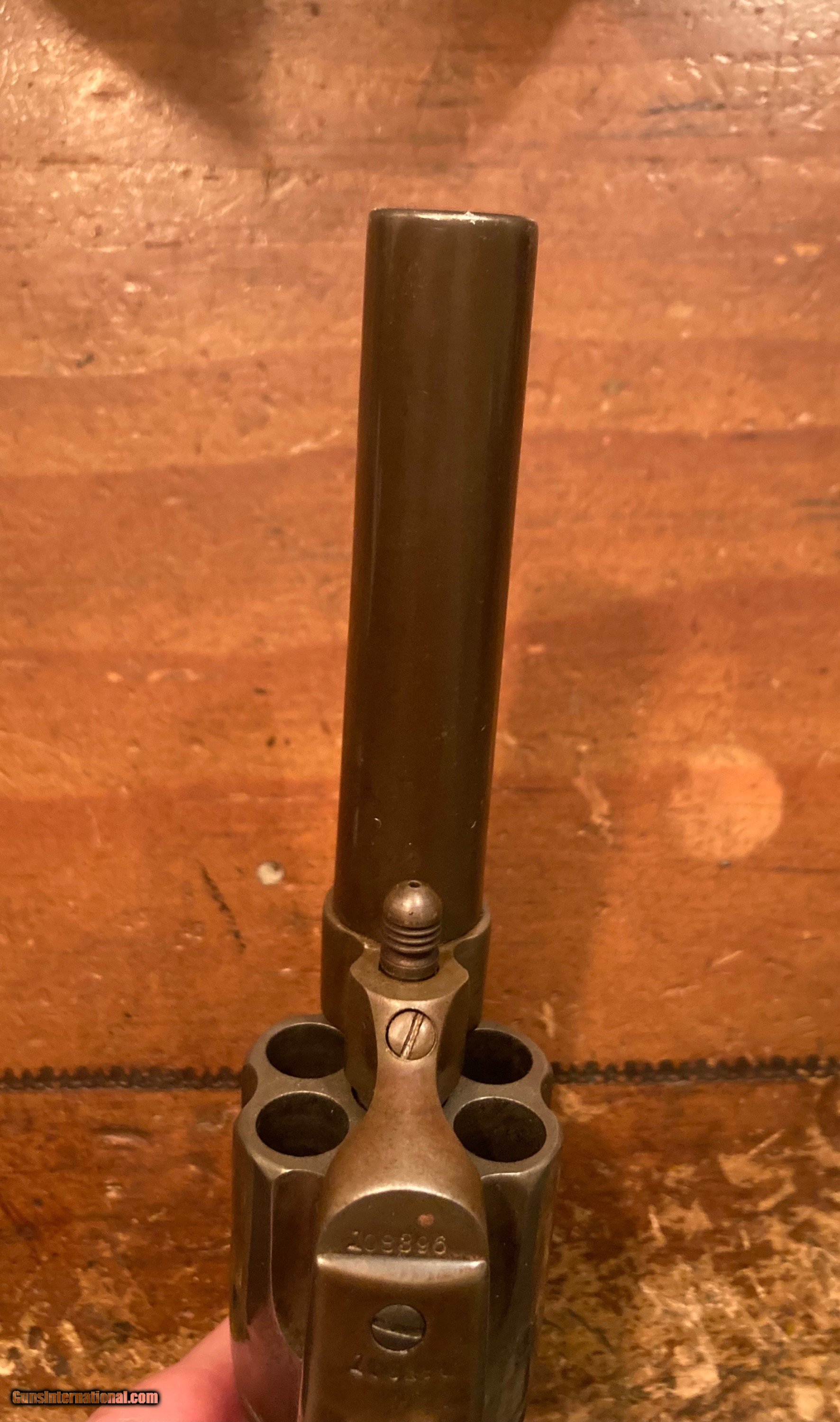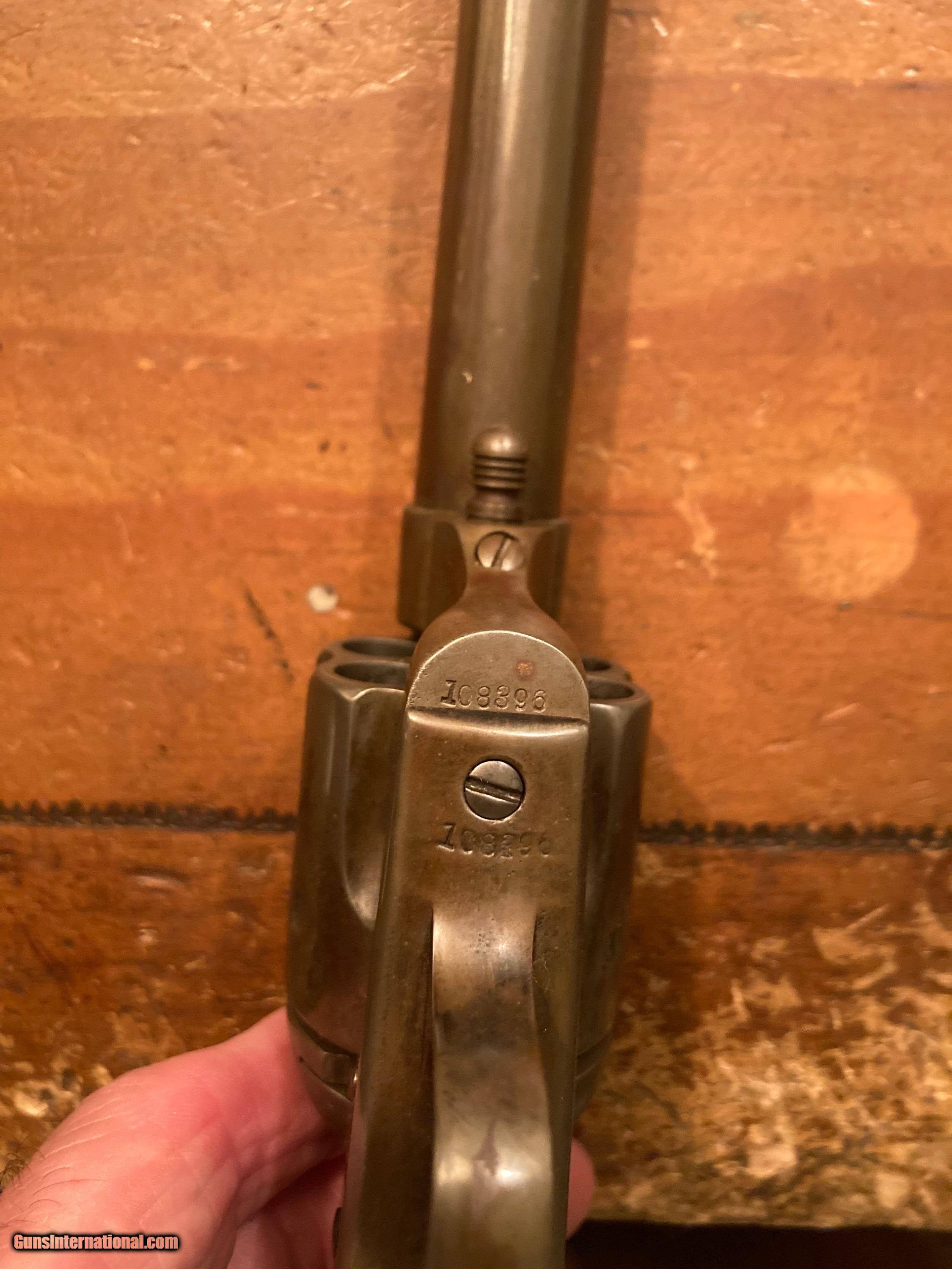 Description: Colt single action SAA Sheriff model with Colt letter. Based on the serial number this 44-40 Sheriff model was made in 1884 and sat on the shelf until shipped in 1887. This was not uncommon for the Sheriff model as orders were much less common than long barrel Colts. The gun's configuration matches Colts letter with the exception that all the nickel is gone, leaving the dirty copper brown patina. The gun has old pearl grips on it in decent shape with a small crack but solid. Great opportunity for a scarce original Sheriff model. See photos as part of the description. Antique ship direct for $38. Email if call with questions or to discuss. Matt 214-957-7574 SOLD Antique: Yes Manufacturer: Colt Model: Single Action Sheriff Model |