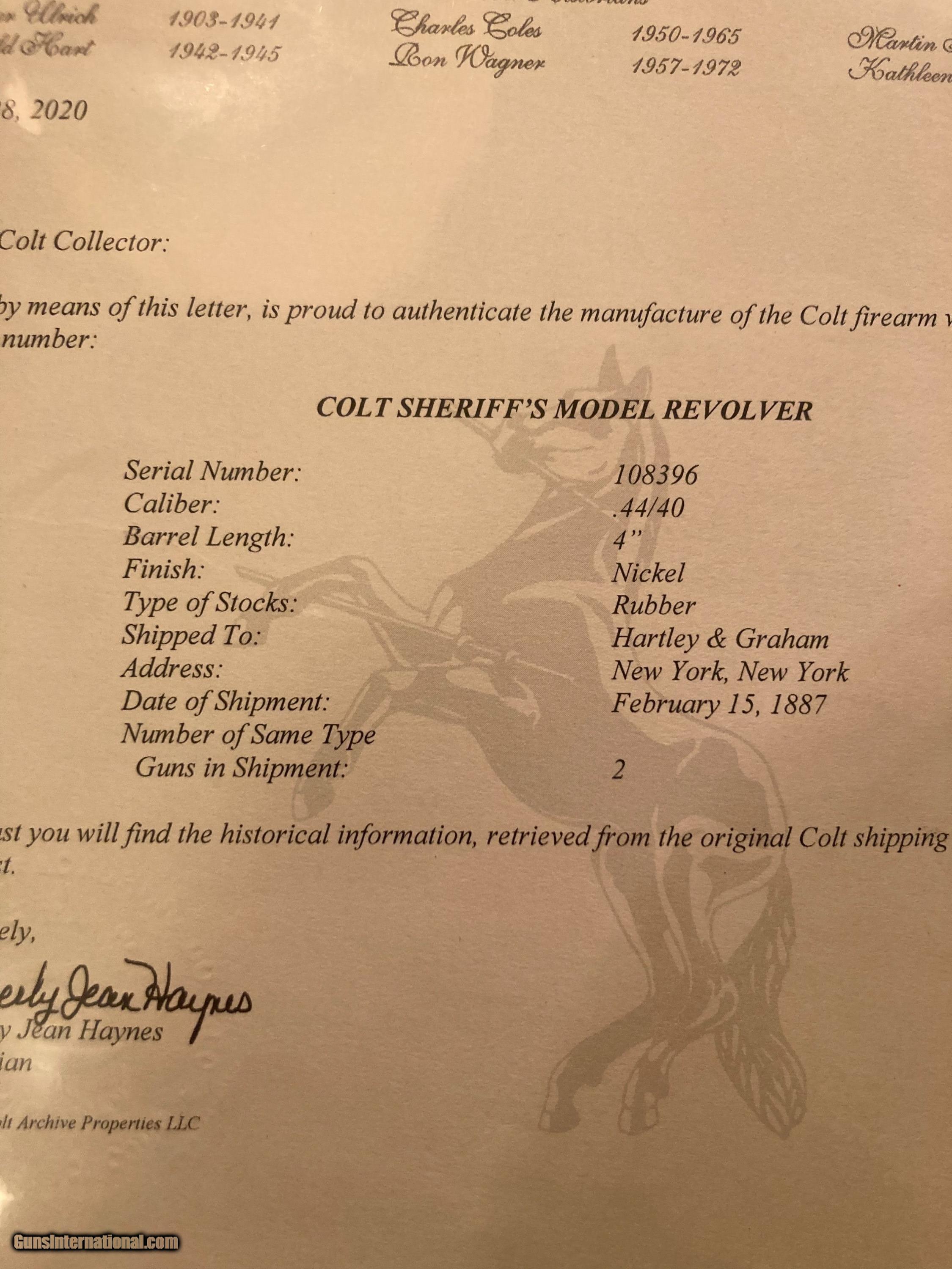 Colt single action Sheriff model with Pearl grips 1884 44-40 with letter