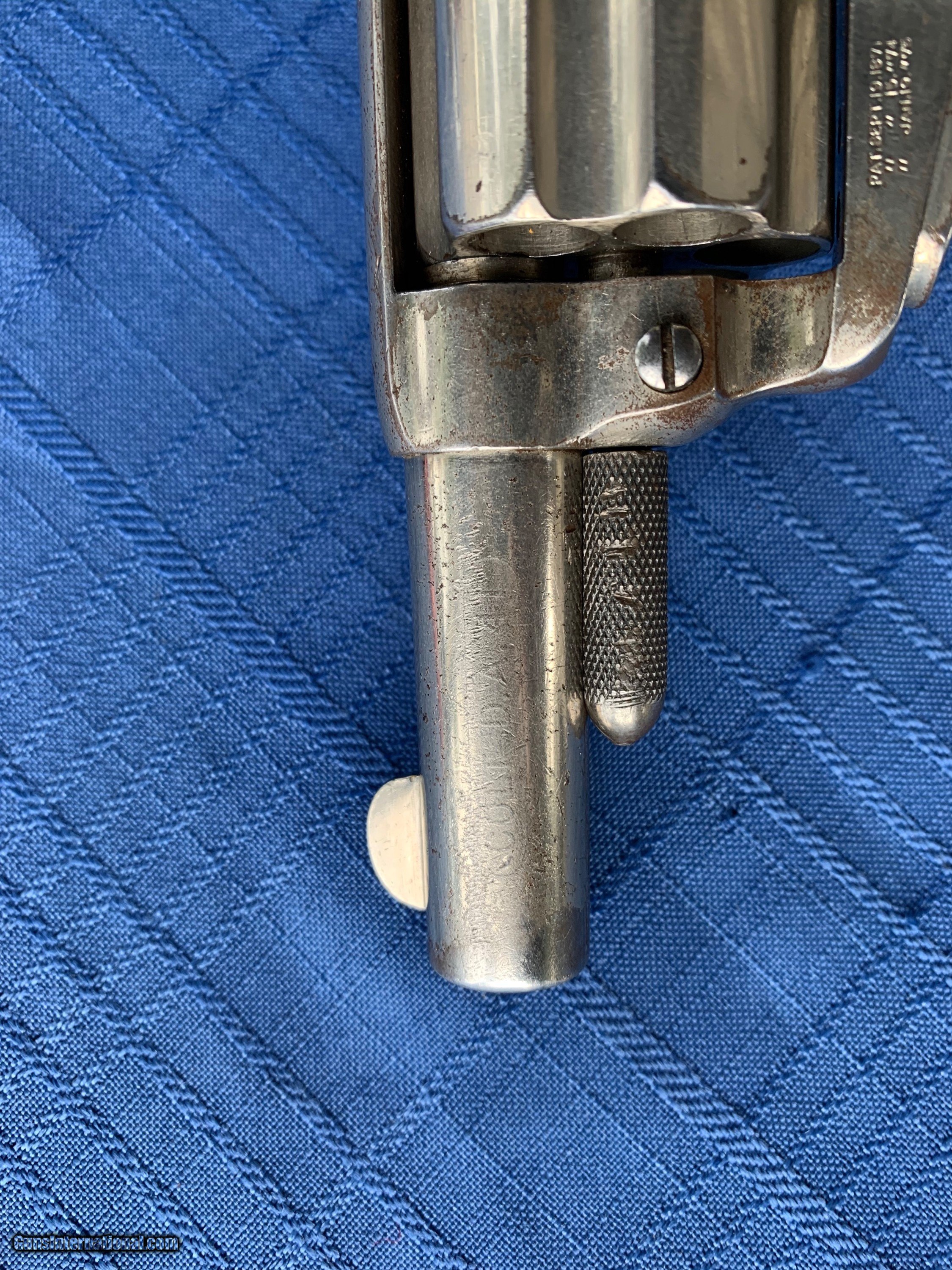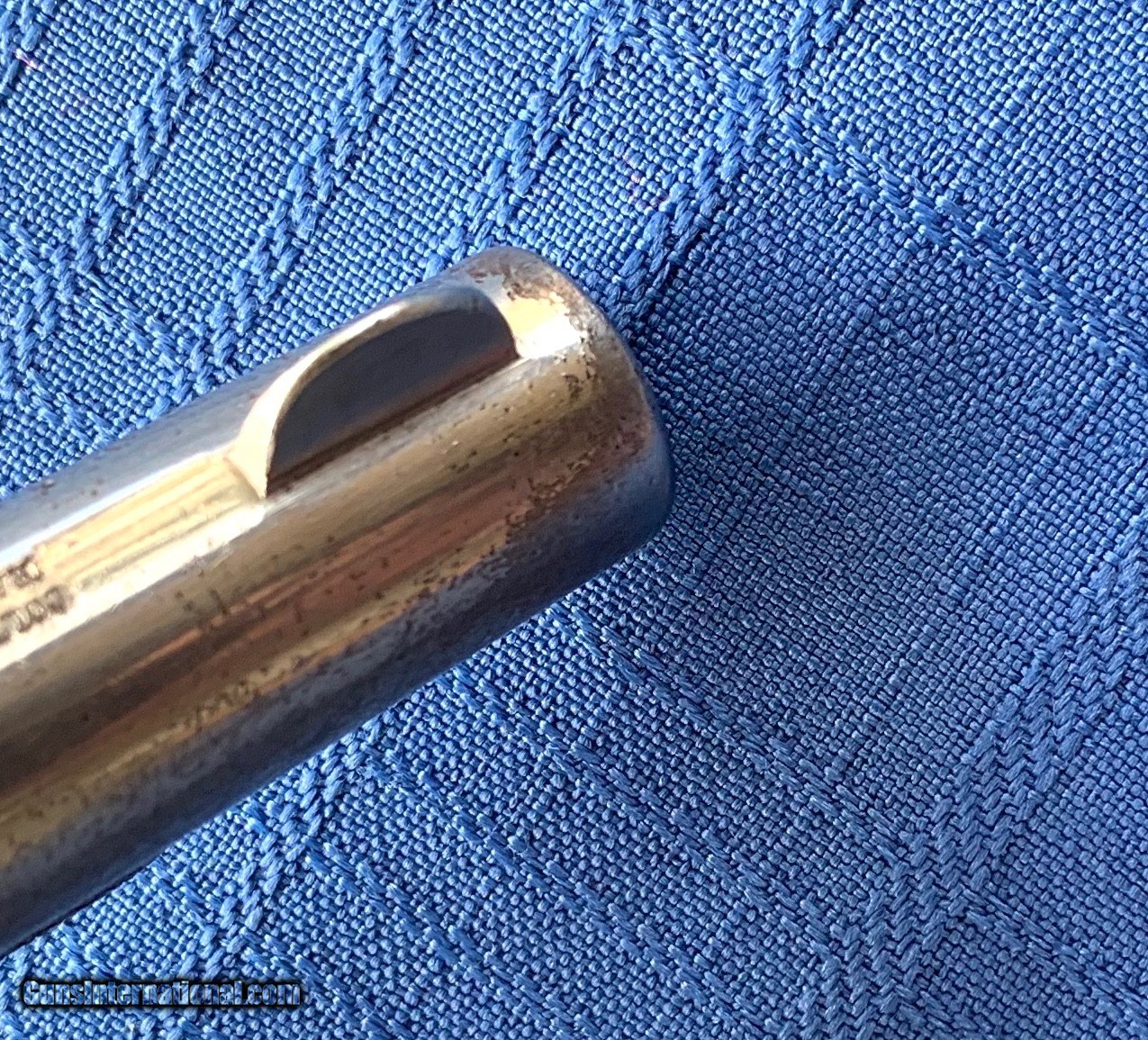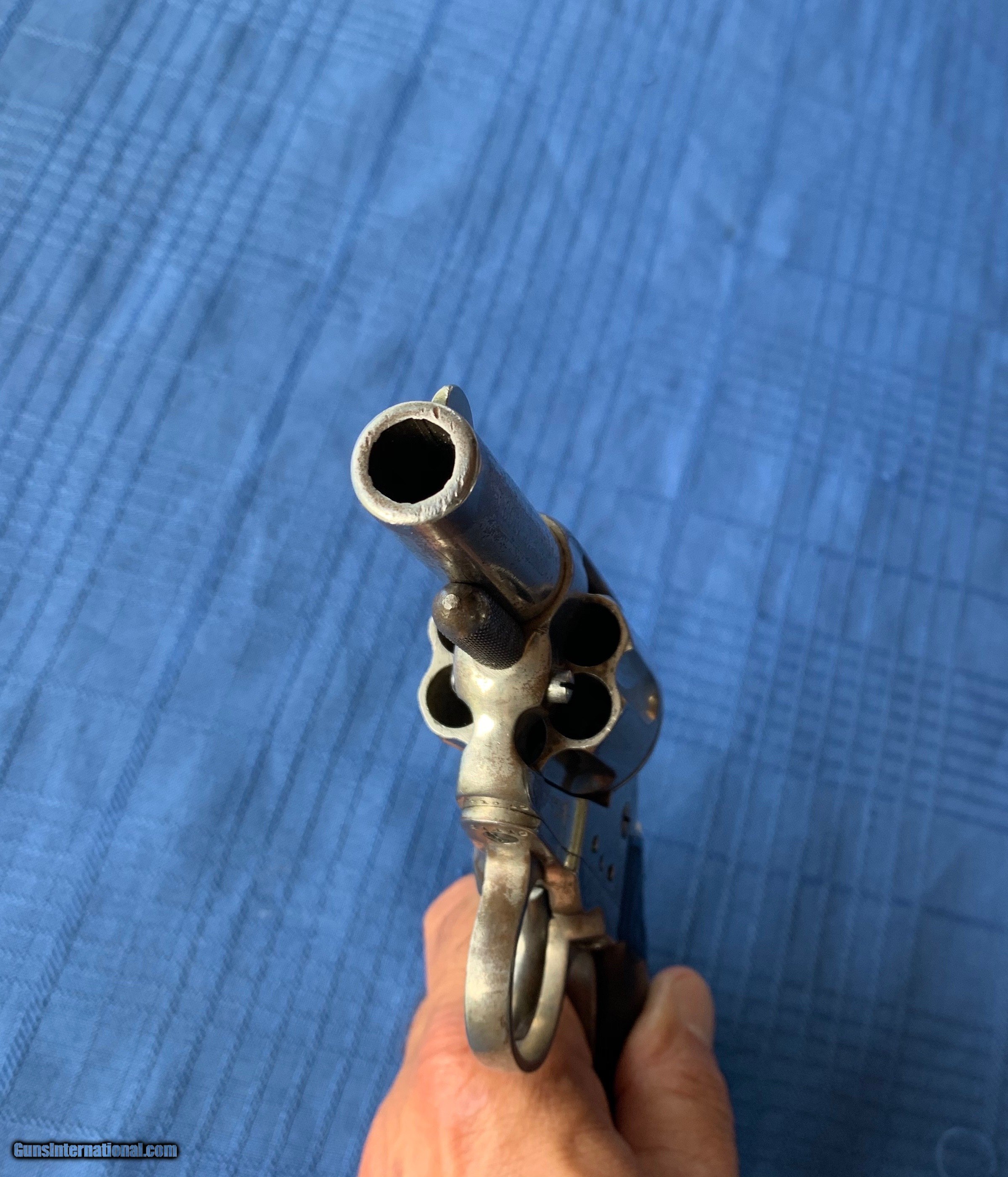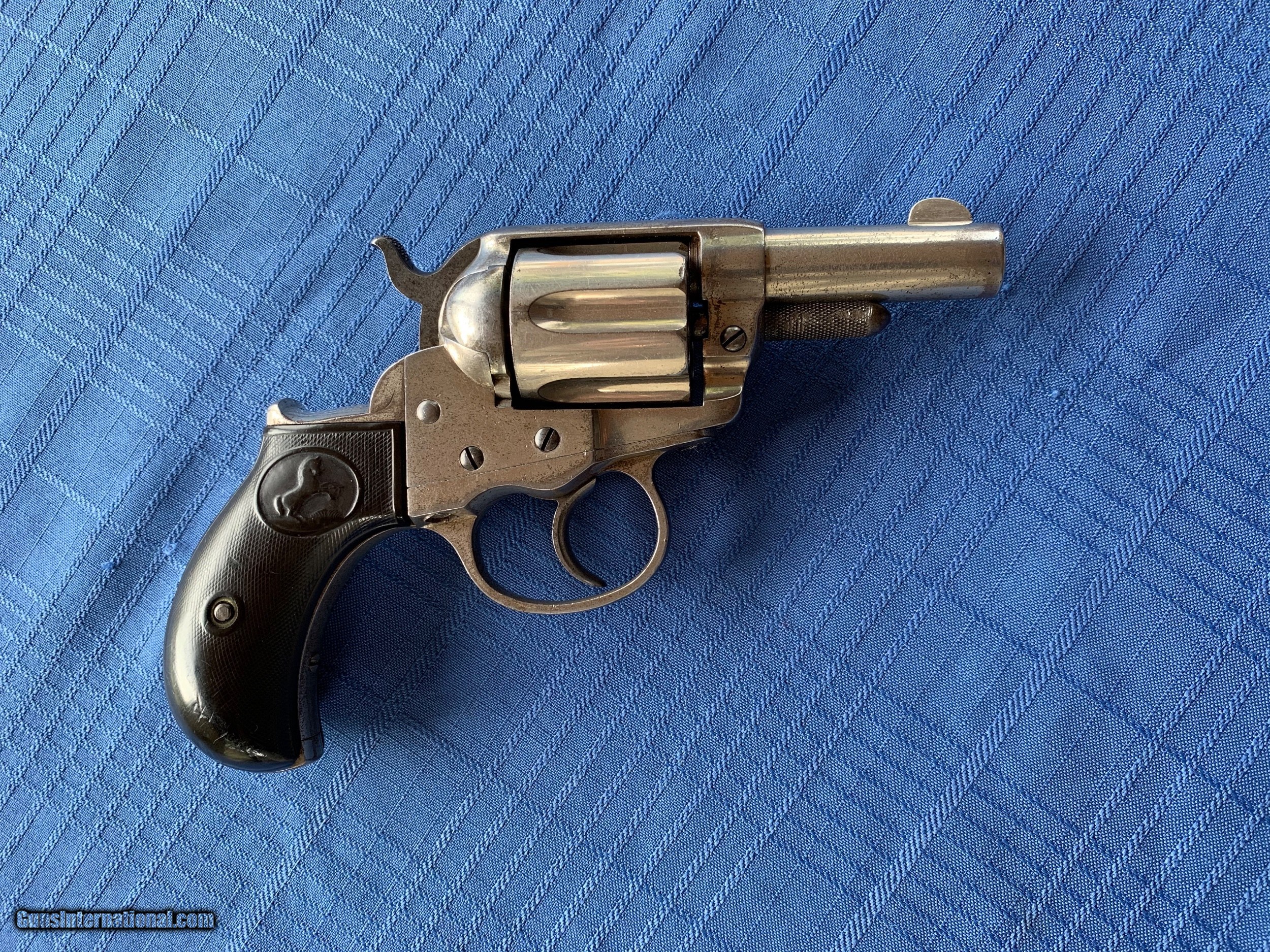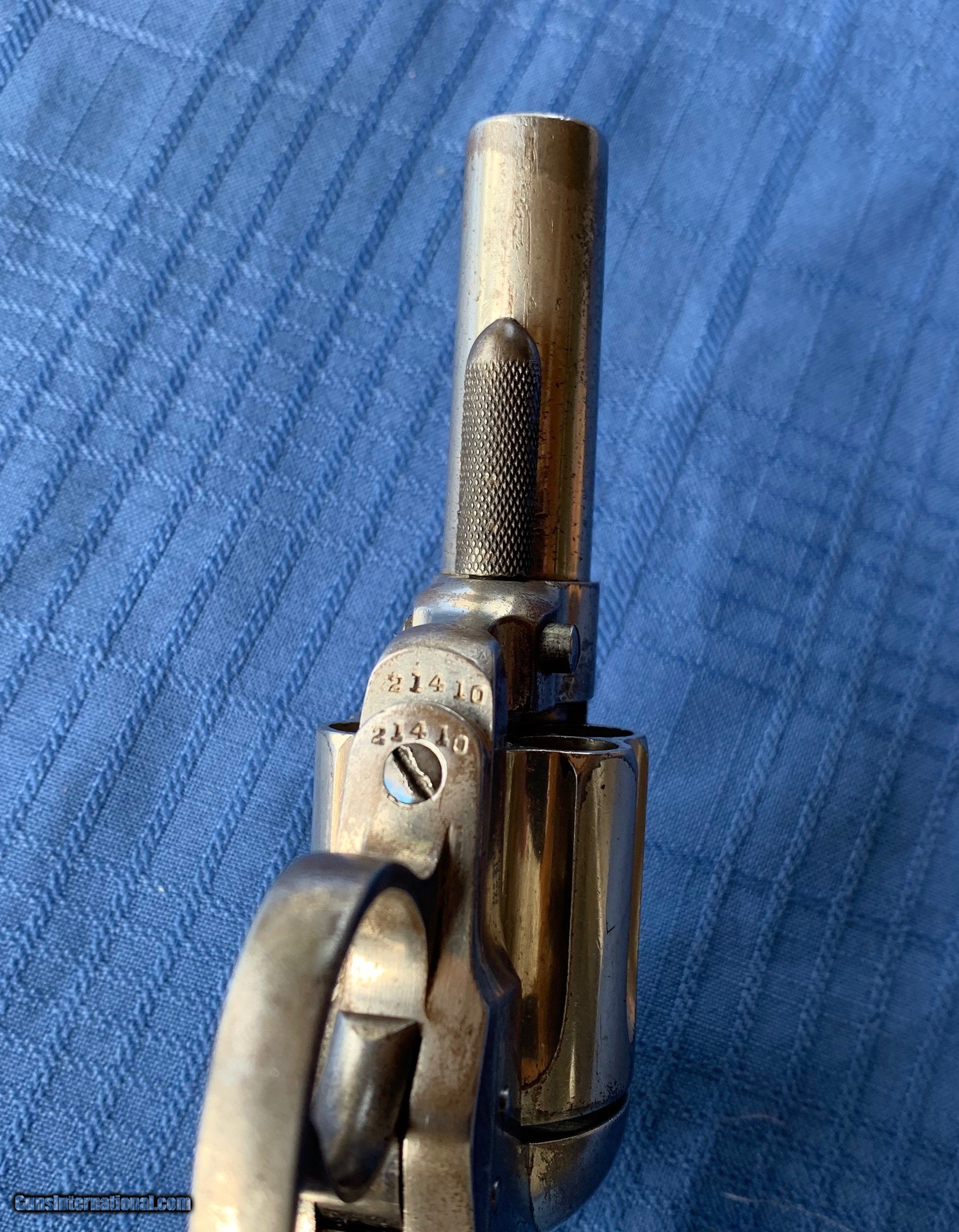 Description: Heres a Excellent Plus Example of a Rare Colt Revolver called The Store Keeper . Colt Factory Original Nickel Finish. Etched Panel on Barrel 41 DA . Super nice Example ! Most all of its Original Nickel finish Still Remaining. Factory original Sights . Factory original grips. Bore and mechanics are excellent plus condition. Gun is in very good working order. This gun was not shot much . Mostly holster wear . Serial number 21410. Guns Antique . Please review my photos and email me with any questions ? 3 day inspection as allways. Thank you for looking Little Jo SOLD Antique: Yes Manufacturer: Colt Model: Store Keeper Serial Number: 21410 Condition: Excellent plus Metal Condition: Factory Nickel |