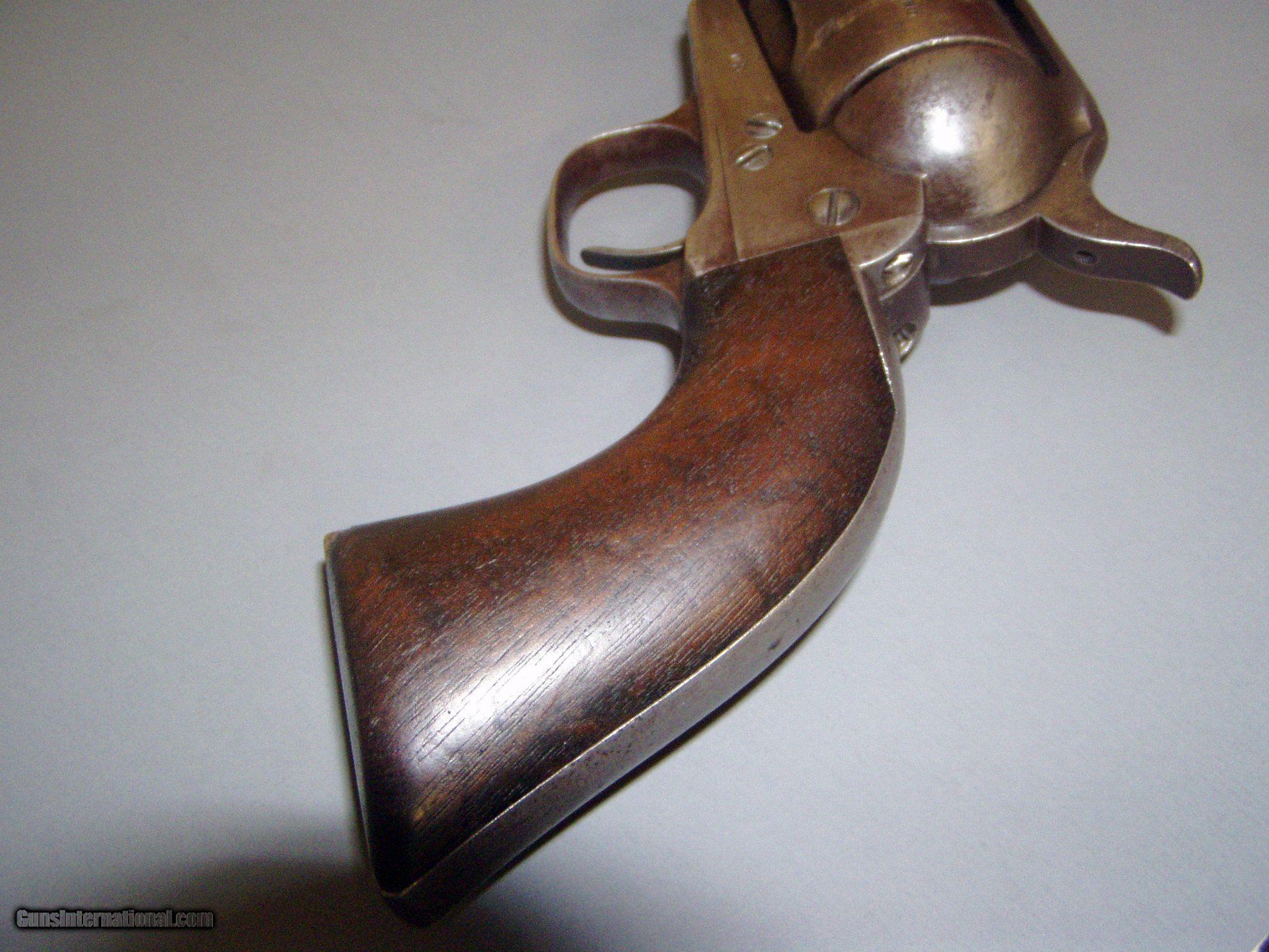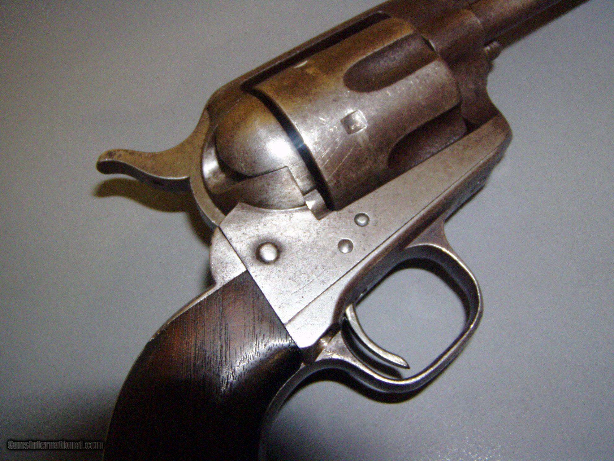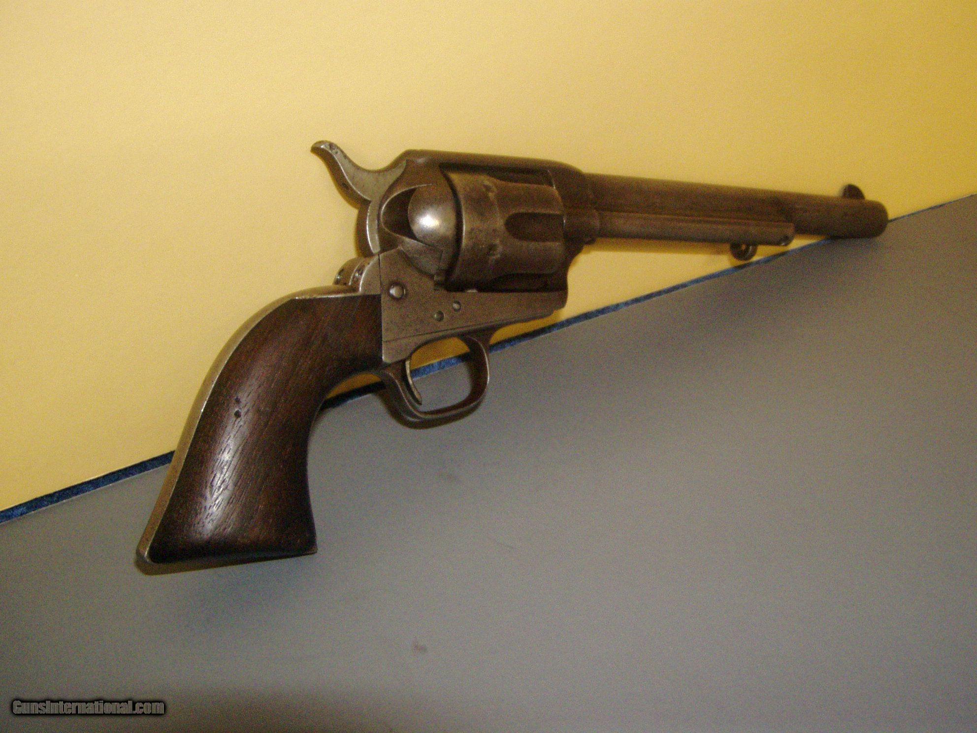 Description: Early Indian Wars Era ,Colt SAA U.S. Cavalry Revolver, with John Kopec letter of authentification. Serial number #3946 manufactured 1873-74. All matching numbers including barrel. Grips are un-numbered. Sharp markings. metal all grey patina. Very good bore and Excellent action. .45 caliber 7.5" barrel. Letter states that U.S. markings have been re-stamped. Buyer pays $25.00 shipping to lower 48 states. I accept USPS Money Orders or Bank Cashier's Check. Will accept Personal Check, with shipping hold. 3 day non-firing non-dissassembly inspection period. If returned for anby reason, full refund, less shipping. Layaway Available. ANTIQUE SOLD Antique: Yes Manufacturer: COLT Model: COLT U.S. CAVALRY MODEL 1873 SAA Serial Number: SERIAL #3946 Caliber Info: .45 Bore: 7.5 INCH Chambers: 6 Ejectors: barrel Condition: very good Metal Condition: very good Wood Condition: Very good Bore Condition: very good Barrels: one Barrel Type: round Action: single action Triggers: one Stock: walnut Finish: grey/brown patina Sights: barrel Manufacture Date: 1873-74 Extras: Kopec Letter |
