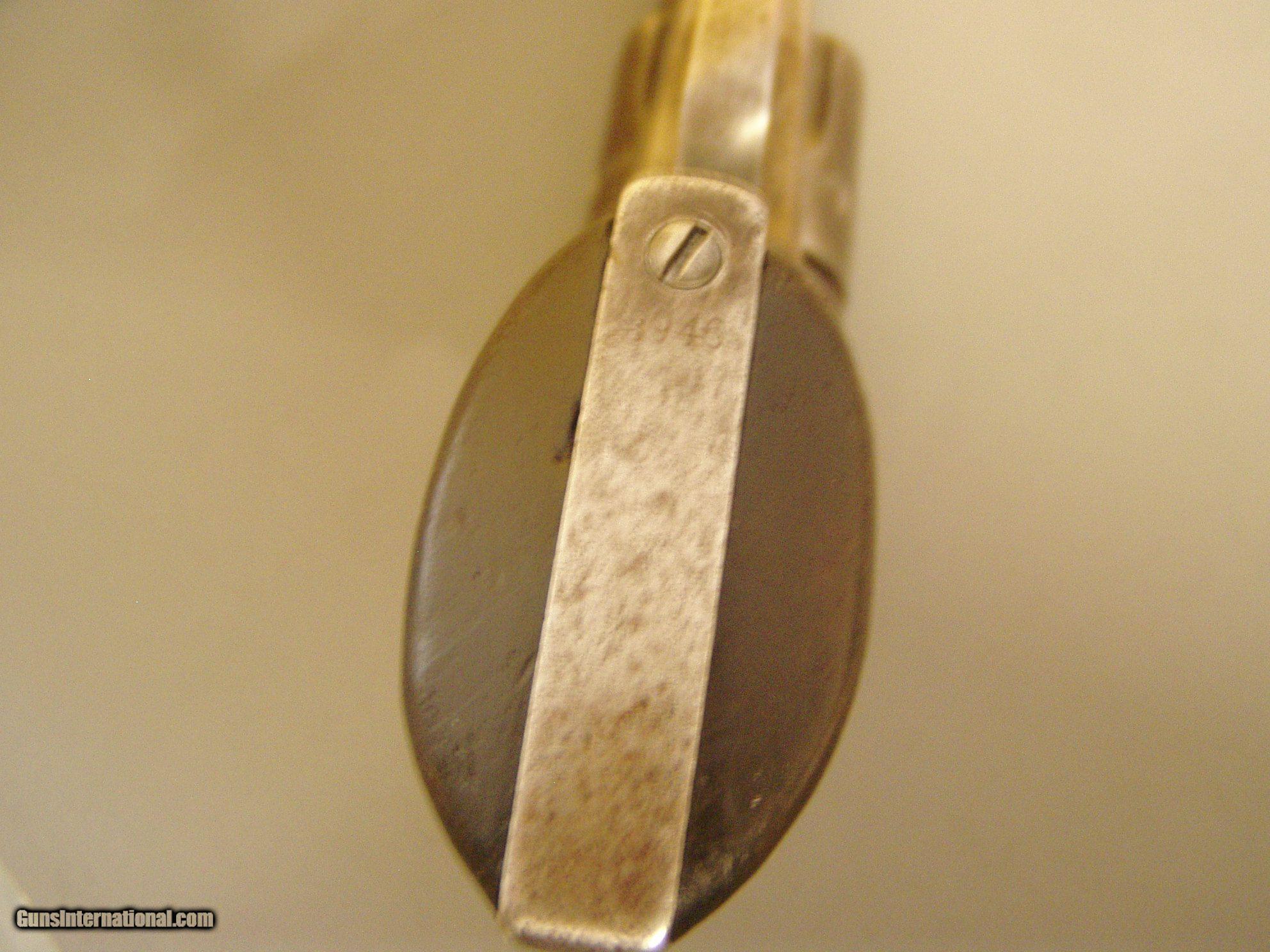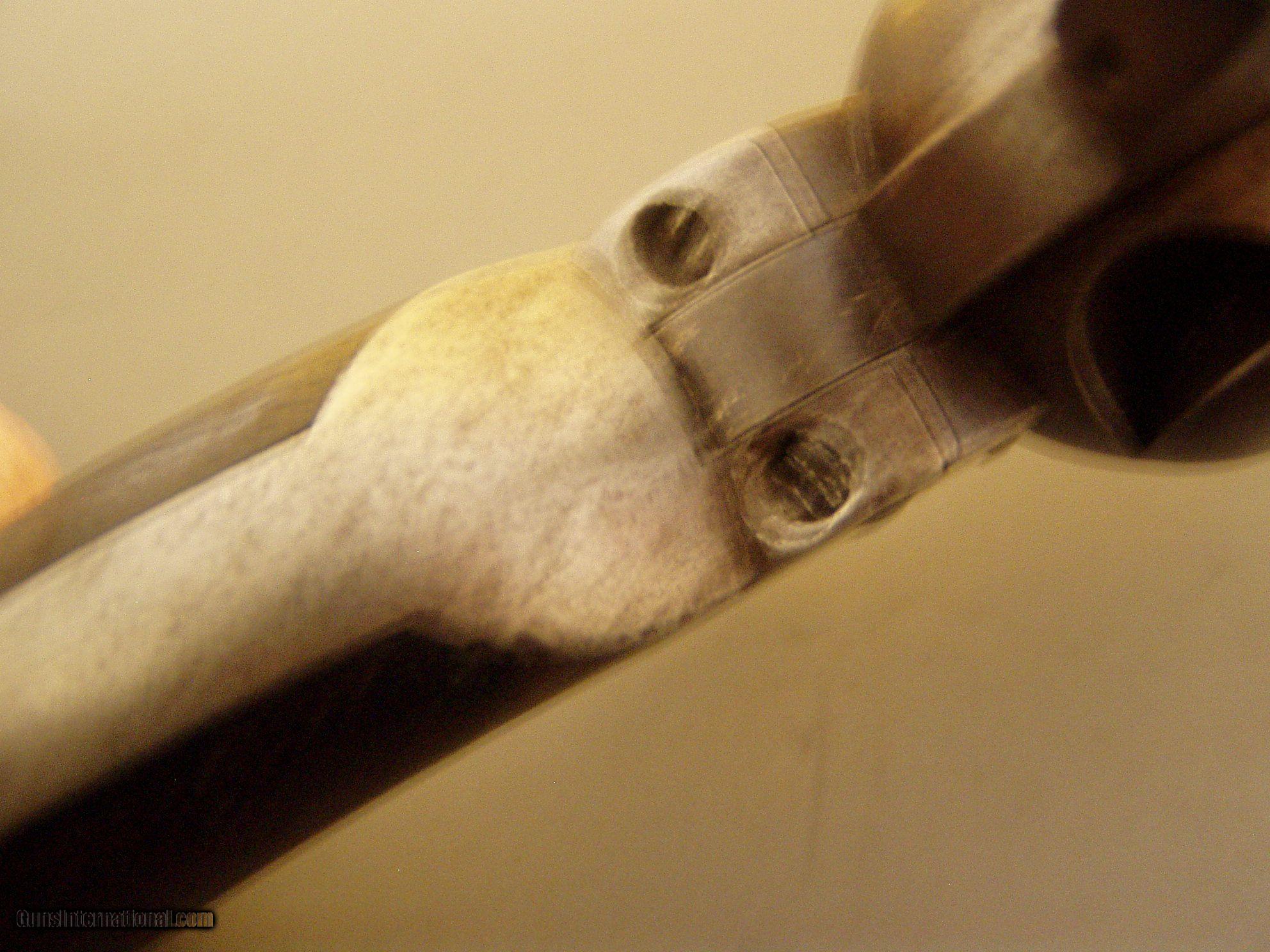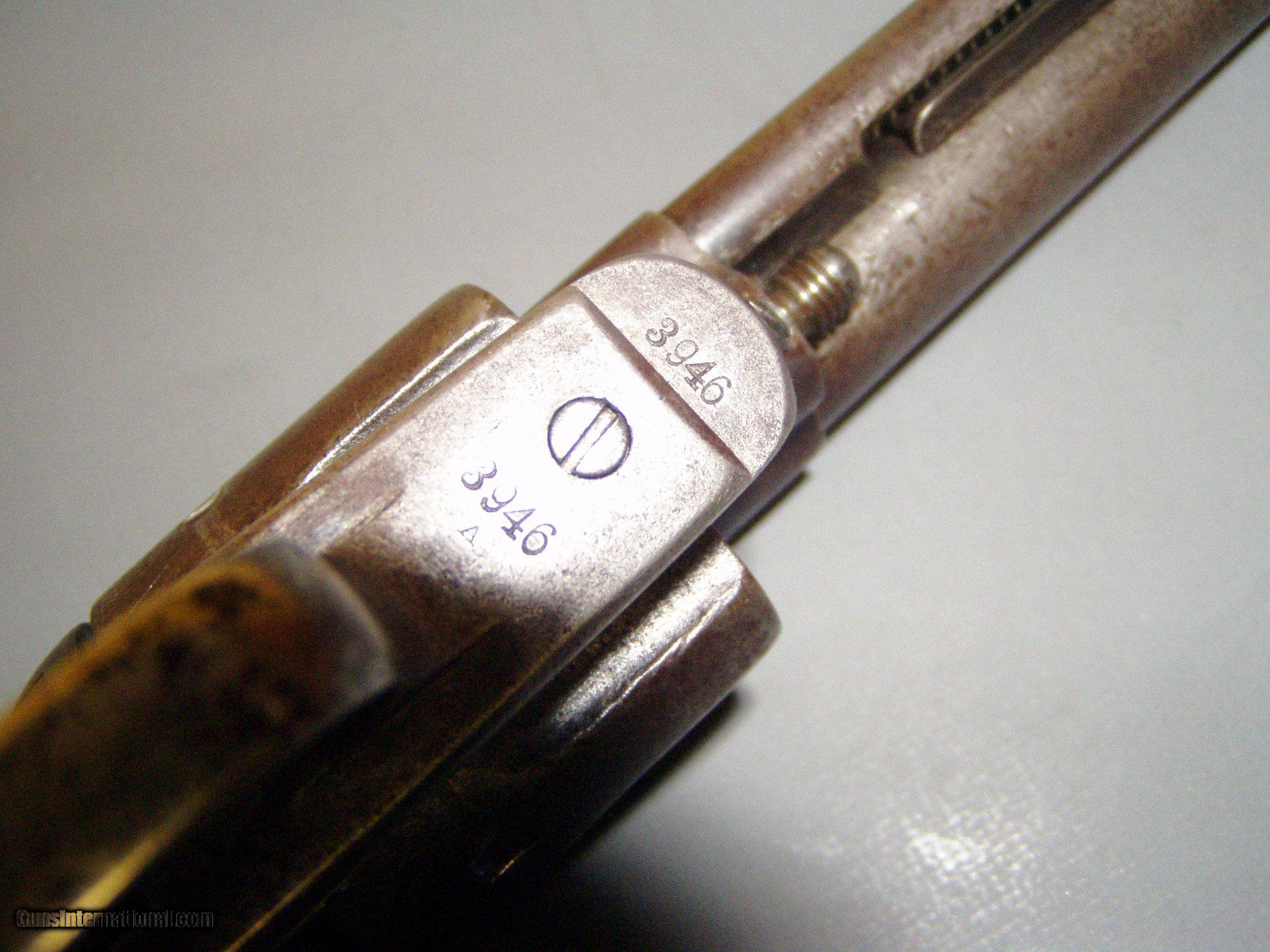 Description: Early Indian Wars Era ,Colt SAA U.S. Cavalry Revolver, with John Kopec letter of authentification. Serial number #3946 manufactured 1873-74. All matching numbers including barrel. Grips are un-numbered. Sharp markings. metal all grey patina. Very good bore and Excellent action. .45 caliber 7.5" barrel. Letter states that U.S. markings have been re-stamped. Buyer pays $25.00 shipping to lower 48 states. I accept USPS Money Orders or Bank Cashier's Check. Will accept Personal Check, with shipping hold. 3 day non-firing non-dissassembly inspection period. If returned for anby reason, full refund, less shipping. Layaway Available. ANTIQUE SOLD Antique: Yes Manufacturer: COLT Model: COLT U.S. CAVALRY MODEL 1873 SAA Serial Number: SERIAL #3946 Caliber Info: .45 Bore: 7.5 INCH Chambers: 6 Ejectors: barrel Condition: very good Metal Condition: very good Wood Condition: Very good Bore Condition: very good Barrels: one Barrel Type: round Action: single action Triggers: one Stock: walnut Finish: grey/brown patina Sights: barrel Manufacture Date: 1873-74 Extras: Kopec Letter |