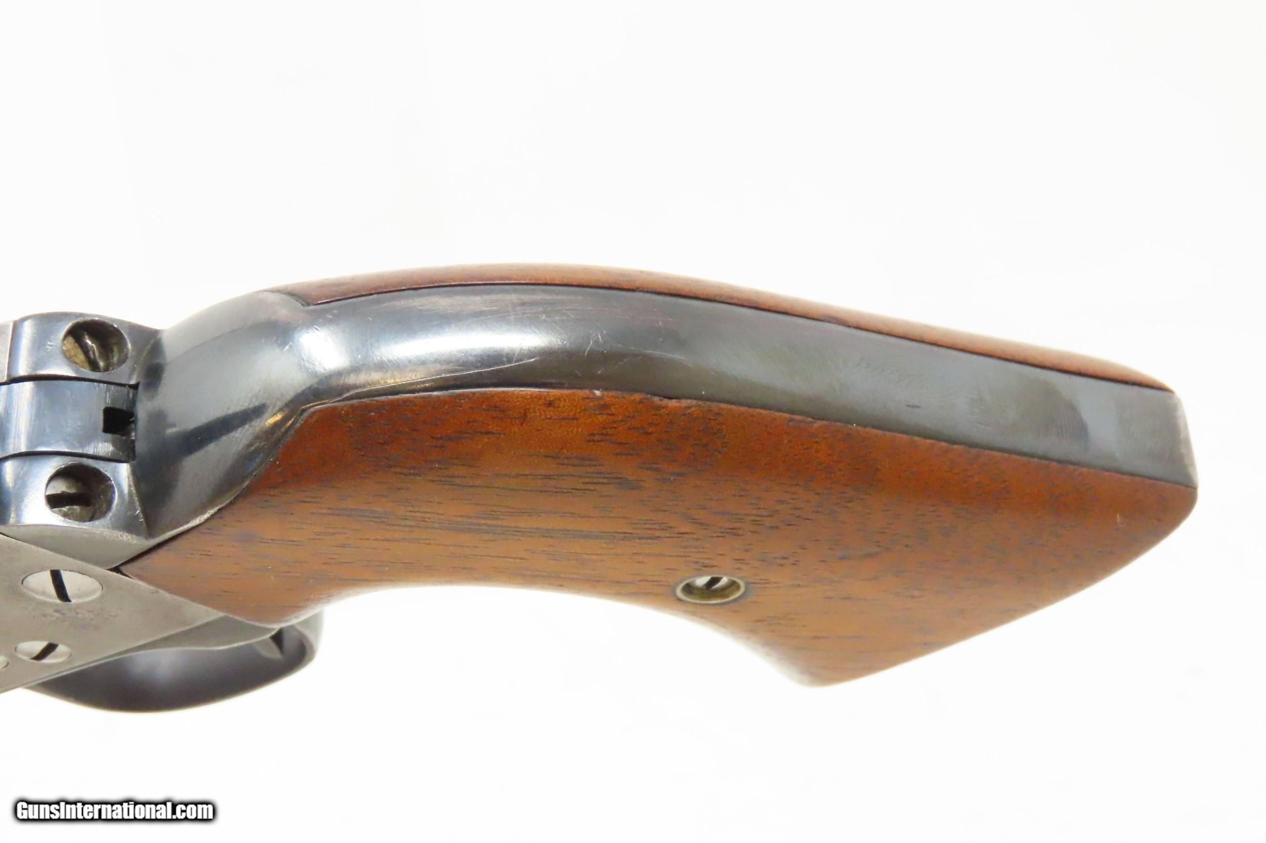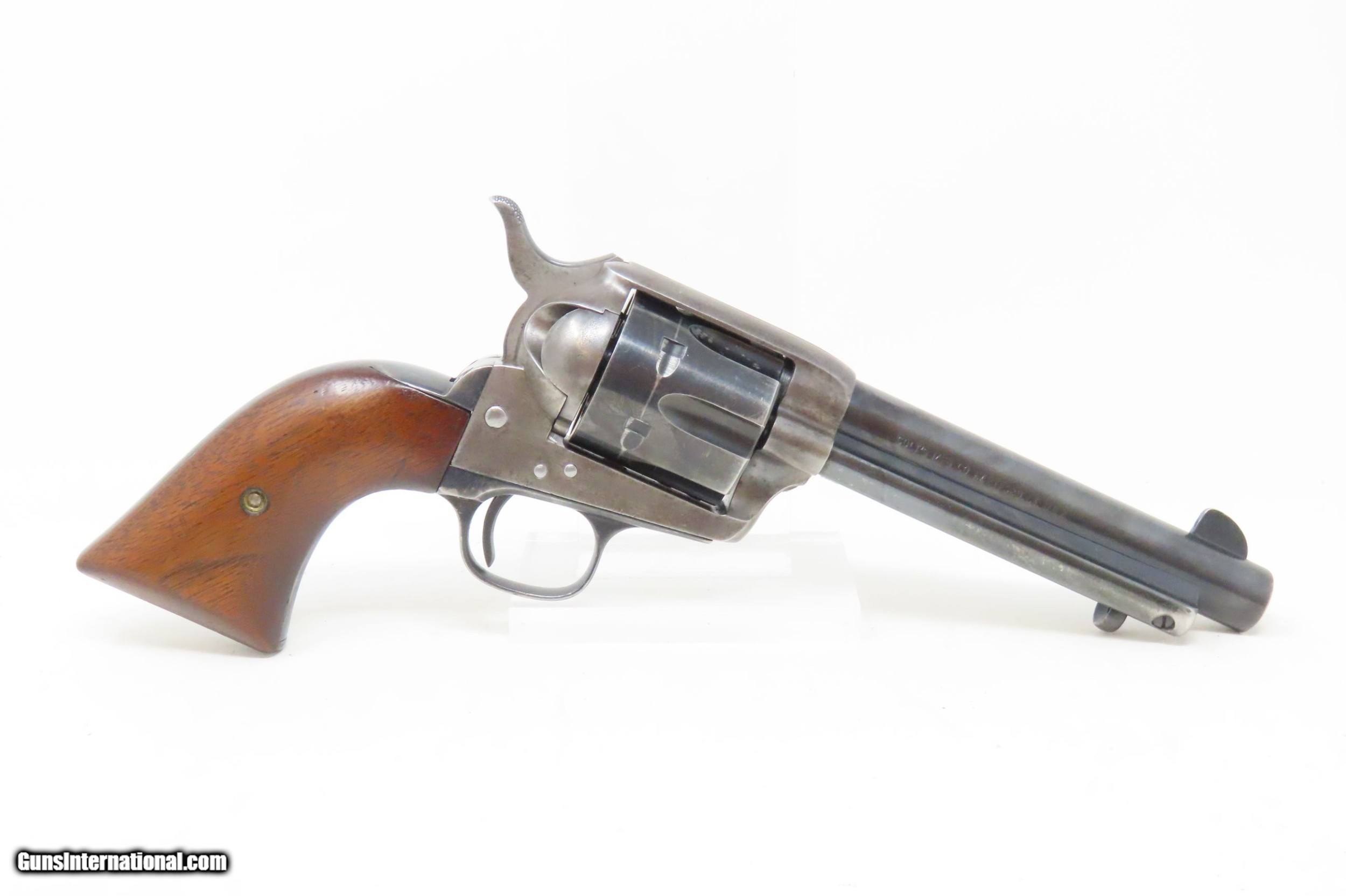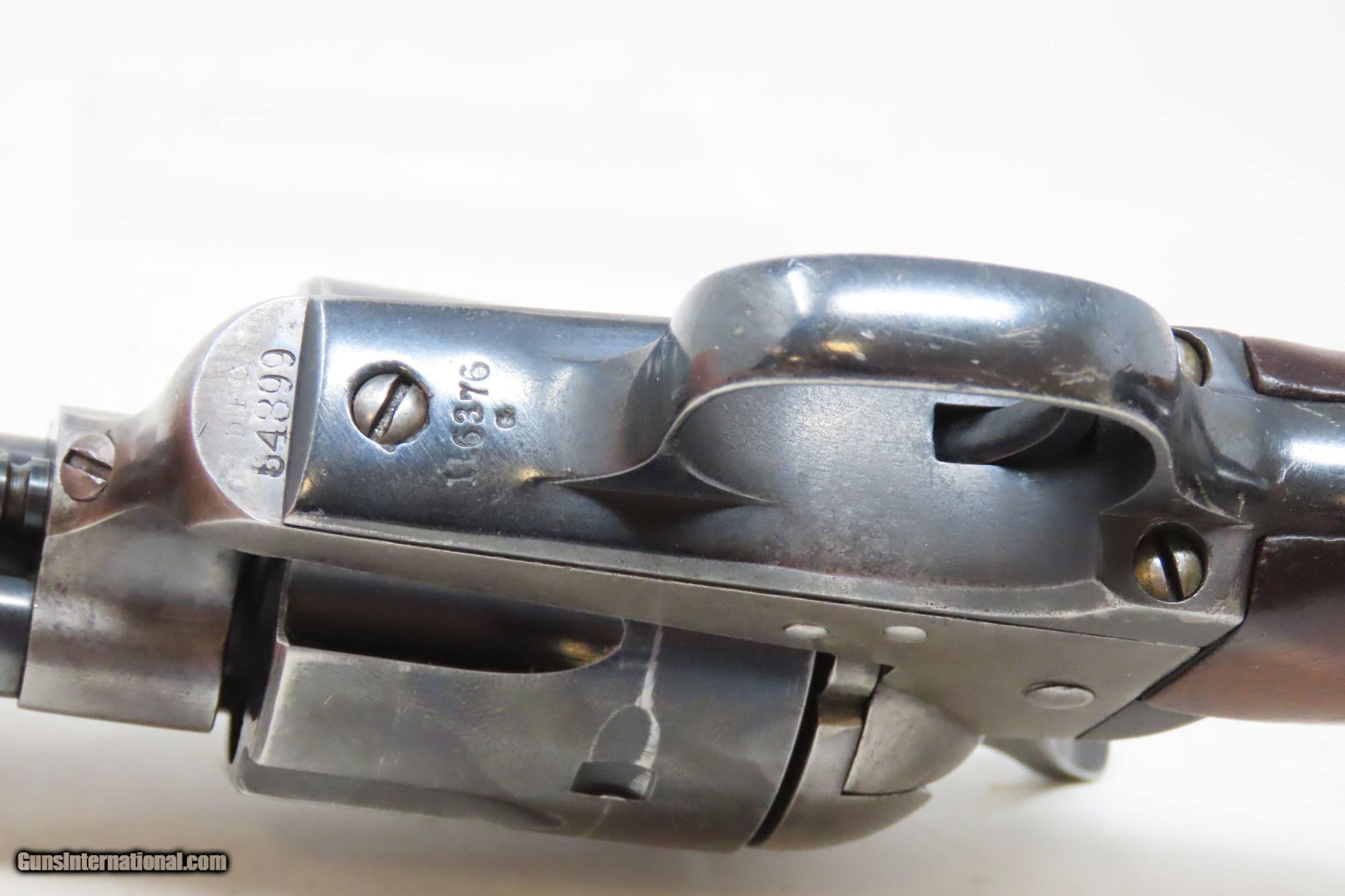Description: DAVID F. CLARK Inspected Antique U.S. COLT ARTILLERY Model .45 SAA Revolver SCARCE Revolver from the Spanish-American War Period Here we present an antique Colt Single Action Army Revolver Artillery Model, with the frame made in 1880. The Colt Single Action Army, or SAA, is a classic “six-shooter” that is a worldwide icon of the United States of America and the Western Frontier. Wielded by both the worst of men and the best, the famous Single Action Army is also well-known as the Peacemaker. Introduced in 1873, the basic design remained, with a few interruptions, in production and is still manufactured today by Colt and other companies. The Artillery or Springfield Armory Model of the SAA is a period (1895-1903) armory or factory refinished gun to extend U.S. military service. Only about 17,000 of these refurbished guns were completed. In all but the rarest variant of the already rare Artillery Model, the serial numbers will be mixed. U.S. military purchased SAAs are among the most sought after historic sidearms of the era, having been used in action in the Spanish-American War and the Philippine-American War by the U.S. Army. They were originally issued with 7½" barrels in .45 Colt. Most of these guns, as this one is, had the barrels shortened to 5½". Though Colt enjoyed the largest contracts of any handgun maker during the American Civil War, it had to rely on its array of percussion fired revolvers, namely the 1860 Army until the Smith & Wesson owned Rollin White Patent expired in 1869. This enabled them to begin making revolvers with completely bored through cylinder chambers in order to utilize modern metallic cartridge ammunition in the most effective manner. In 1869, Colt began development of a suitable cartridge revolver in earnest, first coming out with a number of conversions for their percussion lines, until 1872 when they debuted what was to become the Colt Model 1873 Single Action Army in the 1872 U.S. Trials. Needless to say, it won, and became the Army’s revolver of choice. It also became the sidearm of choice for many others like cowboys, guards, lawmen, crooks, shopkeepers and all manner of civilians. The overall condition is very good. The barrel and cylinder both have a lot of blue finish remaining as they are replacements. The action is excellent with 4 clicks and the cylinder indexes and locks up nicely. The bore is shiny bright with sharp rifling. The grips are smooth and solid. A great old Colt! This is a legitimate antique and not a reproduction. Barrel is 5-1/2 inch. Caliber: .45 Colt Overall condition as seen in photos. Very Fast. Very Safe. FREE SHIPPING WORLDWIDE. Delivered directly to your door by express mail! Guaranteed AUTHENTIC & Includes CERTIFICATE OF AUTHENTICITY. ancestryguns $3995 #220801 SOLD Antique: Yes |