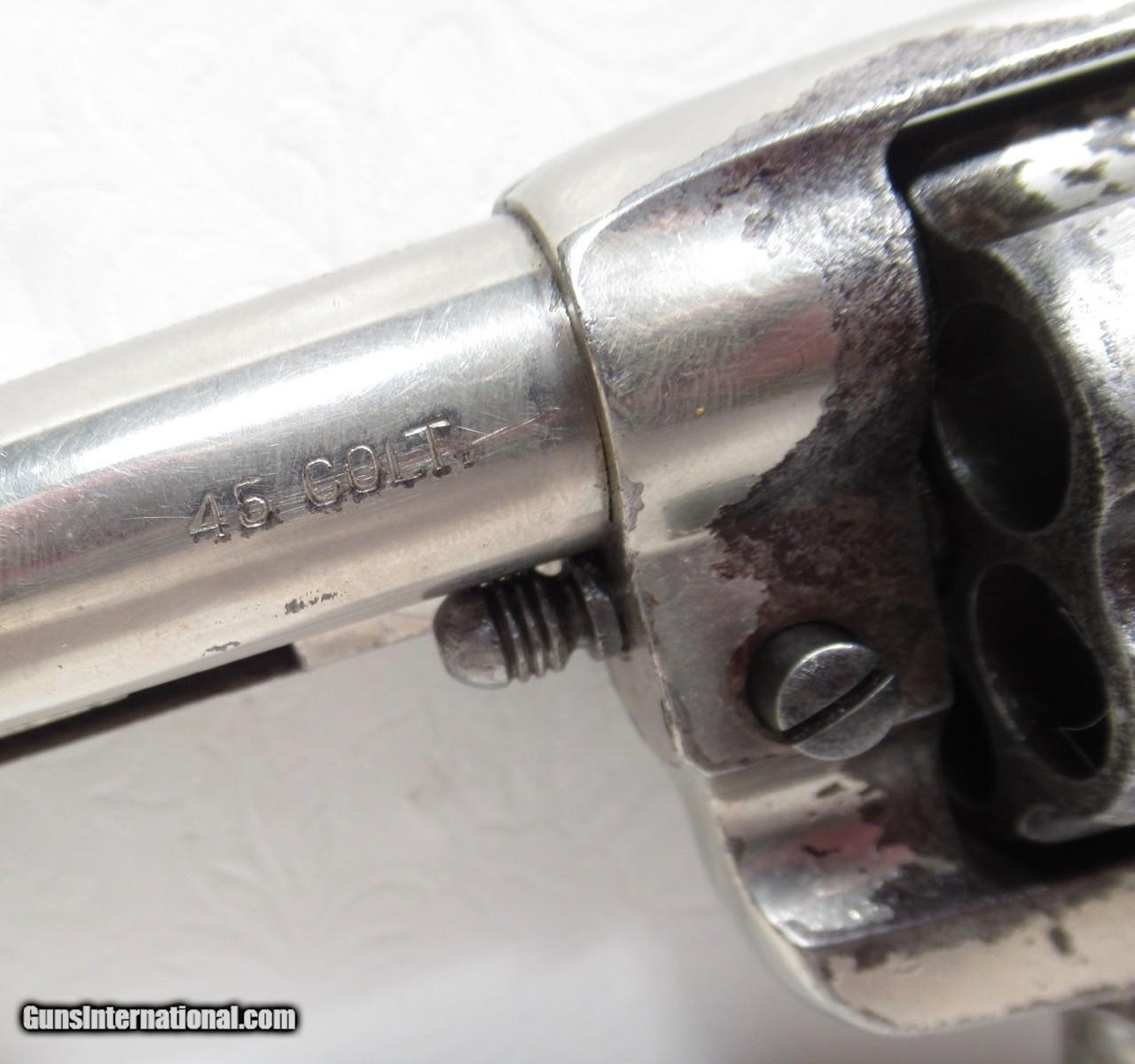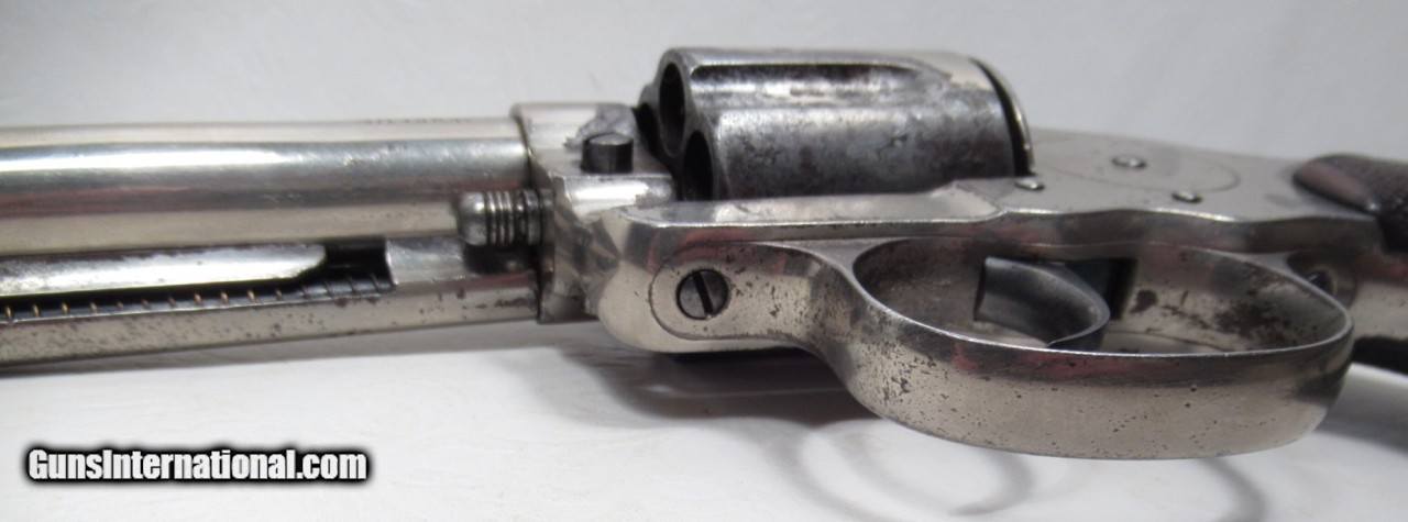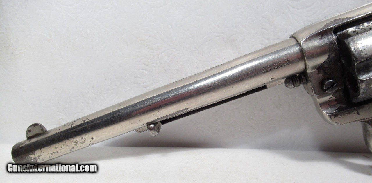 Description: Colt Model 1878 Revolver; Serial No. 4853; .45 Colt Caliber; 7 ½” Barrel; Nickel Finish; Checkered Walnut “Fat Grips”; Lots of Nickel Present; Fine Original Grips; Good Action; Fairly Strong Bore with moderate pitting; Note: This Revolver was Obviously Returned to Factory for Repairs or Update as “45 Colt” on Barrel and “Rampant Colt” on Frame – Only Information Colt Archives had was Wood Grips and Shipped to Hibber, Spencer & Bartlett of Chicago, IL. on February 8, 1881; See All Photos for Condition; No Texts; Call (254)541-5765 or Email Only; PERSONAL PROPERTY of Harold Wieser; Price: $2,475 + $45 S&H Via USPS PRIORITY MAIL; Payment Address: Harold Wieser - 1466 U.S. Hwy 77 - Rosebud, TX 76570; SEND PAYMENTS VIA USPS PRIORITY MAIL; BEWARE of SCAMS!!! – DO NOT SEND MONEY or CORRESPONDENTS ELECTRONICALLY UNLESS YOU HAVE SPOKEN to HAROLD WIESER FIRST! 254-541-5765 SOLD Antique: Yes Manufacturer: Colt Model: 1878 Serial Number: 4853 |
