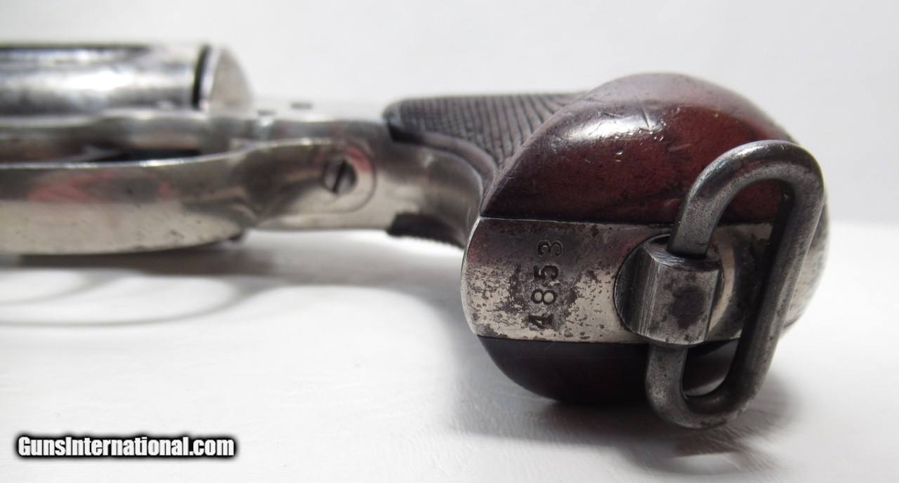 Description: Colt Model 1878 Revolver; Serial No. 4853; .45 Colt Caliber; 7 ½” Barrel; Nickel Finish; Checkered Walnut “Fat Grips”; Lots of Nickel Present; Fine Original Grips; Good Action; Fairly Strong Bore with moderate pitting; Note: This Revolver was Obviously Returned to Factory for Repairs or Update as “45 Colt” on Barrel and “Rampant Colt” on Frame – Only Information Colt Archives had was Wood Grips and Shipped to Hibber, Spencer & Bartlett of Chicago, IL. on February 8, 1881; See All Photos for Condition; No Texts; Call (254)541-5765 or Email Only; PERSONAL PROPERTY of Harold Wieser; Price: $1975 + $45 S&H Via USPS PRIORITY MAIL; Payment Address: Harold Wieser - 1466 U.S. Hwy 77 - Rosebud, TX 76570; SEND PAYMENTS VIA USPS PRIORITY MAIL; BEWARE of SCAMS!!! – DO NOT SEND MONEY or CORRESPONDENTS ELECTRONICALLY UNLESS YOU HAVE SPOKEN to HAROLD WIESER FIRST! 254-541-5765 SOLD Antique: Yes Manufacturer: Colt Model: 1878 Serial Number: 4853 |