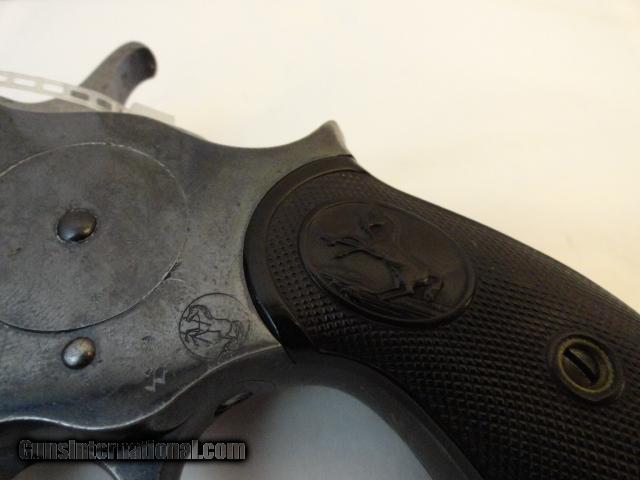 Description: This is a fine antique Colt Model of 1878 double action with the desireable short 4 3/4" barrel and rarer blue finish. As to condition, the frame retains at least 85-90% original factory high luster blue finish. The grip straps have grayed out as has most of the cylinder. The barrel retains about 70% original factory blue. The ejector housing has traces of high polish blue. Grips are superb. Bore is gem mint. Action works like new. Wonderful antique western big bore Colt. Production of pre 1898 double actions is less than a third of the SAA and finding nice examples, esp in blue finish, is getting to be harder as more and more collectors add these to their list of Wild West handguns. SOLD Antique: Yes Manufacturer: Colt Model: 1878 Serial Number: 28001 Caliber Info: 44-40 Condition: fine Bore Condition: mint Action: double Finish: blue Manufacture Date: 1891 |