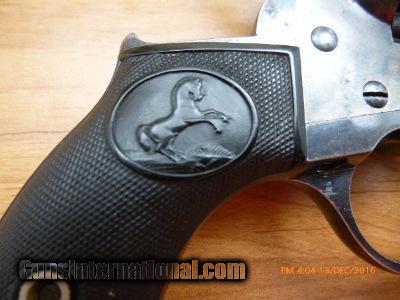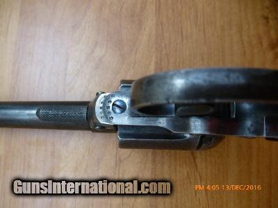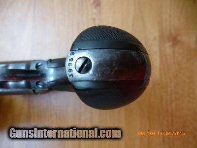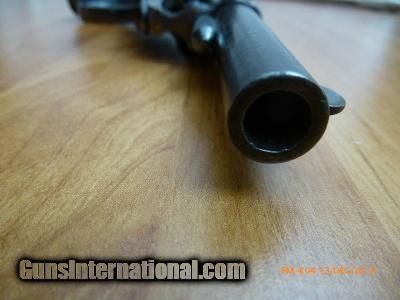 Description: Model 1877 Colt Lightening 38 caliber, 2 line address on top of barrel. 16-103 Colt-Model 1877 “Lightening 38”, 2 line address on top of barrel.3-1/2” barrel, serial # 59959, made in 1887; 38 long Colt caliber. Standard patent makings on front of frame. Original fine hard rubber grips with rampant Colt, metal is very clean with 50%+ bright original blue finish on barrel and trigger guard and back strap 50% cast colors on frame, bore is shiny and has 95% + of the rifling, chambers are clean. Action works fine on single or double action. Very nice piece, in Excellent Plus condition. (Flayderman says 30% 0r more original finish is fine and this Colt has more than that) Made prior to 1898; Do not need FFL or C & R. (16-103) $1,250.00 I take Visa/MasterCard, add 3%. Allow two weeks for all checks, whether bank, personal or certified to clear. It is also possible to wire funds to my account for instant credit for a $20.00 wire charge. 3 day- no questions asked return period for refund of price paid for gun. (Not including shipping or credit card charges.) All sales subject to prior sale at other sites or from shop. Call or email with any questions or for more pictures. Guns are antique and should not be fired without examination by gunsmith. $50 shipping for long guns, $30 for hand guns to lower 48 states, about $50-$75 to most European countries and $70-$80 to Australia for antique handguns, carbines $75-$125. We can generally get insurance if you want through shipper but coverage is very limited. Notify me if you want it. You can send 20% down- balance in 90 days for installment payment plan. No refunds on installment plans. I have shipped to Norway (long gun w/fragile stock) see feedback, England (Winchester1876, Rem. Dbl. Derr.), Northern Ireland, Austria, France, Netherlands, Holland, Australia, Norway, and Sweden. Email if you are not U.S. for estimated shipping costs, payment methods, etc. I am always buying and trading for antique and collectible guns, Indian items, rare ammo, etc. Email what you have got for sale or trade. SOLD Antique: Yes Serial Number: 59959 |
