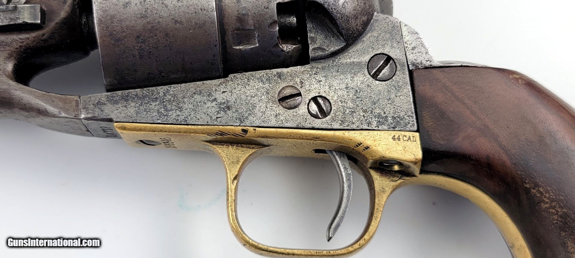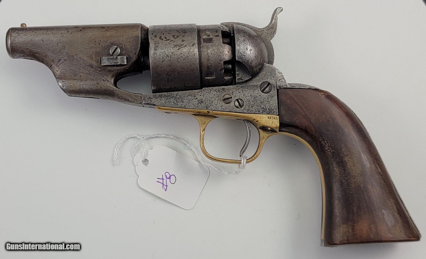 Description: Old West Colt 1860 Army “Mormon Avenging Angel” .44 caliber Revolver in fair working order as modified in the late 1800s. The pistol is not matching which is typical of these modified revolvers. This gun’s barrel length has been cut down to 3″ often referred to as a “Snub-nose”, Belly Gun or “Mormon Avenging Angel” style. These modified cut-down revolvers got the nickname “Mormon Avenging Angel” in the mid-to-late 19th century from their association with Mormon Church leader Brigham Young’s personal bodyguard Orrin Porter. “Old Port” Rockwell, who is often called the “Avenging Angel” and “Mormon Avenger,” carried one of these style pistols. Rockwell was a renowned mountain man and scout,a Deputy U.S. Marshal and long-time marshal of Great Salt Lake City. This is one of several Old West Colt revolvers and so-called Coach Gun, short barreled shotguns that I have available from an old Cowboy gun collection. SOLD Antique: Yes Handgun Caliber: .44 Manufacturer: Colt Model: 1860 Army |