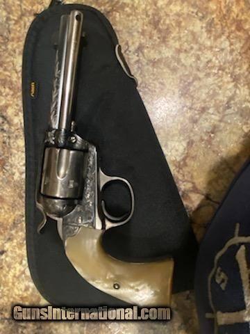 Description: 1871 Bisley Model Revolver, 38-40 Caliber with pearl handle grips. RARE Collectors item!! Nickel plated cylinder, factory engraved and comes with letter of authentication. Perfect action and strong shiny bore. Includes box of shells. Price is $25,000.00 with $45.00 Shipping and Handling. Photos attached, call (435)773-2529 OR Email. SOLD Antique: Yes Manufacturer: Colt Model: Bisley Serial Number: 223549 Condition: Good Metal Condition: Good |