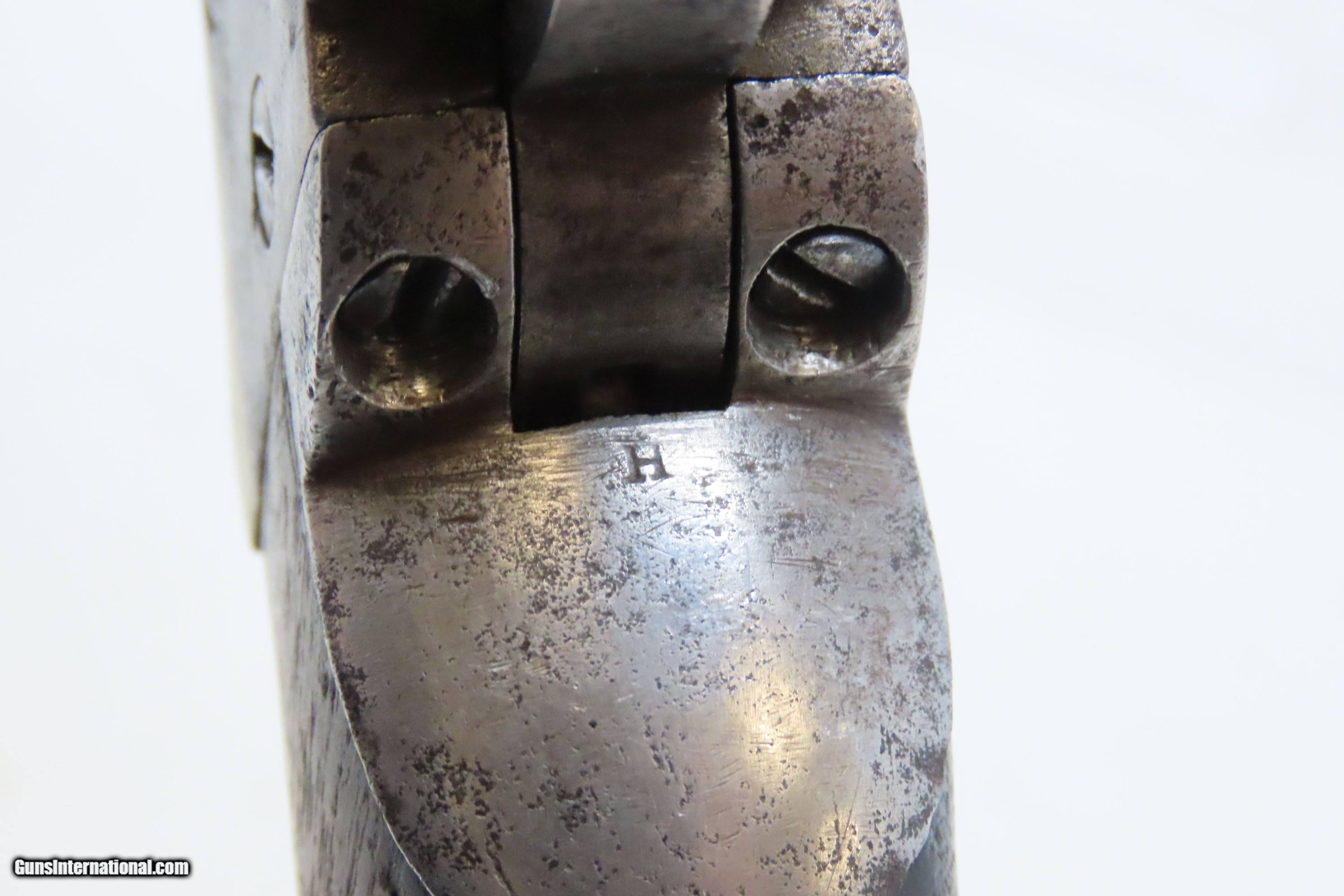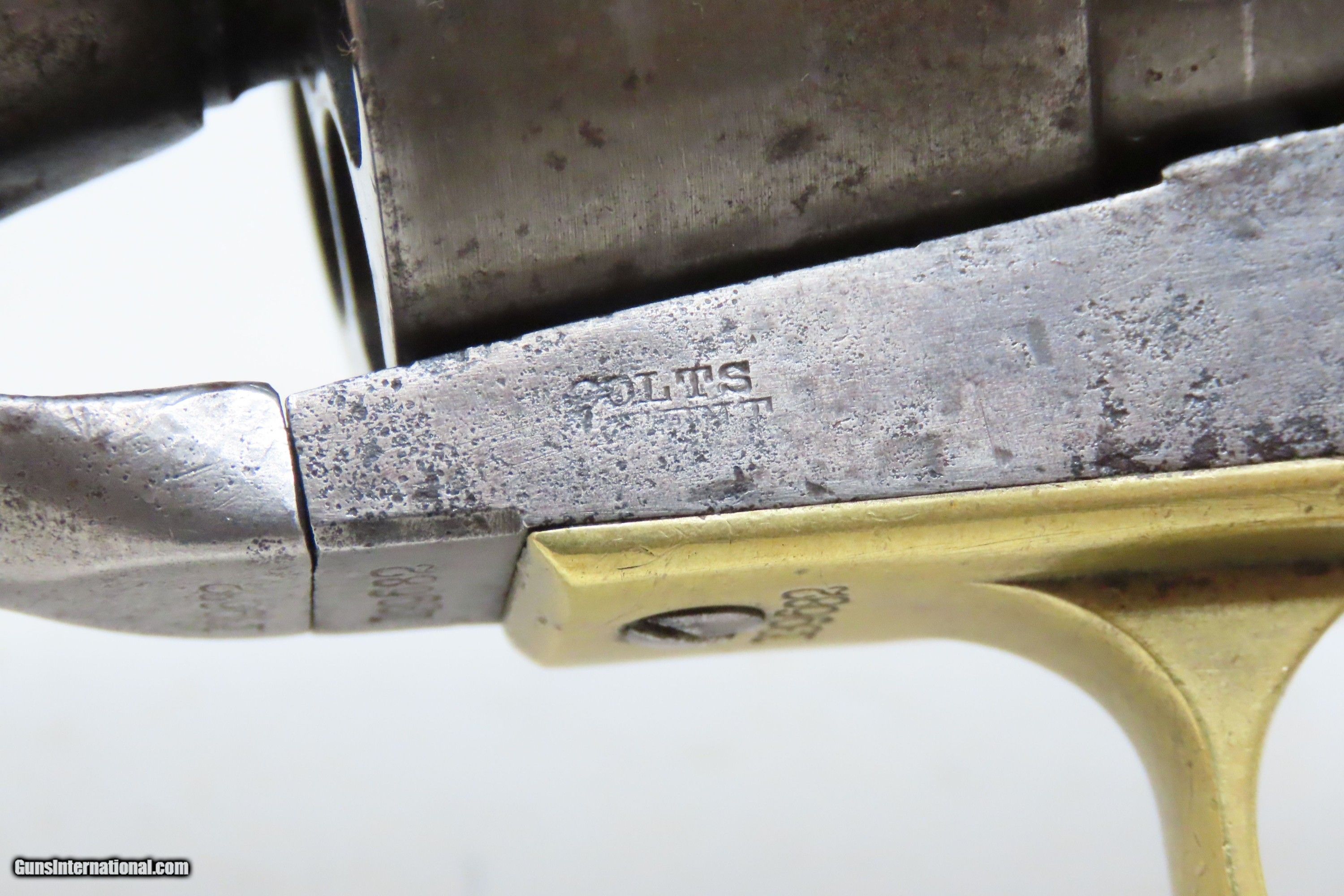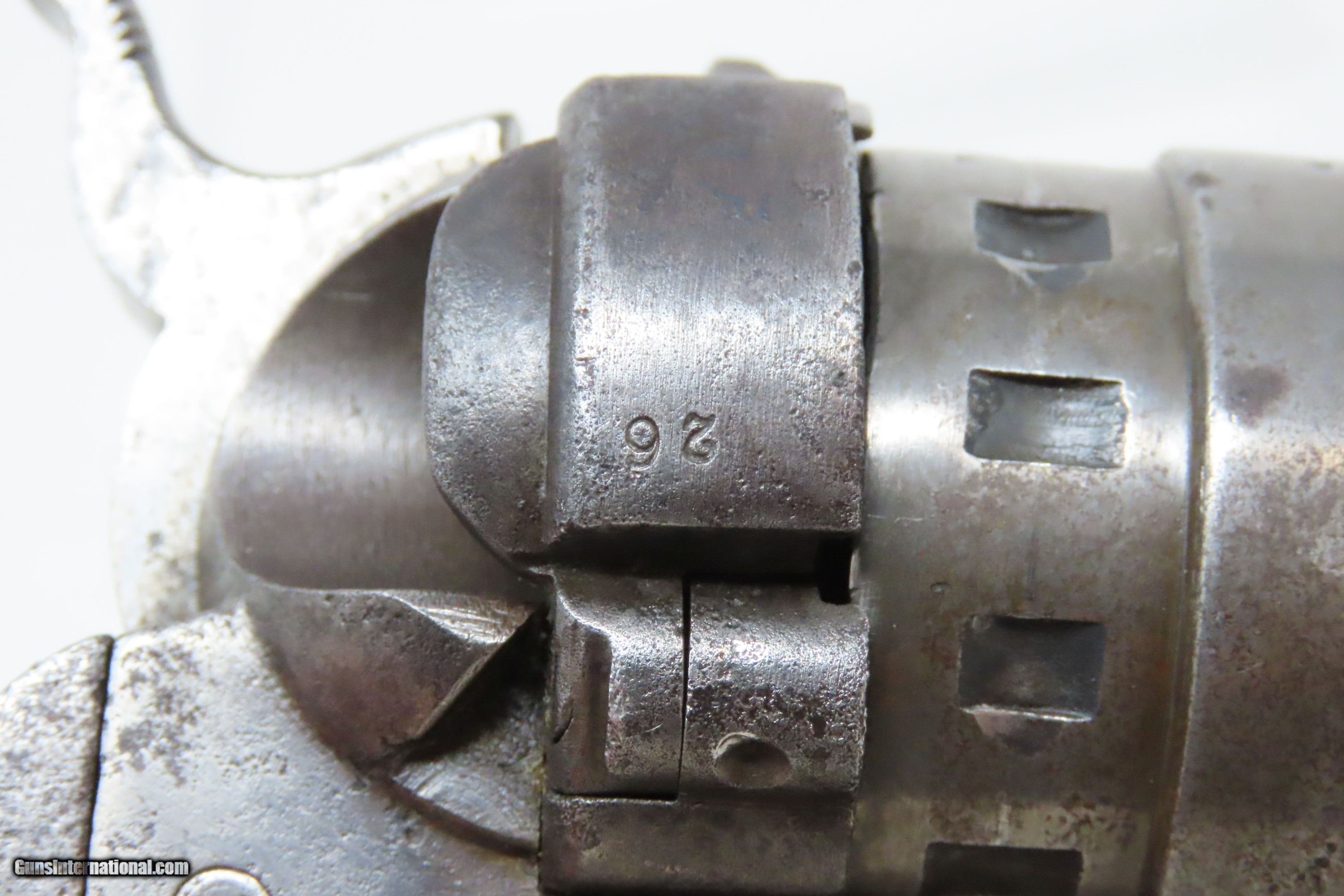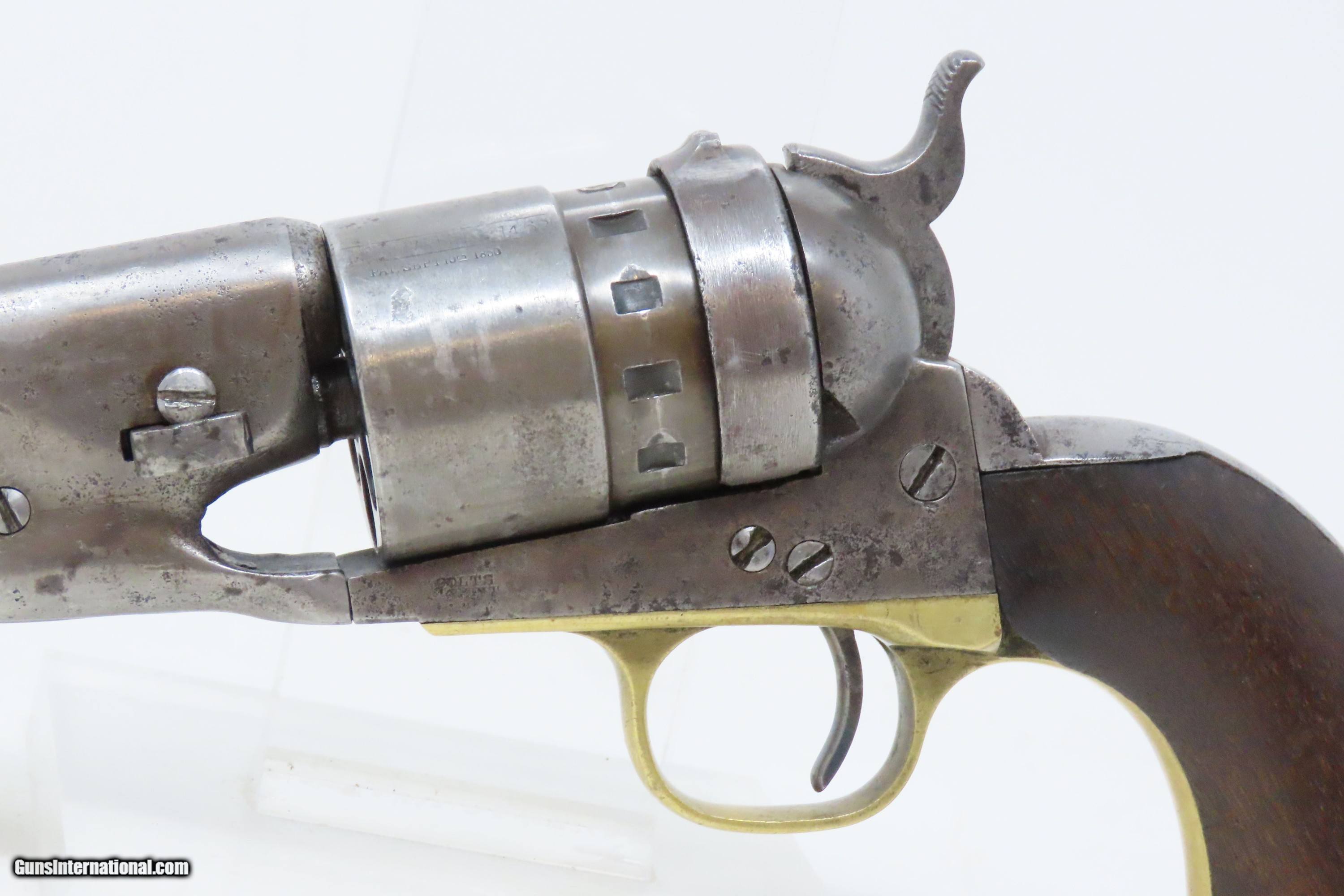 Description: RARE Antique COLT M1860 ARMY “12-Stop” RICHARDS Conversion .44 CF Revolver VERY SMALL NUMBER MADE with “12-Stop” CYLINDER Here we present an antique Period Engraved Colt Model 1860 Army Richards Conversion Revolver, manufactured in 1864 and converted sometime between 1873-78. Of the 9000 that were converted, only a very small number of the early production revolvers utilized the 12-Stop cylinders. Charles B. Richards was an engineer who worked for the Colt’s Patent Fire Arms Company and was awarded a patent for converting Colt percussion models to breech loading cartridge revolvers. After the onset of the American Civil War, Richards eventually became Superintendent of Engineering at the Colt factory in Hartford, Connecticut. Richards' first major post-Civil War design was Colt's second attempt at metallic cartridge conversion known as the "Richards Conversion". Colt's revolvers to this point had been black powder percussion pistols. However, the U.S. Army wanted a revolver that held metallic cartridges, which Colt could not produce because the Rollin White patent was still held by rival Smith & Wesson. Colt's only solution would be to bore through the rear of their cylinders and devise a new method of ignition and case extraction. The Richards Conversion was performed on this Colt 1860 Army revolver. The caliber was .44 Colt Centerfire. This conversion added a breechplate with a firing pin and a rear sight mounted on the breechplate. Colt manufactured 9,000 of these revolvers between 1873 and 1878. In 1873 Colt performed the same conversion on the Model 1851 and Model 1861 revolvers for the U.S. Navy in .38 rimfire. The Richards conversion was an instant success, all being done concurrently with the iconic Colt Single Action Army, which Richards was responsible for the development of! The 1860 Army was the single most used pistol of the American Civil War. Over 200,000 were made from 1860 to 1873, and 156,000 of those were made by the end of the war in 1865. The overall condition is good. Gray patina. The action is excellent. The bore is very good with strong rifling. The grip shows use and there is a small chip where the frame meets the left bottom corner. Numbers match except for the cylinder. Own the original! This is a legitimate antique and not a reproduction. Barrel is 8 inches. Caliber: .44 Centerfire Overall condition as seen in photos. Very Fast. Very Safe. FREE SHIPPING WORLDWIDE. Delivered directly to your door by express mail! Guaranteed AUTHENTIC & Includes CERTIFICATE OF AUTHENTICITY. ancestryguns $4000 #240009 SOLD Antique: Yes |