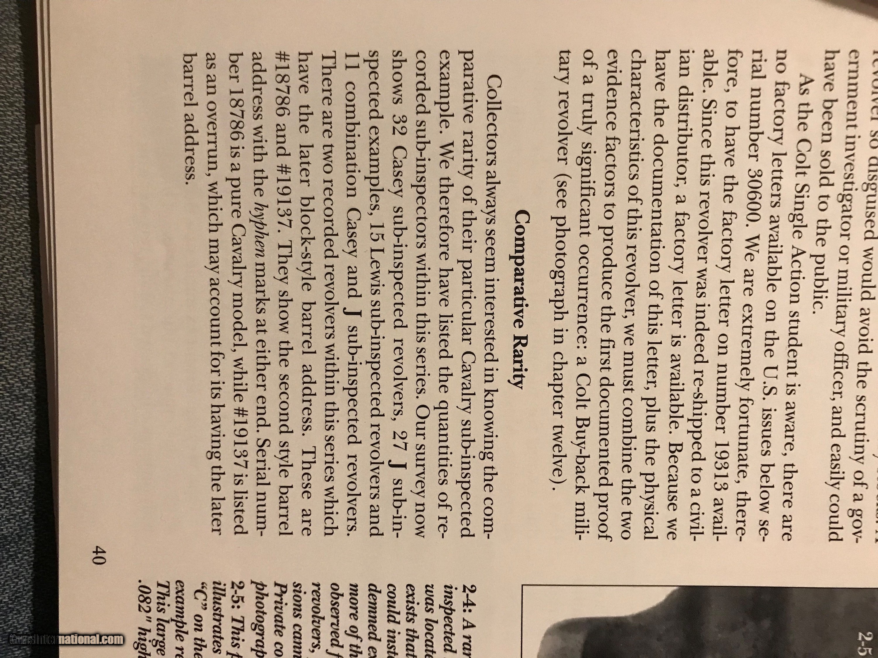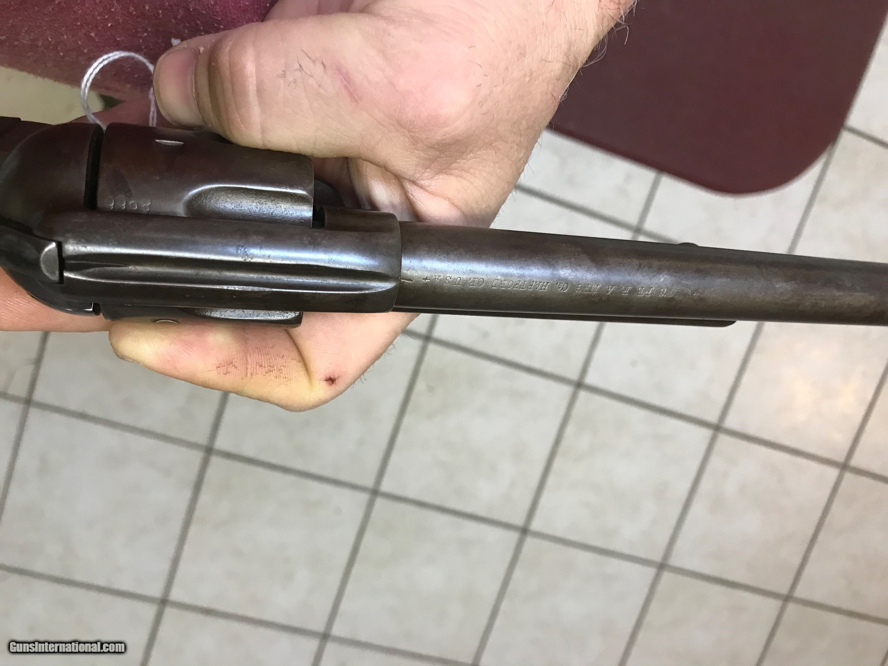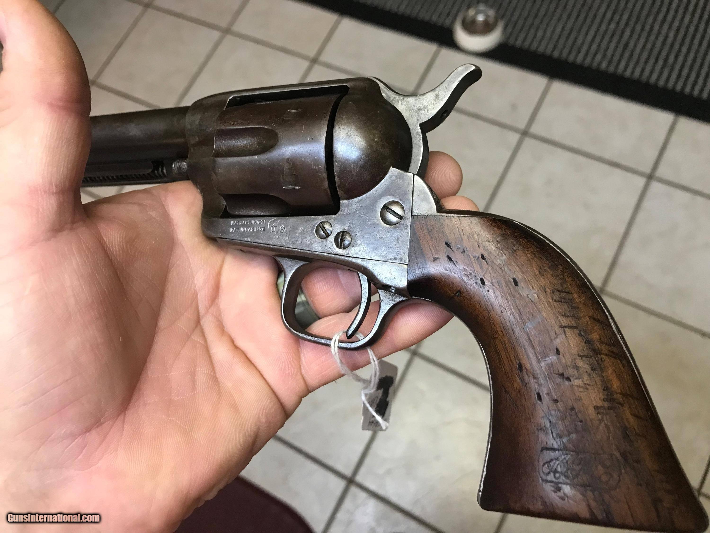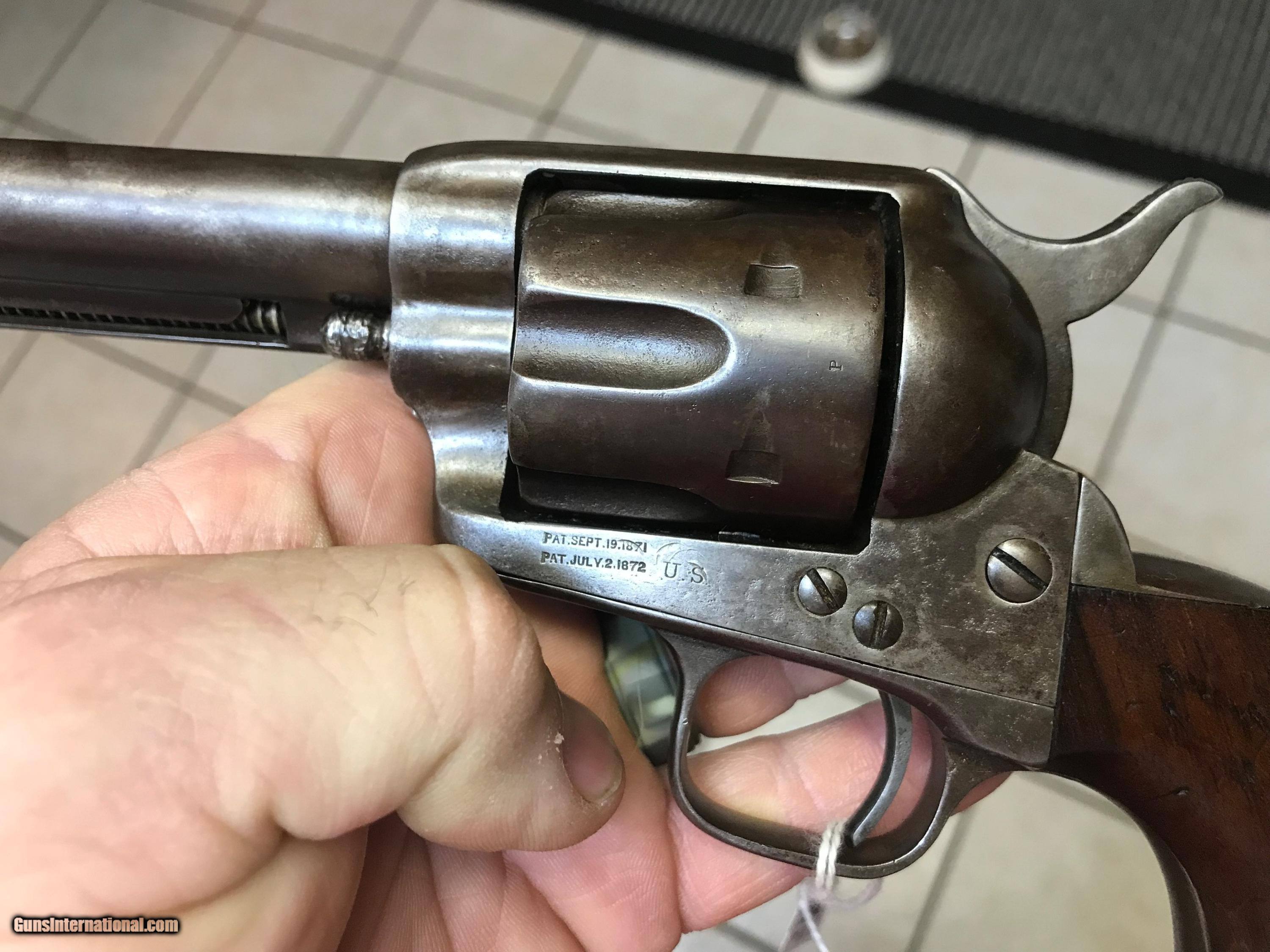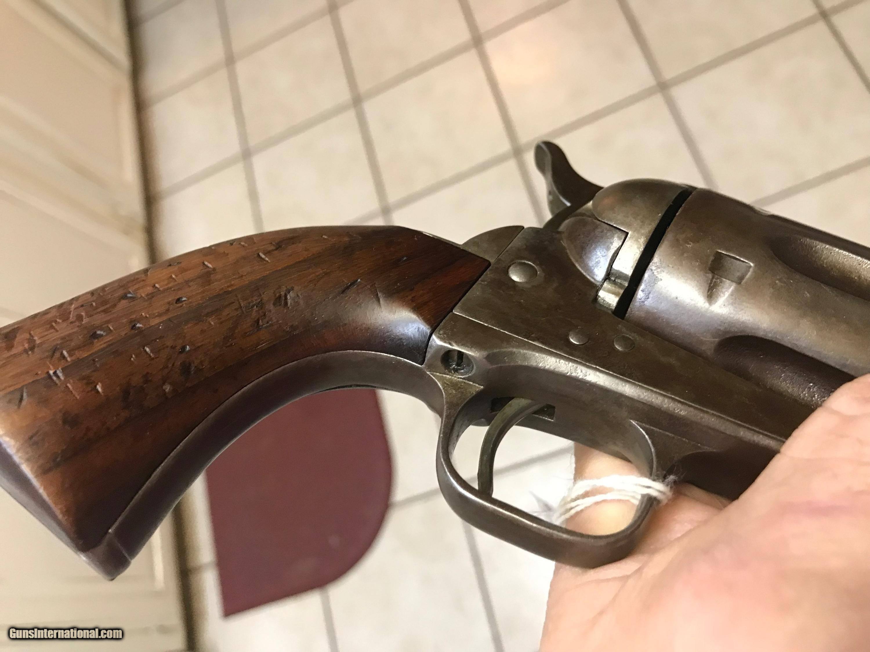 Description: Sold !!!!!! US Cavalry Colt. AP Casey inspected. Rare. Casey became ill for a period. In his absence, there were a few sub-inspectors. Those too are rare. I will say that the US Cavalry revolvers, being 150 years old, have probably had some sort of work done to them. Just a educated guess. Anything 150 years old has had something done to it to make it usable. Anything 2 years old made in China or Mexico probably is un-repairable. That's my experience anyway. This old Cavalry came out of a 50 year collection. And though it's probably not a $50k US Cavalry at . It is a rare Casey Inspected Cavalry. I do take trades on Colt SAA's that I like. If the warm fuzzy feeling wears off I enjoy getting something else to research. I do also take Gold and Silver but would rather have a 1st gen or early 2nd gen Colt saa. Also looking for a 1886 Carbine in 40-82. I've got a lot of ammo for one. Have a blessed day and Happy Collecting/ Investing. And they all lived happily ever after, The end SOLD Antique: Yes |