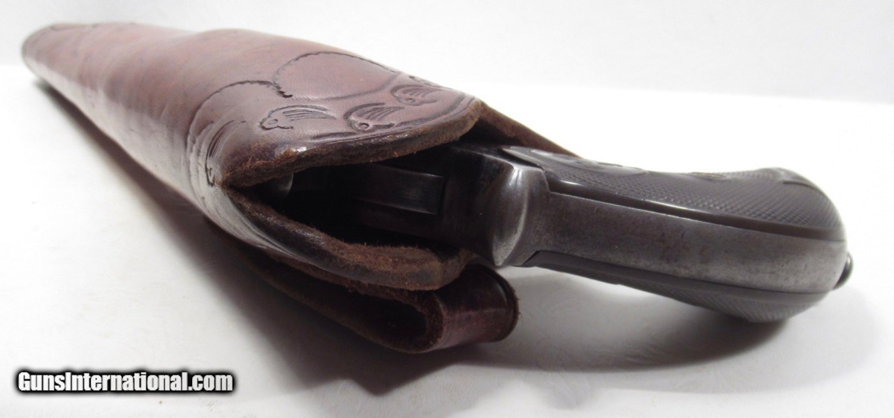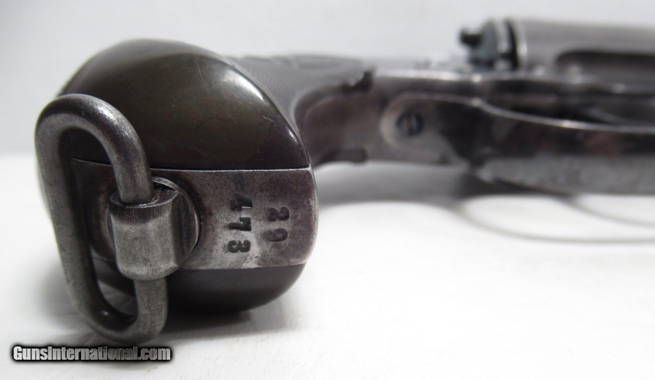 Description: SALE PENDING--Colt Model 1878 Double Action Revolver; Serial No. 29473; 38 W.C.F. (38/40) Caliber; Blue Finish with 5 ½” Barrel; 100% Original, Correct, and Matching; Shipped to Montgomery Ward & Company in Dec., 1891 as part of a 2 Gun Shipment (per Factory Letter); Mail Order House with some retail outlets; Very High Amount of Hi-Luster Blue Remains with most loss on cylinder and straps; Excellent Original Grips; Perfect Action and Great Shiny Strong Bore; fairly Scarce Variation with Total Production of 552; Outstanding, Beautiful unmarked Holster Accompanied; a Fine 130 Year-Old Piece of Colt History; See All Photos for Condition; No Texts; Call (254)541-5765 or Email Only; PERSONAL PROPERTY of Harold Wieser; Price: $2,475 + $45 S&H Via USPS PRIORITY MAIL; Payment Address: Harold Wieser - 1466 U.S. Hwy 77 - Rosebud, TX 76570; SEND PAYMENTS VIA USPS PRIORITY MAIL; SOLD Manufacturer: Colt Model: 1878 Serial Number: 29473 |