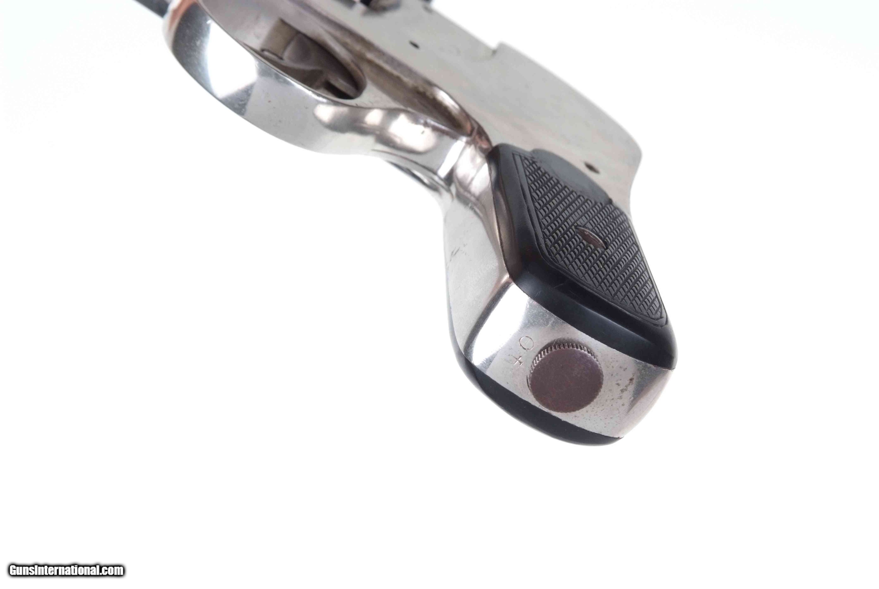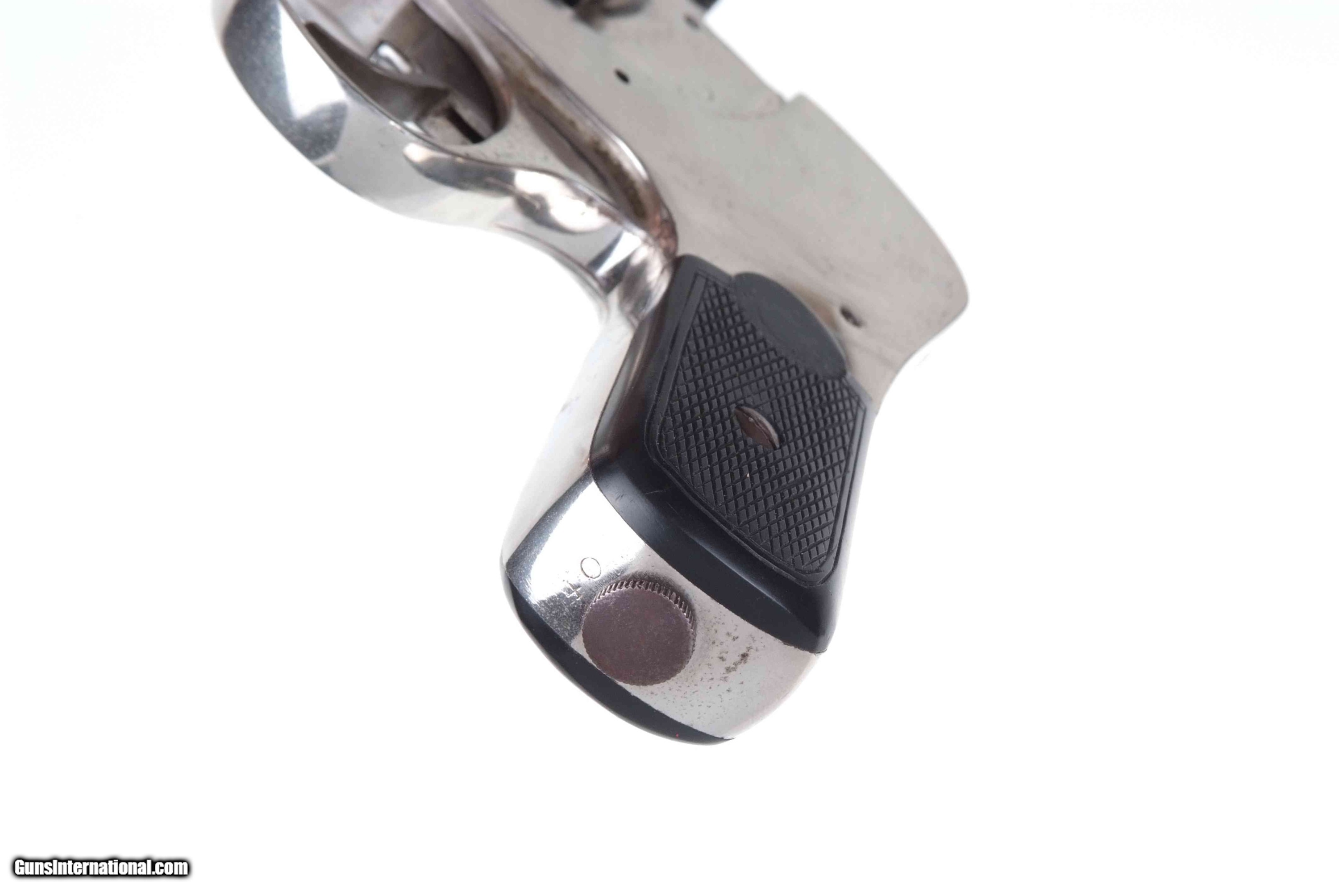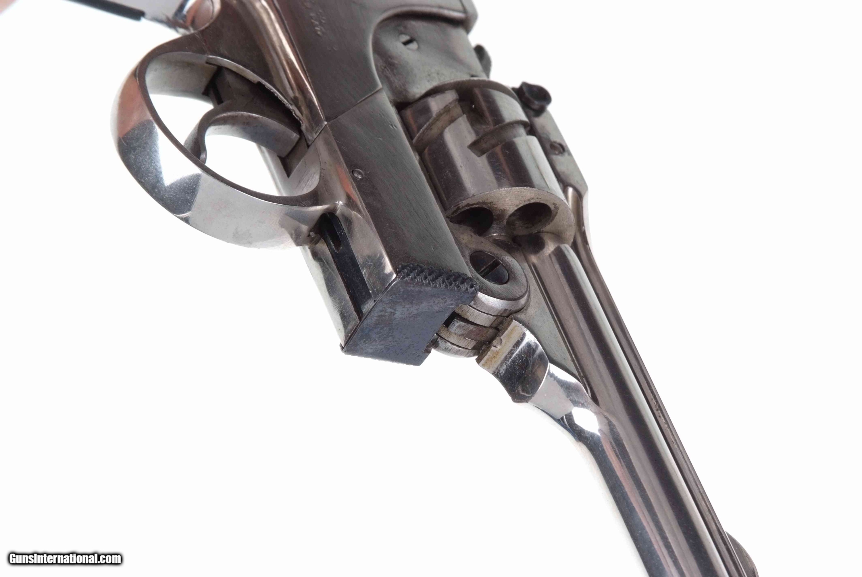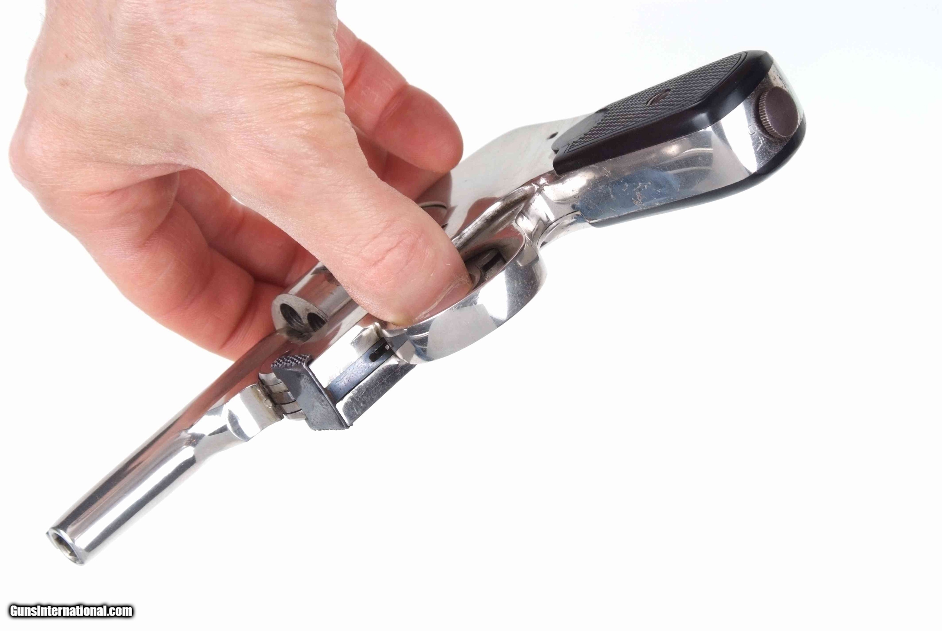 Description: Excellent, all original, Union Fire Arms semi-automatic revolver in .32 S&W, made in Toledo, Ohio, production fewer than 300 units, this one SN: 40. Standard configuration revolver with 2 7/8" barrel, fixed front and rear sights. Top break, SA/DA action. Zig-zag cylinder that can be functioned/rotated by moving top assembly rearward with hammer cocked. Right side of frame marked with manufacturer, location, and "Lefever Pat.". Serial number on base. Factory nickel with small parts fire blued, color case hardened hammer and trigger. Black checkered HR grips. Synopsis: Union Fire Arms Co., Union Semi-Automatic Revolver, .32 S&W, Nickeled. Condition: Excellent, with spots of flaking and a few superficial scratches as photographed. Most noticeable areas of flaking on left side of barrel at the rear, a single patch on cylinder, and a few spots of disturbance around right side of latch pin. Minimal use as reflected by very light case imprint on recoil shield. Mirror bore. Perfect manual mechanics. A super rare revolver, one of very few made to function as a semi-automatic (Webley Fosbery, Zulaica, Mateba 6-Unica). This is one of the best Union semi-automatic revolvers you are likely to encounter. ~~Insured shipping fee of $155; most packages shipped using FedEx 2nd Day.~~ SOLD Antique: Yes Manufacturer: Union Fire Arms Co. Serial Number: 40 Caliber Info: .32 S&W |
