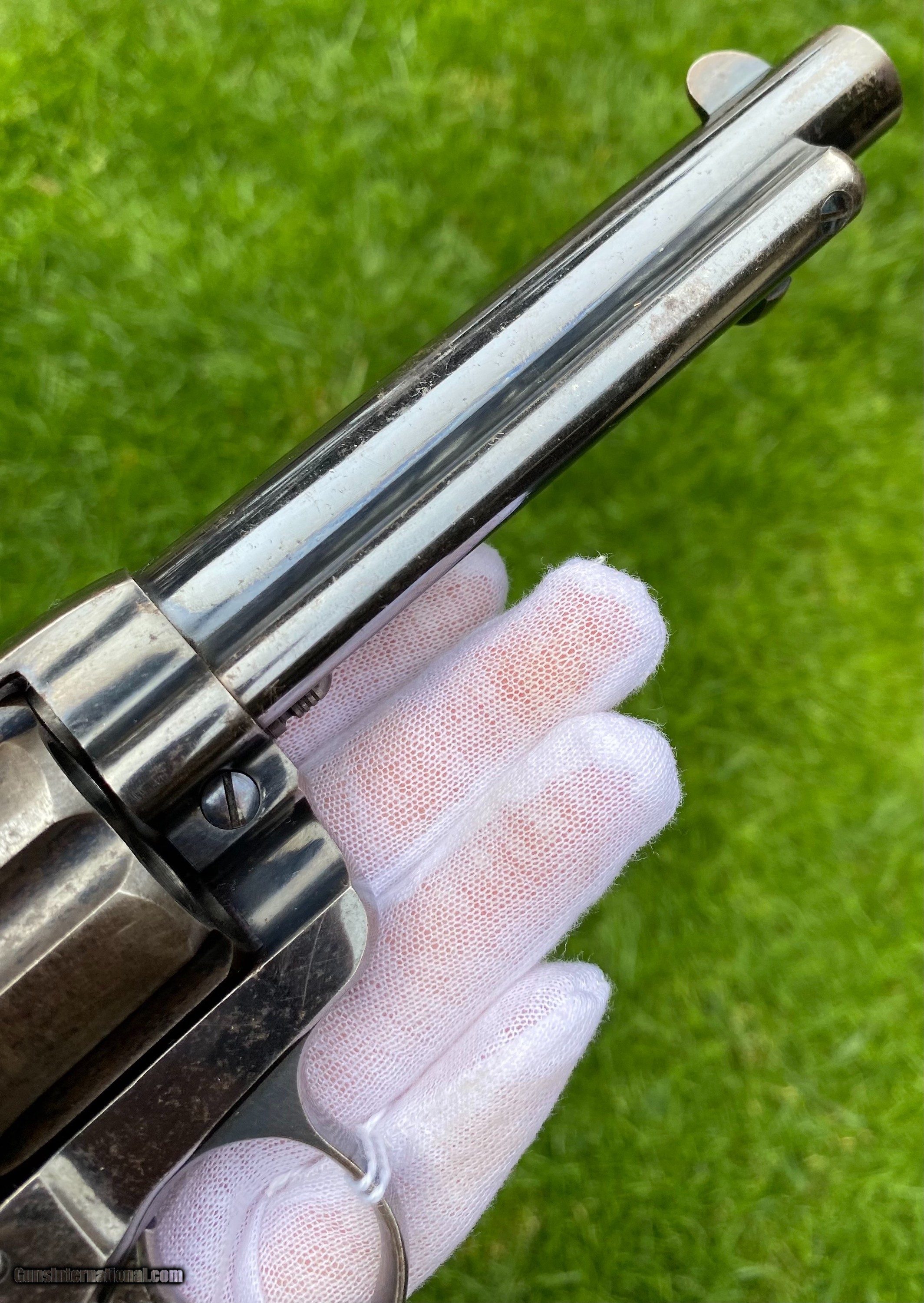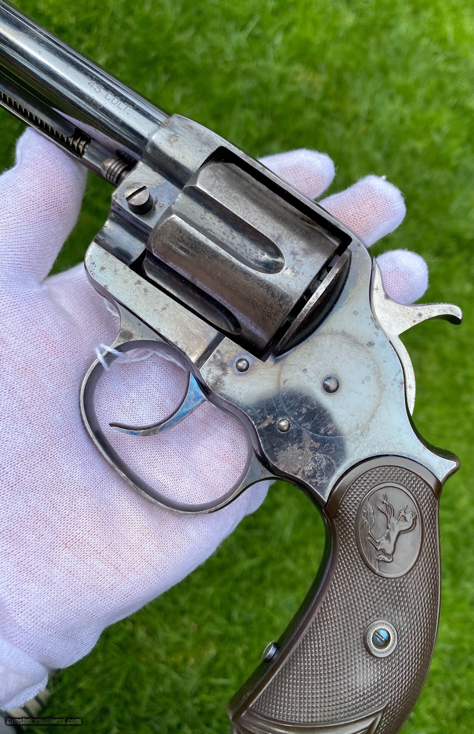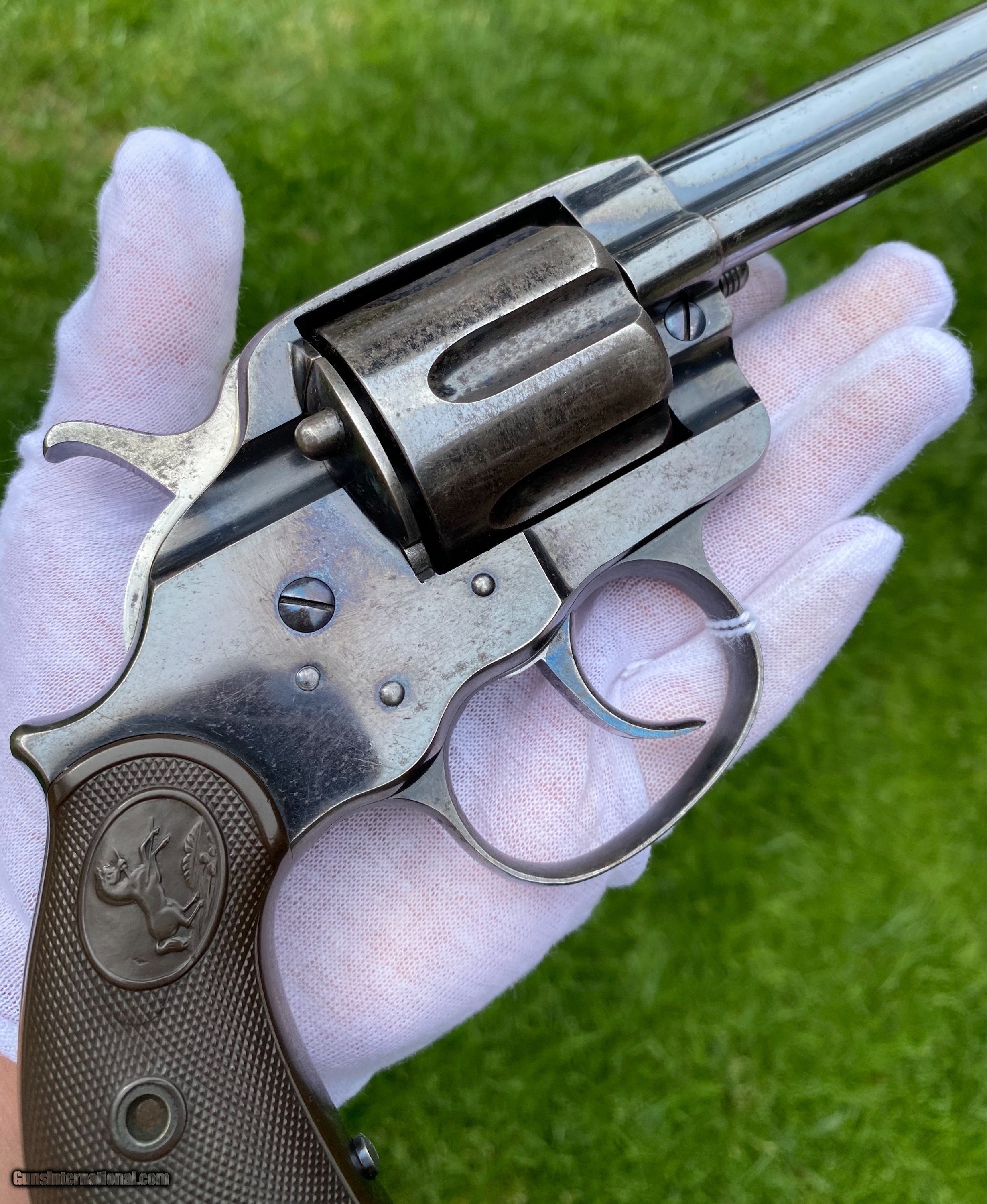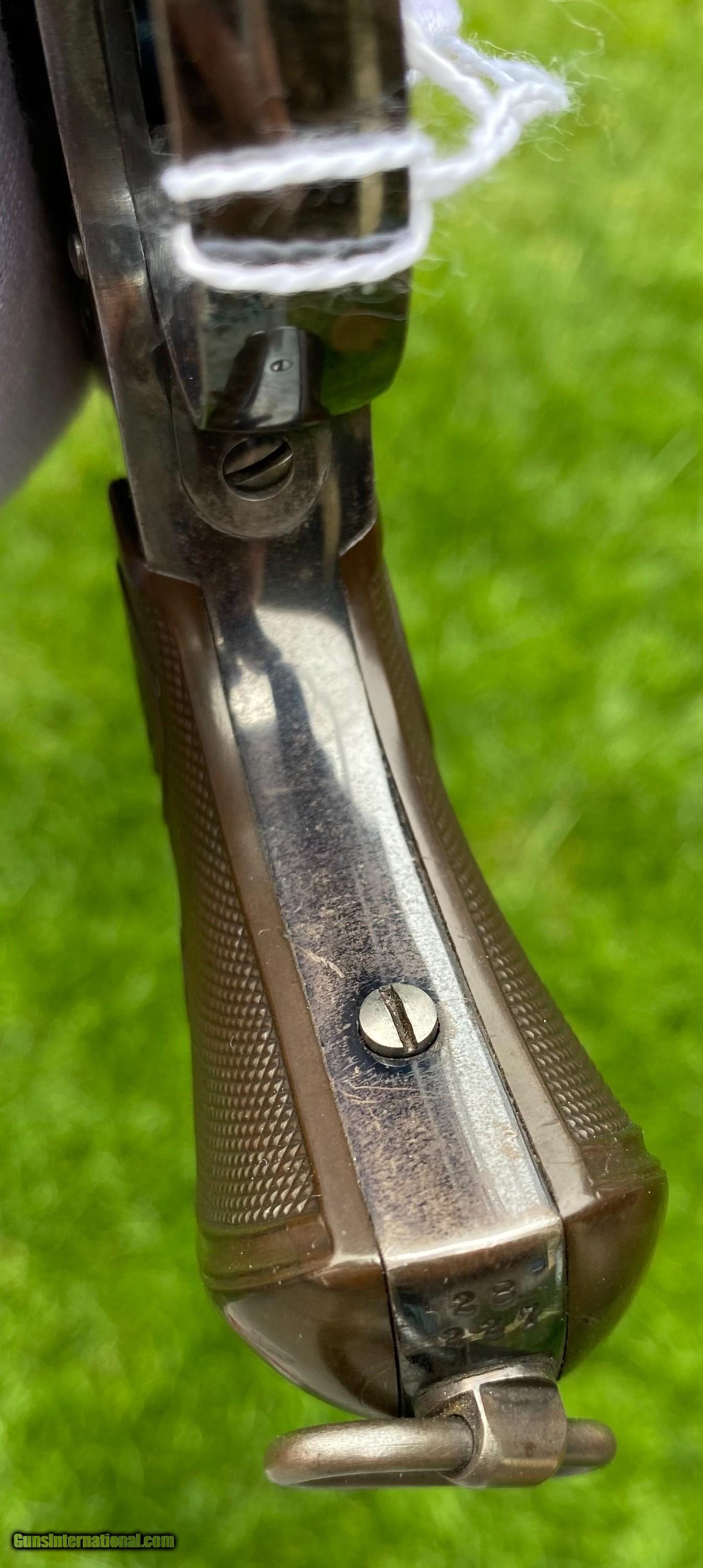 Description: This is an excellent example of the Colt Model 1878 Double Action Revolver, this example is in the caliber .45 Colt. Overall the condition shows 85% original blue. This Colt, the photos truly don't show how nice this gun is. The blue on the cylinder is fading. The backstrap shows a fading blue to patina finish. The trigger still shows nitre blue. The screw heads are excellent and shows original finish. The grips are very fine condition. Mechanically appears to function well in single and double action. The cylinder has some normal side to side wobble as found on these models because of how fragile the internals are. Manufactured in 1891. Shipping is $25 plus actual insurance. Insurance amount can be chosen by the buyer. Thank You! Asking $2,650.00 SOLD SOLD Antique: Yes |