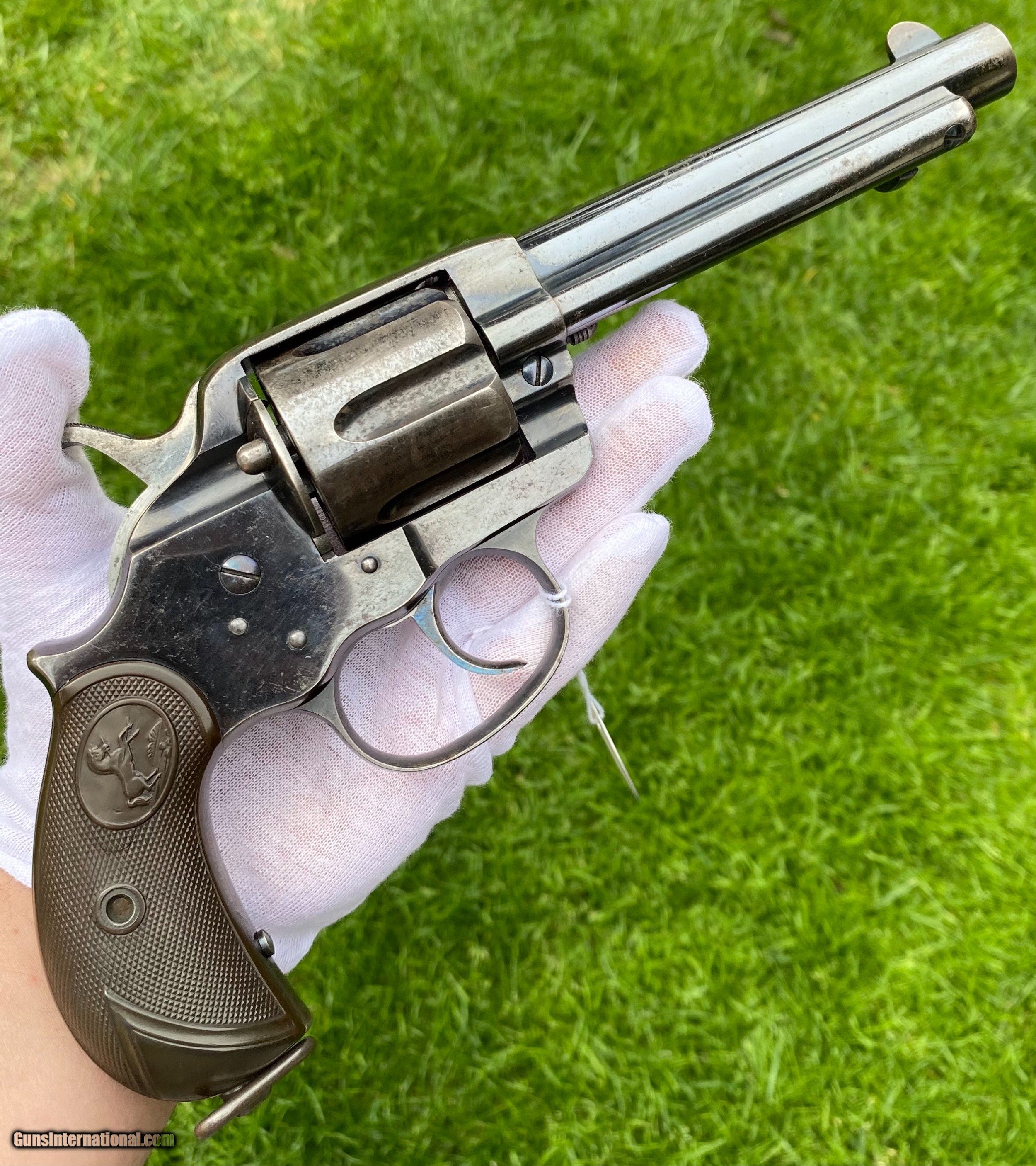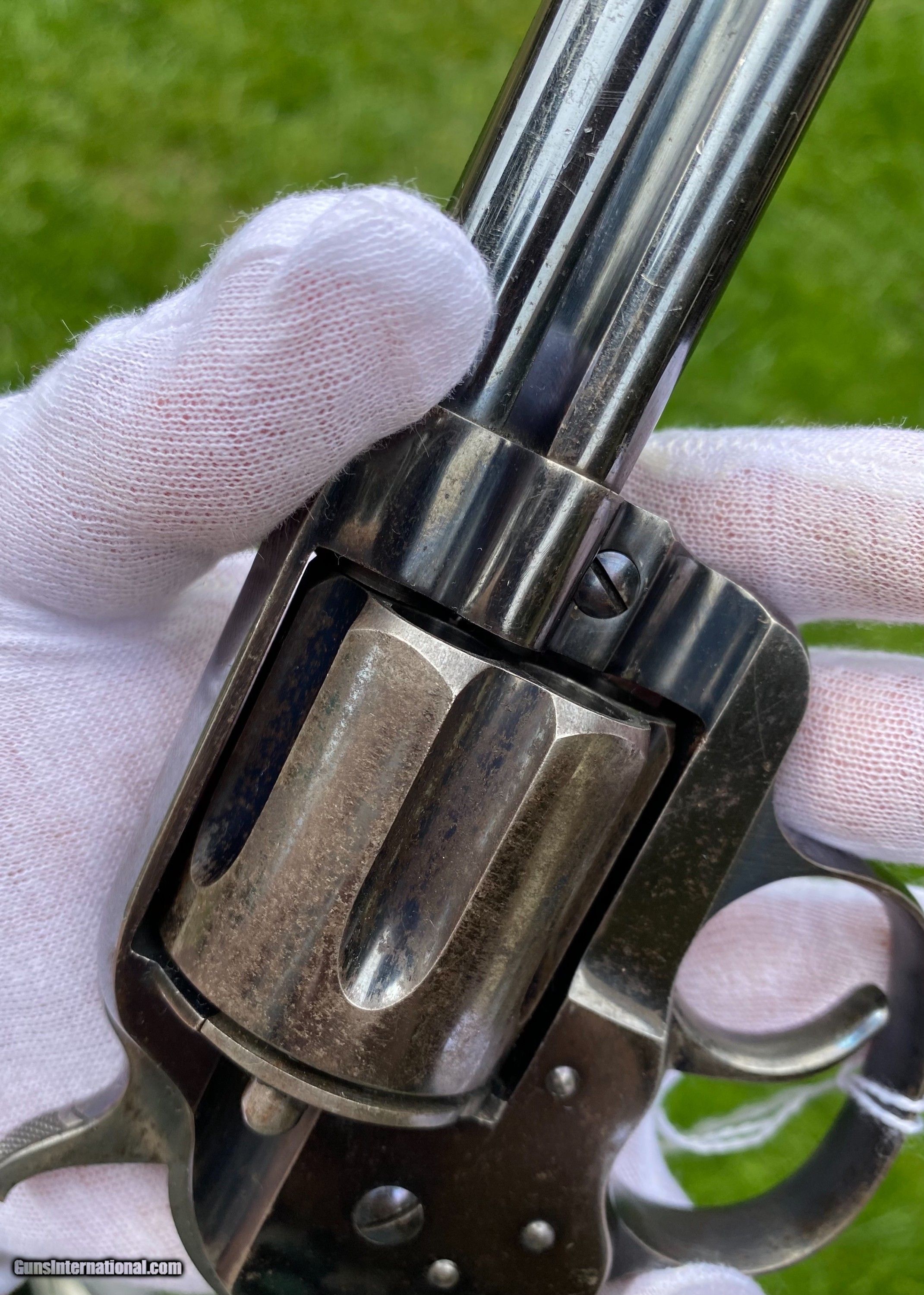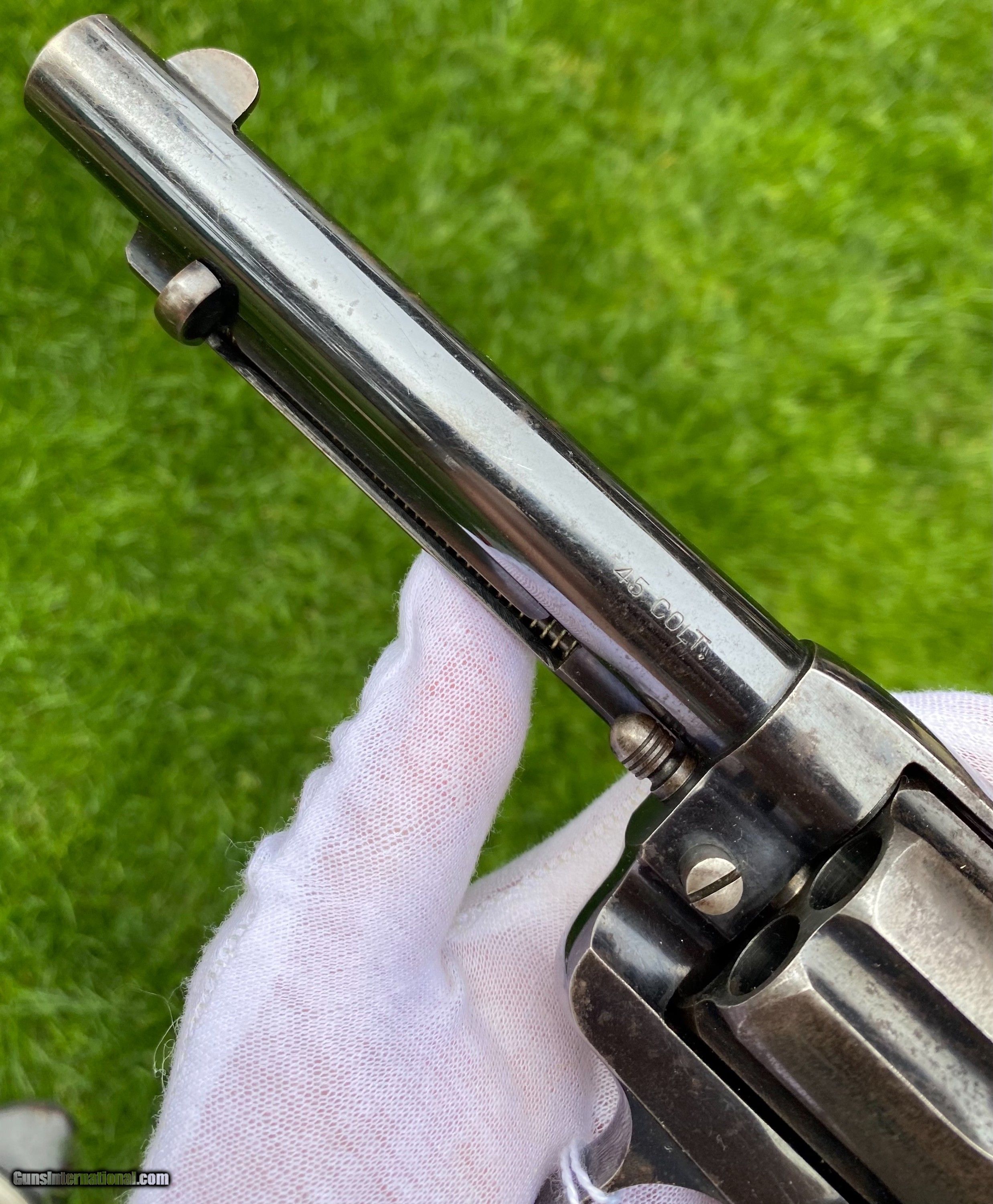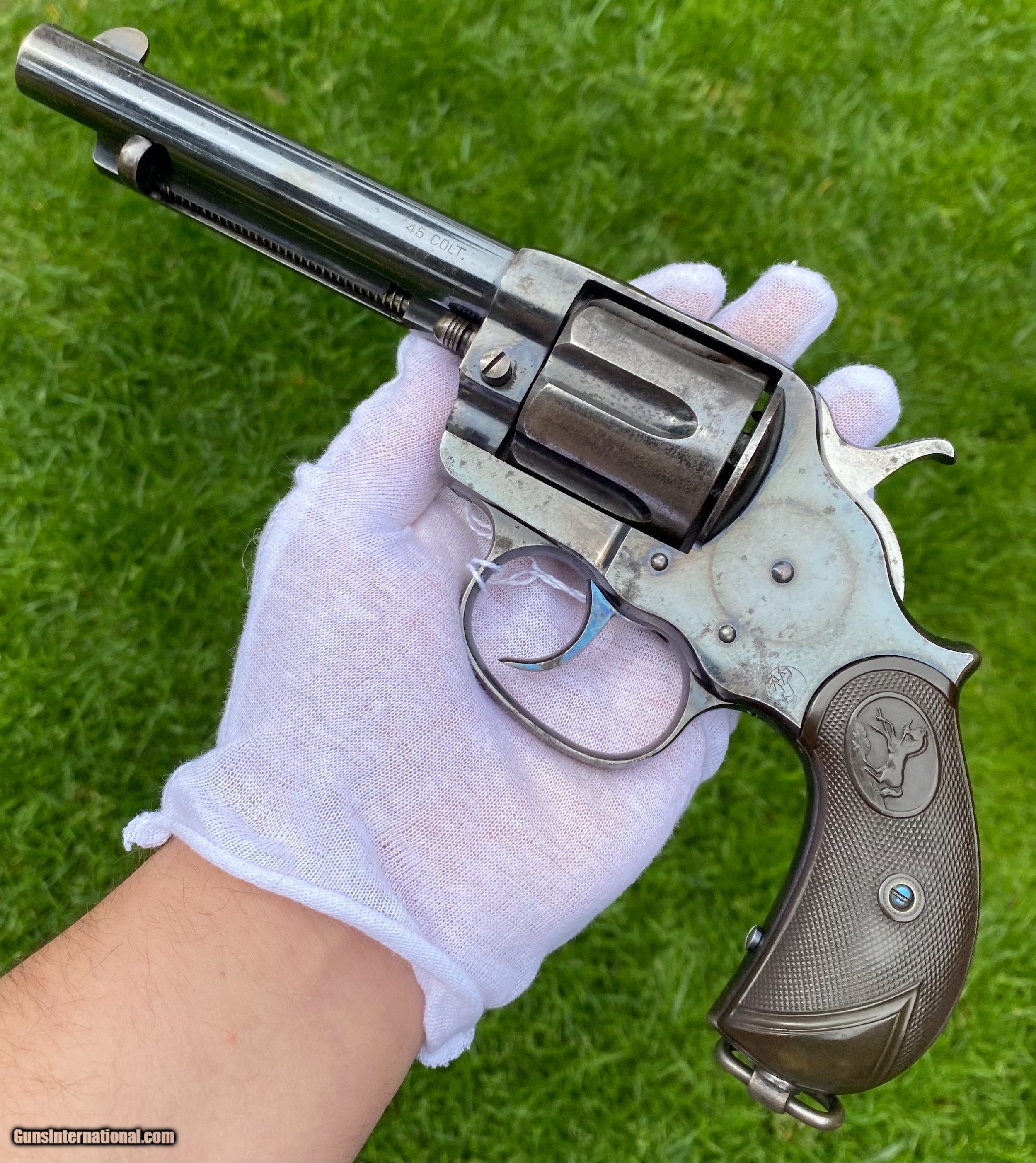 Description: This is an excellent example of the Colt Model 1878 Double Action Revolver, this example is in the caliber .45 Colt. Overall the condition shows 85% original blue. This Colt, the photos truly don't show how nice this gun is. The blue on the cylinder is fading. The backstrap shows a fading blue to patina finish. The trigger still shows nitre blue. The screw heads are excellent and shows original finish. The grips are very fine condition. Mechanically appears to function well in single and double action. The cylinder has some normal side to side wobble as found on these models because of how fragile the internals are. Manufactured in 1891. Shipping is $25 plus actual insurance. Insurance amount can be chosen by the buyer. Thank You! Asking $2,650.00 SOLD SOLD Antique: Yes |