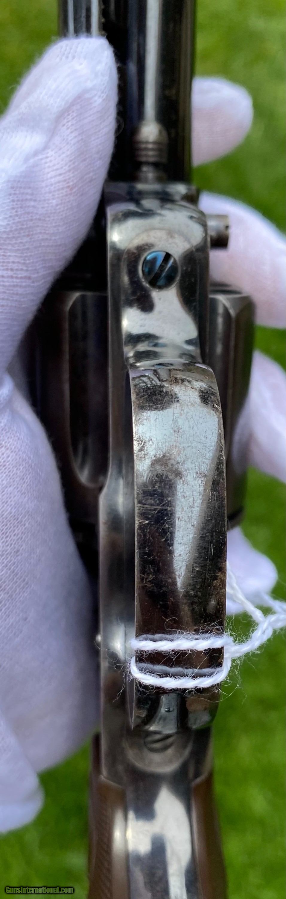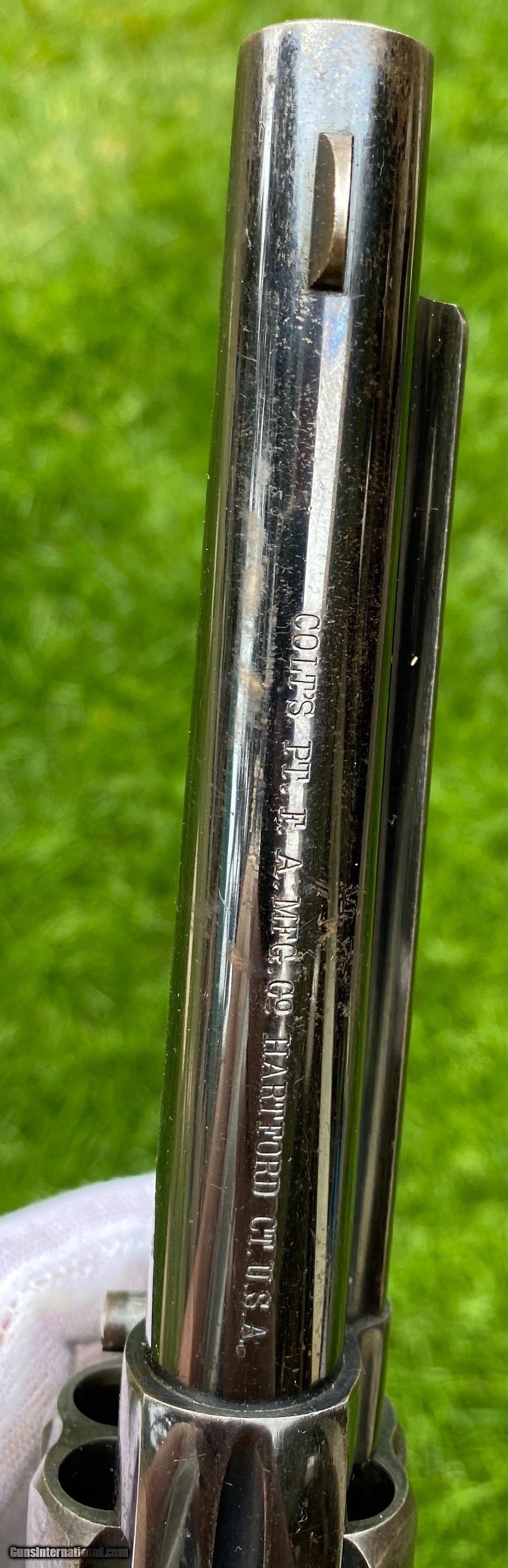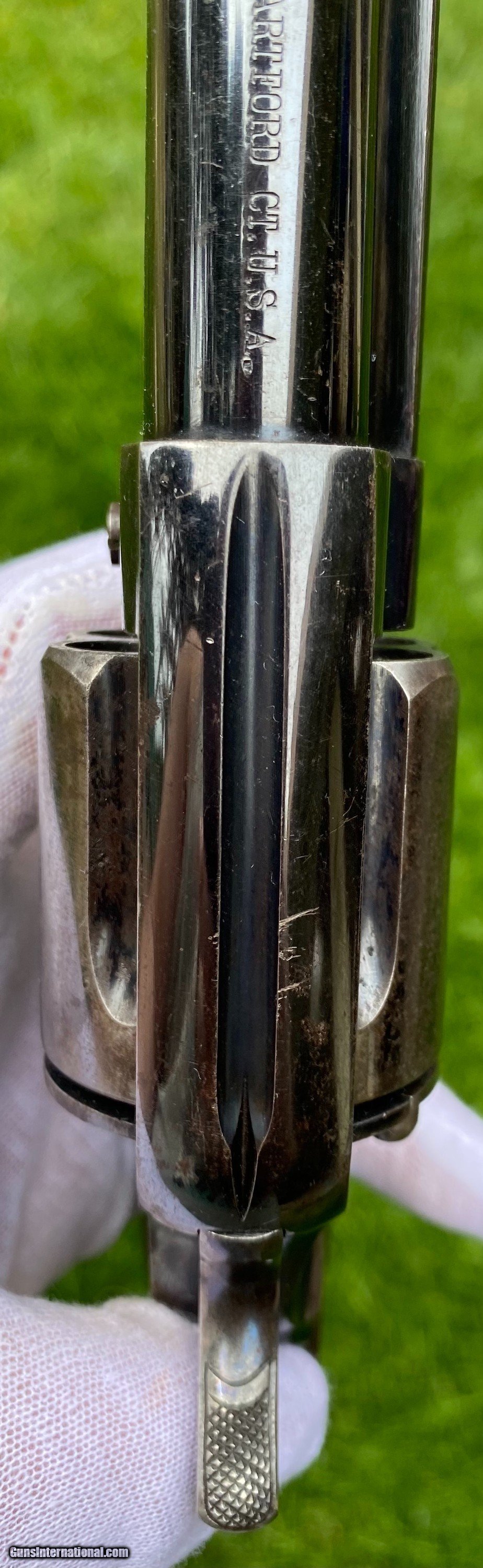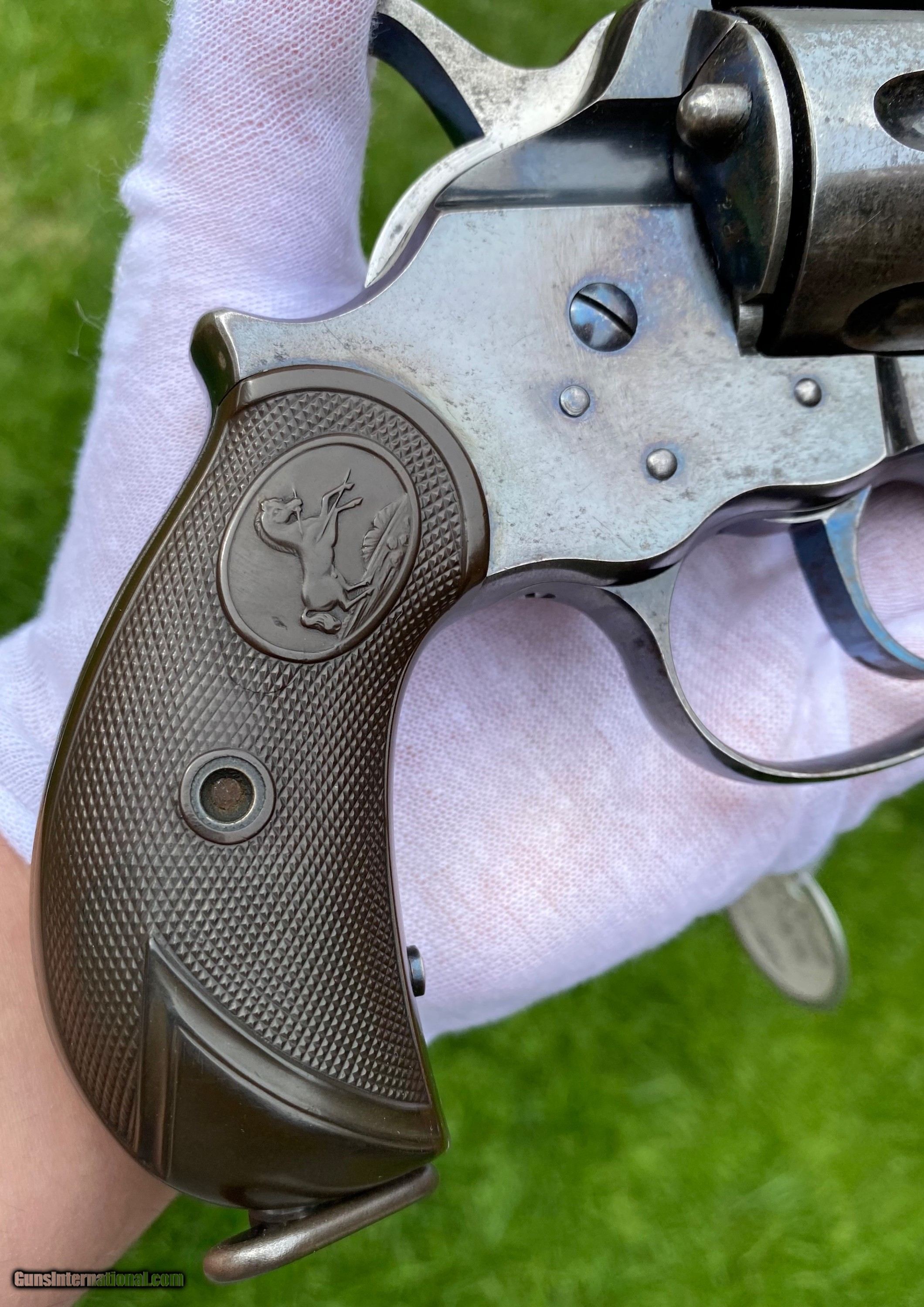 Description: This is an excellent example of the Colt Model 1878 Double Action Revolver, this example is in the caliber .45 Colt. Overall the condition shows 85% original blue. This Colt, the photos truly don't show how nice this gun is. The blue on the cylinder is fading. The backstrap shows a fading blue to patina finish. The trigger still shows nitre blue. The screw heads are excellent and shows original finish. The grips are very fine condition. Mechanically appears to function well in single and double action. The cylinder has some normal side to side wobble as found on these models because of how fragile the internals are. Manufactured in 1891. Shipping is $25 plus actual insurance. Insurance amount can be chosen by the buyer. Thank You! Asking $2,650.00 SOLD SOLD Antique: Yes |