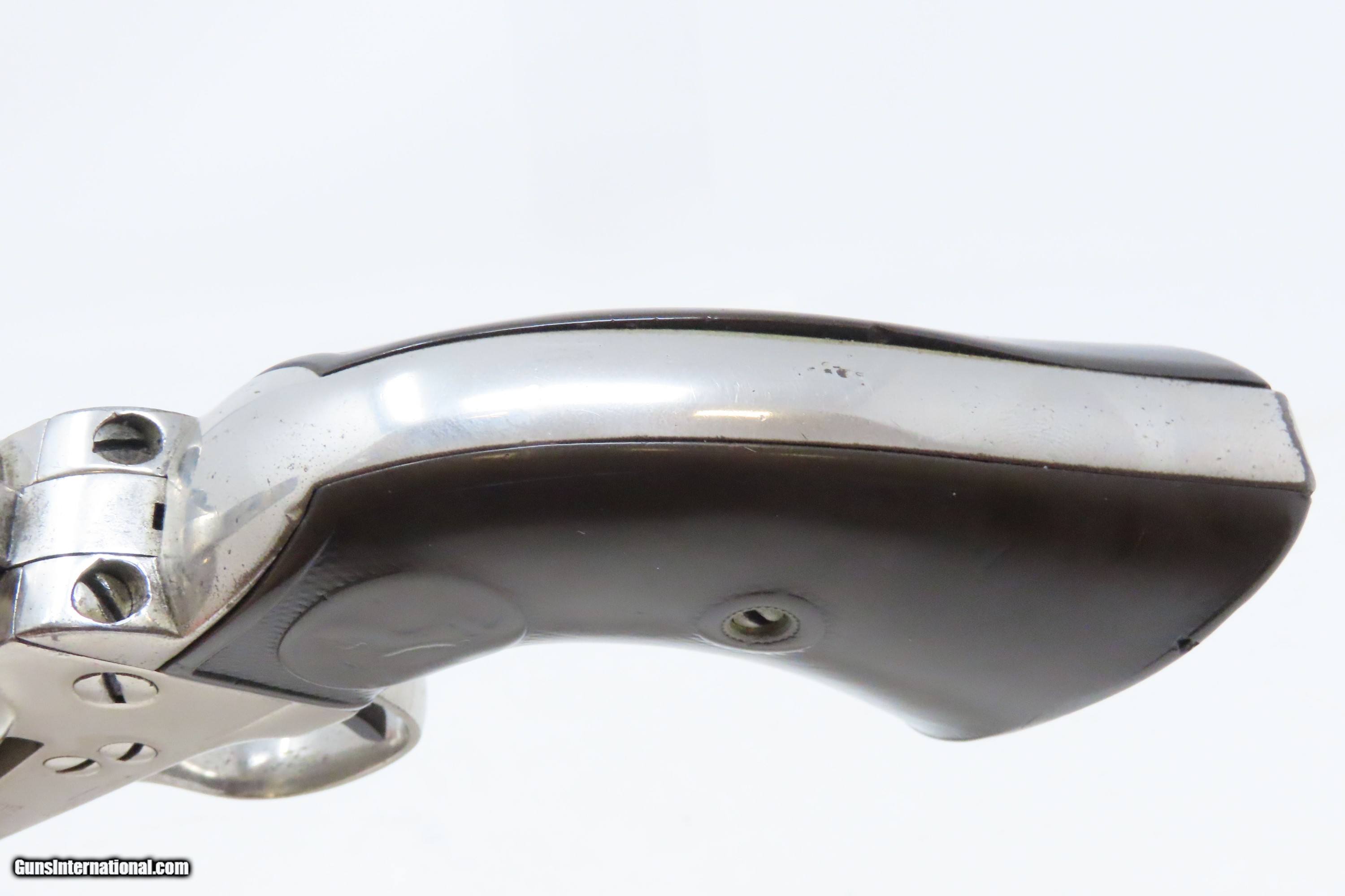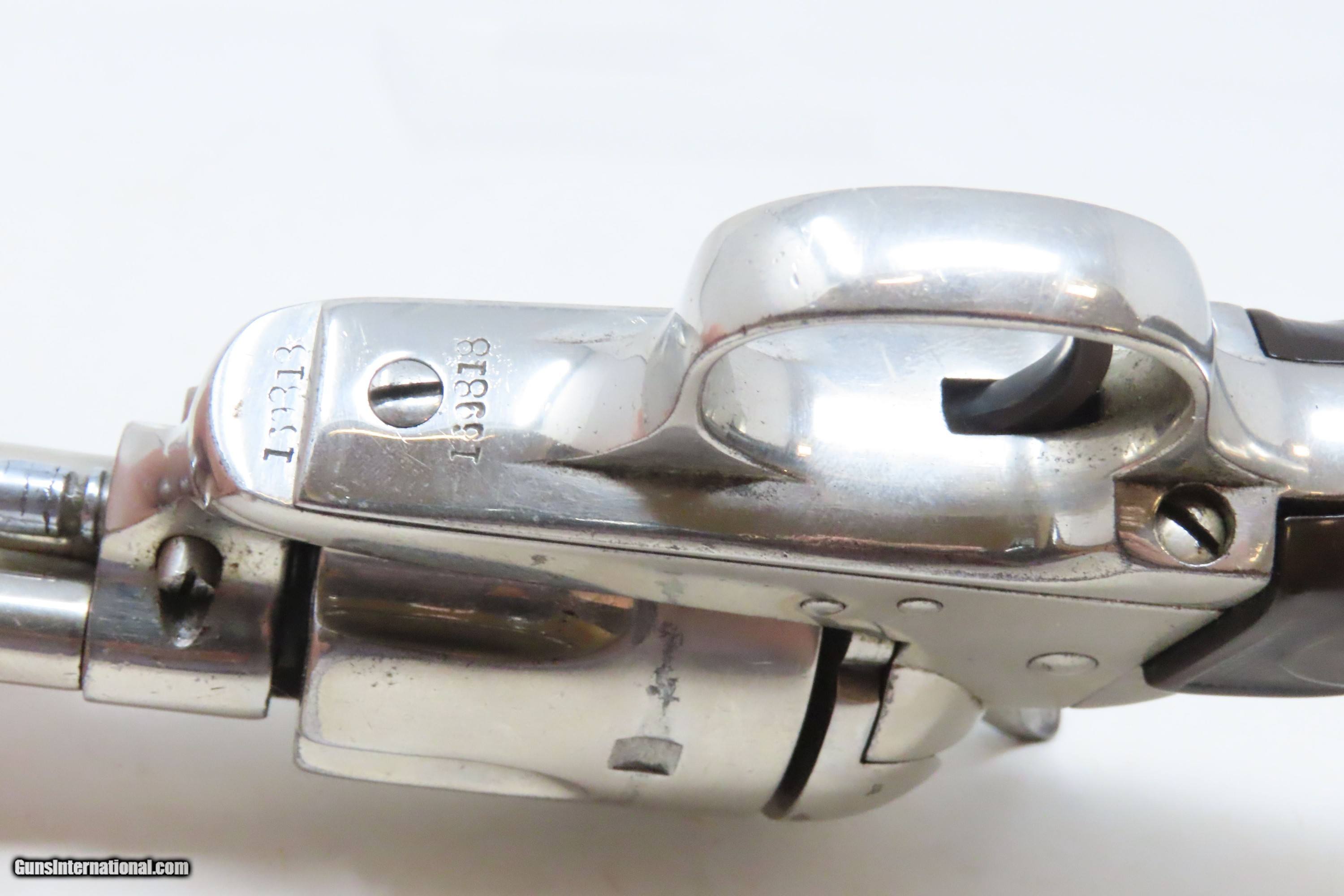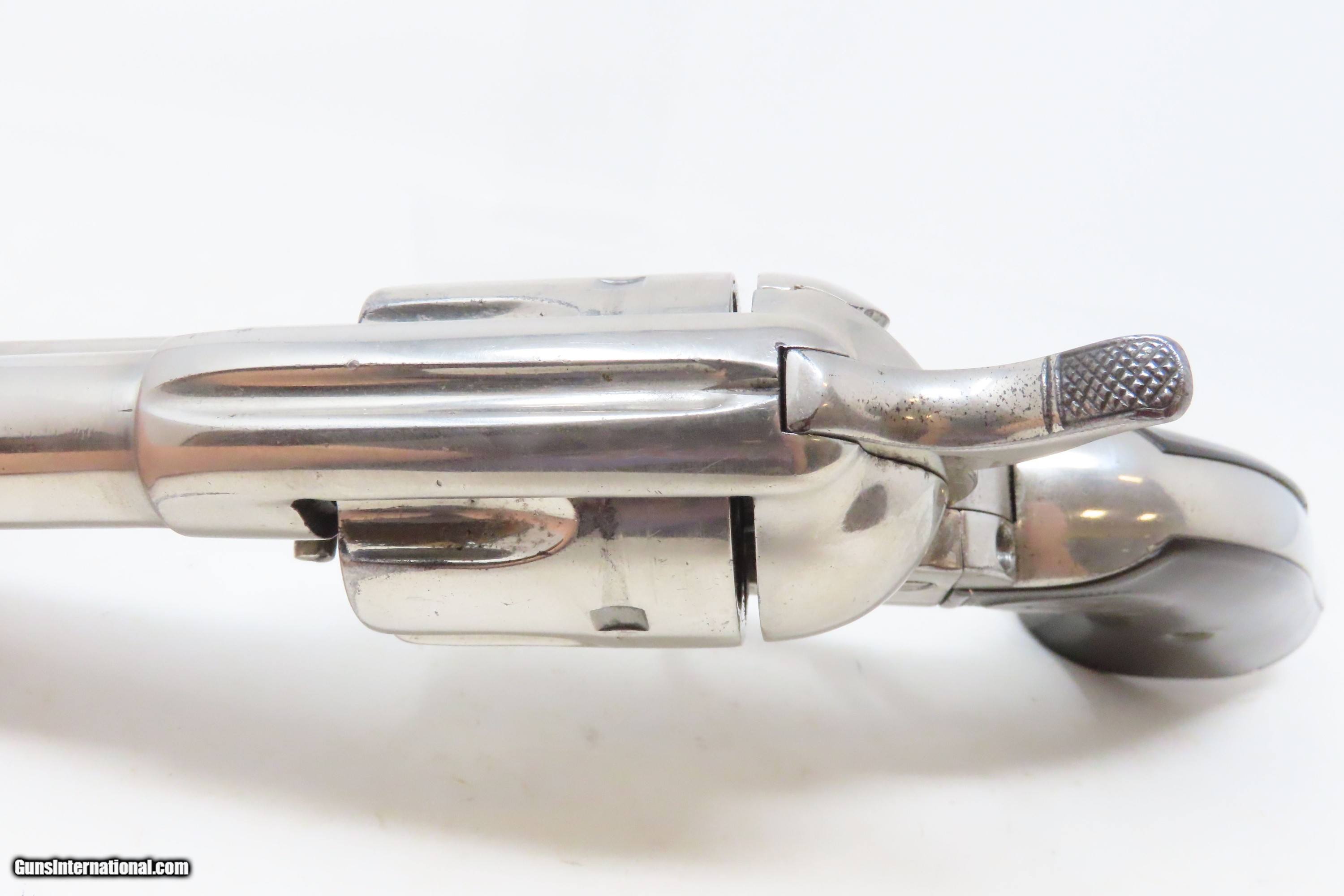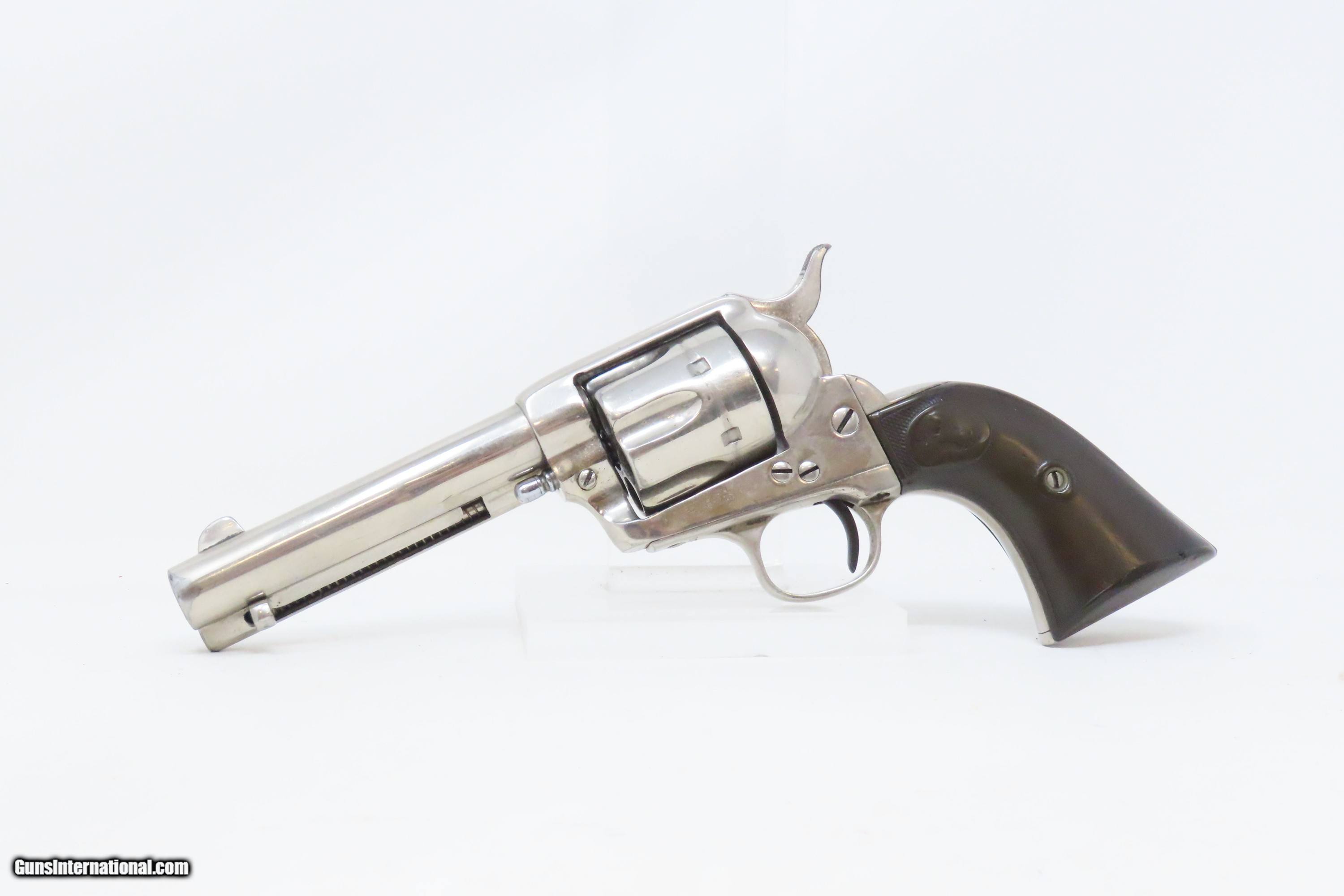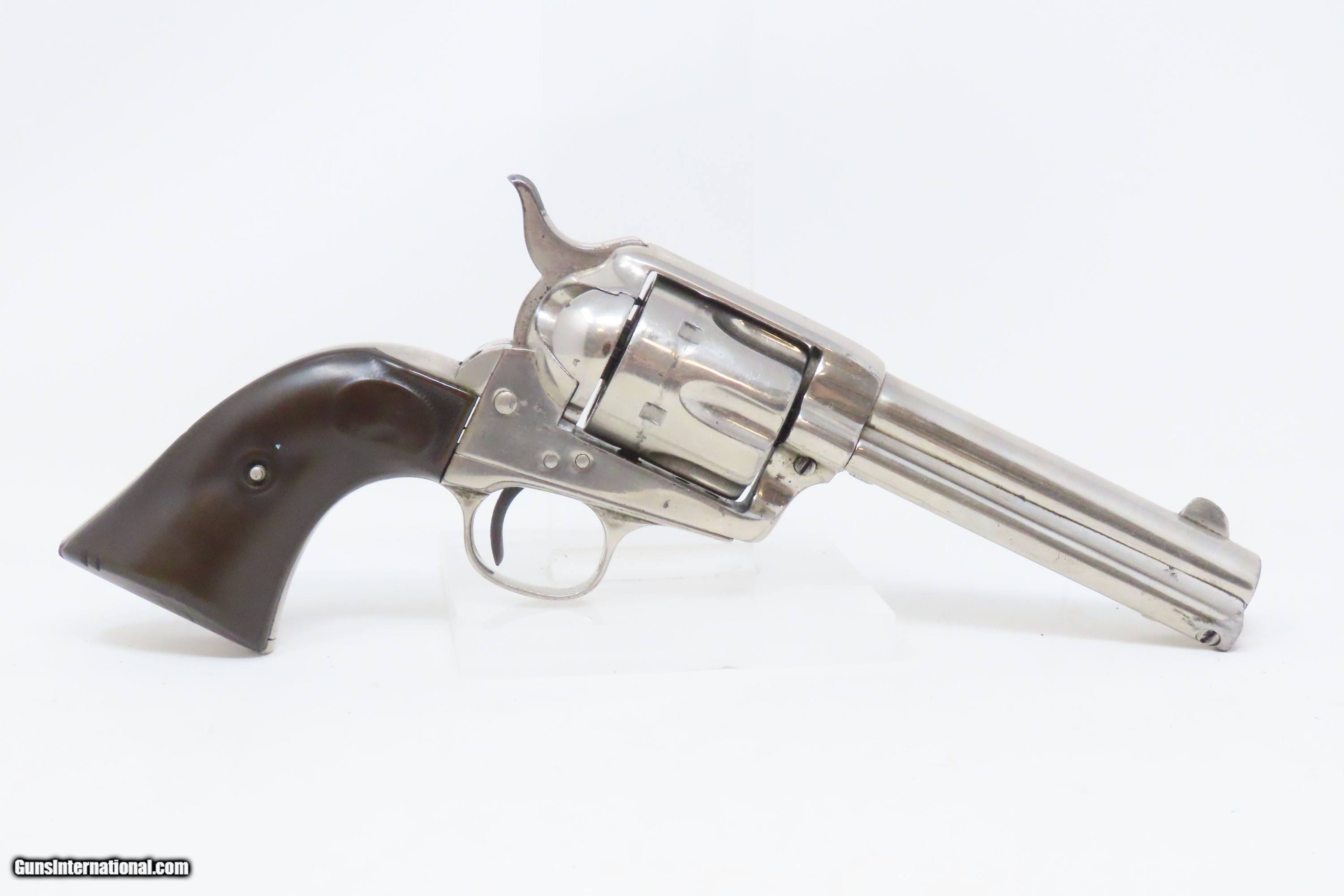 Description: WILD WEST Antique COLT Single Action Army “PEACEMAKER” .44-40 WCF Revolver .44 WCF Colt 6-Shooter Made in 1897 Here we present an antique First Generation Colt Single Action Army Revolver in .44-40 WCF, manufactured in 1897 in Hartford, Connecticut. The Colt “Peacemaker” was introduced in 1873 and has become one of the most iconic firearms in all of history, thanks to its widespread use by the U.S. military, civilians and, more recently, in Western films. Total production numbers for the “First Generation” (c. 1873-1940) Colt Single Action Army reached 357,859. These continued to be relied upon as well as “hot-rodded” by the likes of Elmer Keith, Skeeter Skelton, many other lawmen and gun writers of the time. Calibers, with at least thirty in all, ranged from .22 rimfire through .476 Eley, with approximately half, or 158,884, including Bisley and Flat Top Target, chambered for .45 Colt. The next most popular were the .44-40 Winchester Center Fire (.44 WCF) at 71,392, the 38-40 (.38 WCF) at 50,520, the .32-20 Winchester (.32 WCF) at 43,284, and the .41 Colt at 19,676. Though Colt enjoyed the largest contracts of any handgun maker during the American Civil War, it had to rely on its array of percussion fired revolvers, namely the 1860 Army until the Smith & Wesson owned Rollin White Patent expired in 1869. This enabled them to begin making revolvers with completely bored through cylinder chambers in order to utilize modern metallic cartridge ammunition in the most effective manner. In 1869, Colt began development of a suitable cartridge revolver in earnest, first coming out with a number of conversions for their percussion lines, until 1872 when they debuted what was to become the Colt Model 1873 Single Action Army in the 1872 U.S. Trials. Needless to say, it won, and became the Army’s revolver of choice. It also became the sidearm of choice for many others like cowboys, guards, lawmen, crooks, shopkeepers and all manner of civilians. The overall condition is good+. Refinished in nickel. The action has all four clicks and holds all three positions with excellent indexing and cylinder lock up. The bore is in good condition with strong rifling. Grips are worn but solid. There are two notches cut into the rear of the right panel. Numbers match. Own the original! This is a legitimate antique and not a reproduction. Barrel is 4-3/4 inches. Caliber: .44-40 Winchester Center Fire Overall condition as seen in photos. Very Fast. Very Safe. FREE SHIPPING WORLDWIDE. Delivered directly to your door by express mail! Guaranteed AUTHENTIC & Includes CERTIFICATE OF AUTHENTICITY. ancestryguns $3800 #233843 SOLD Antique: Yes |