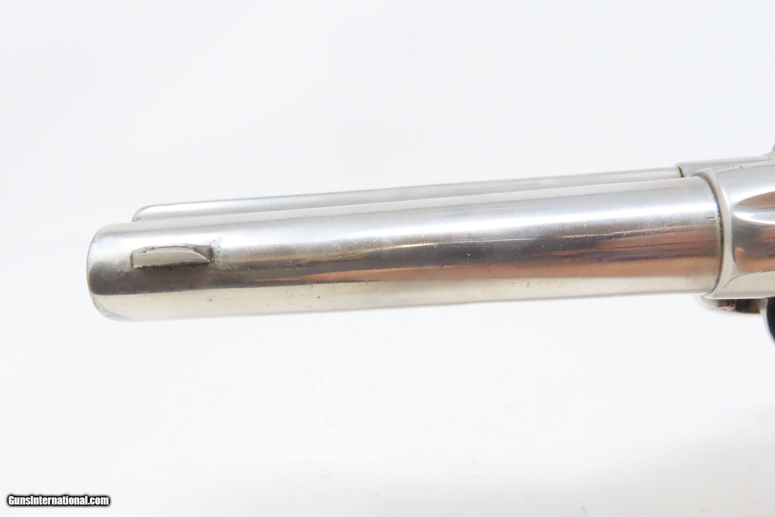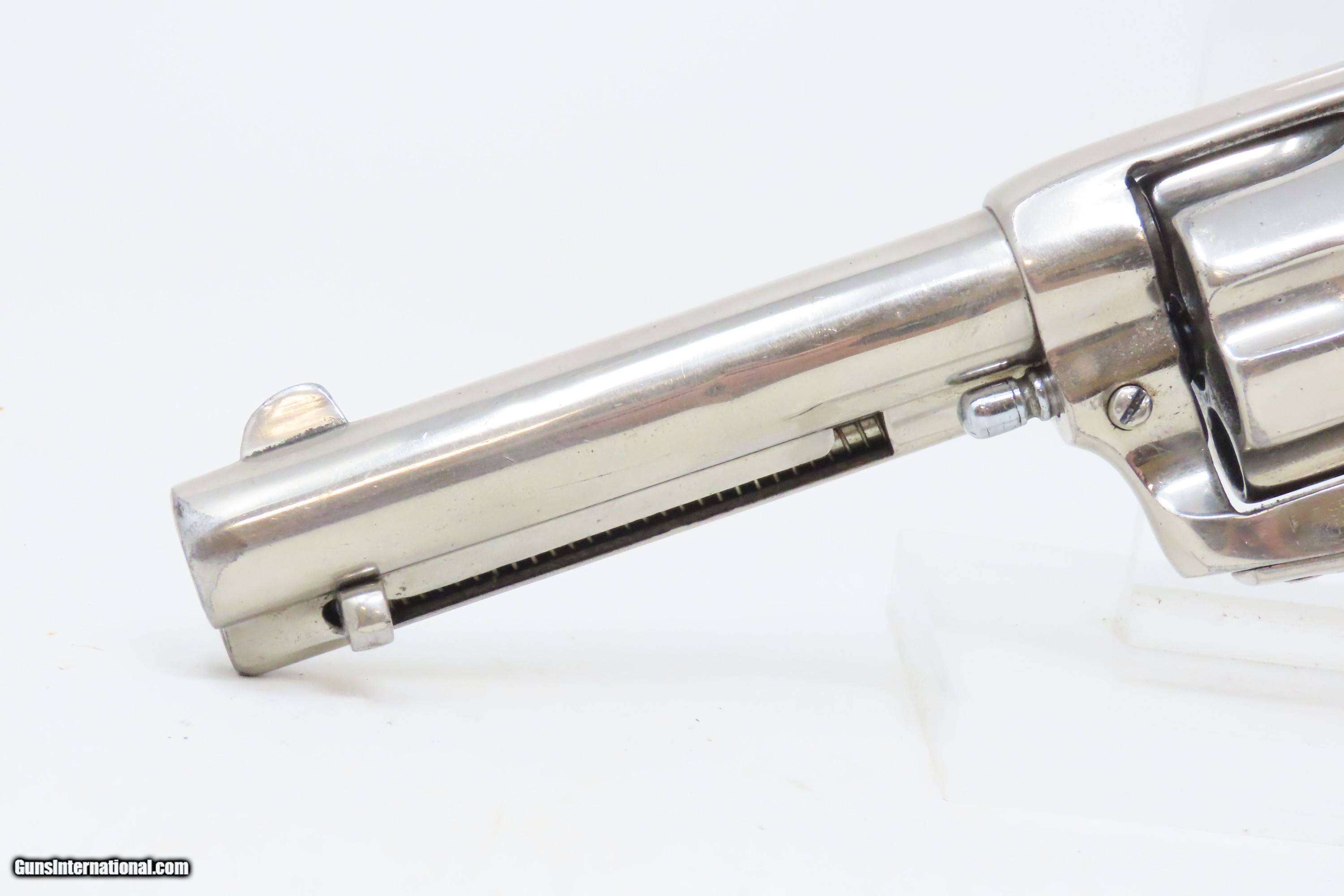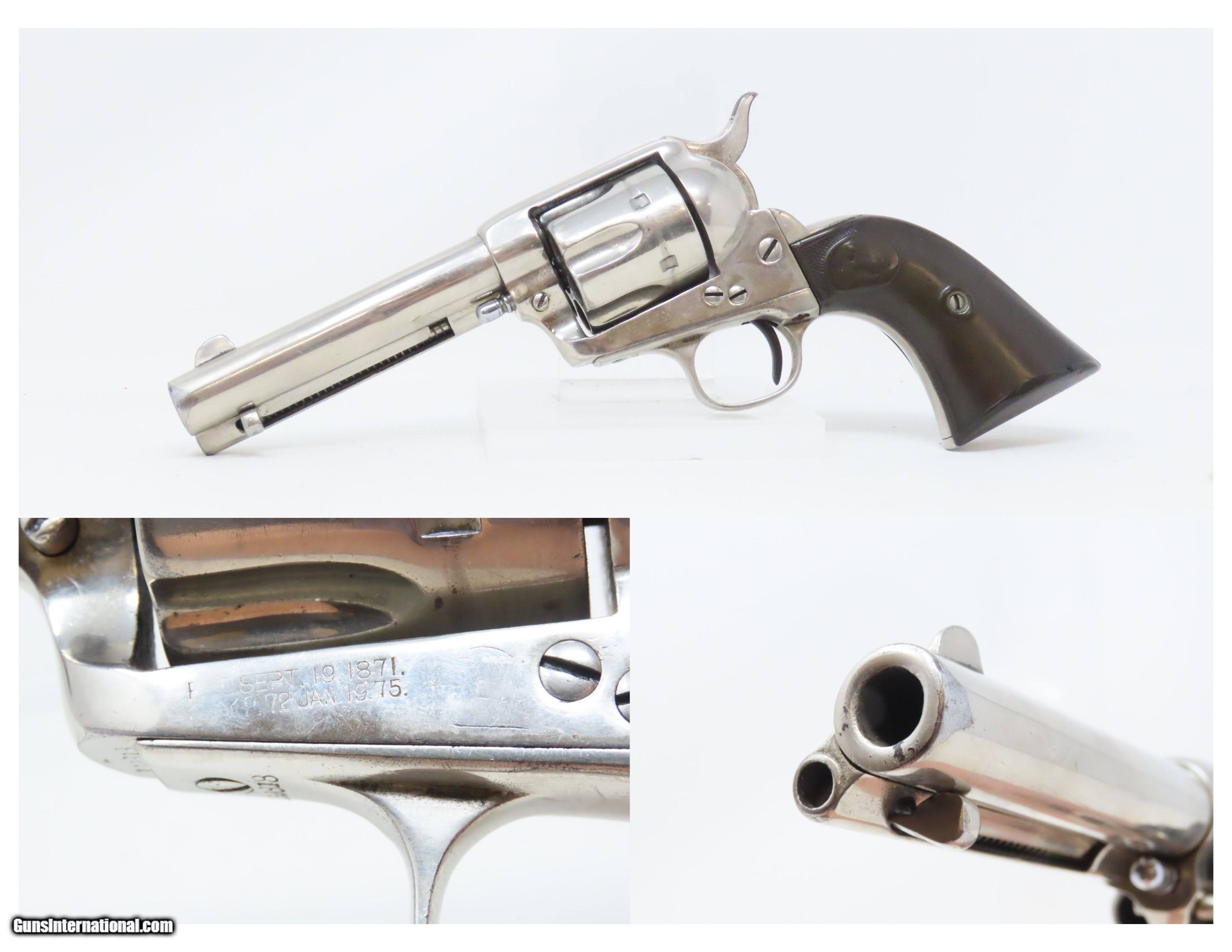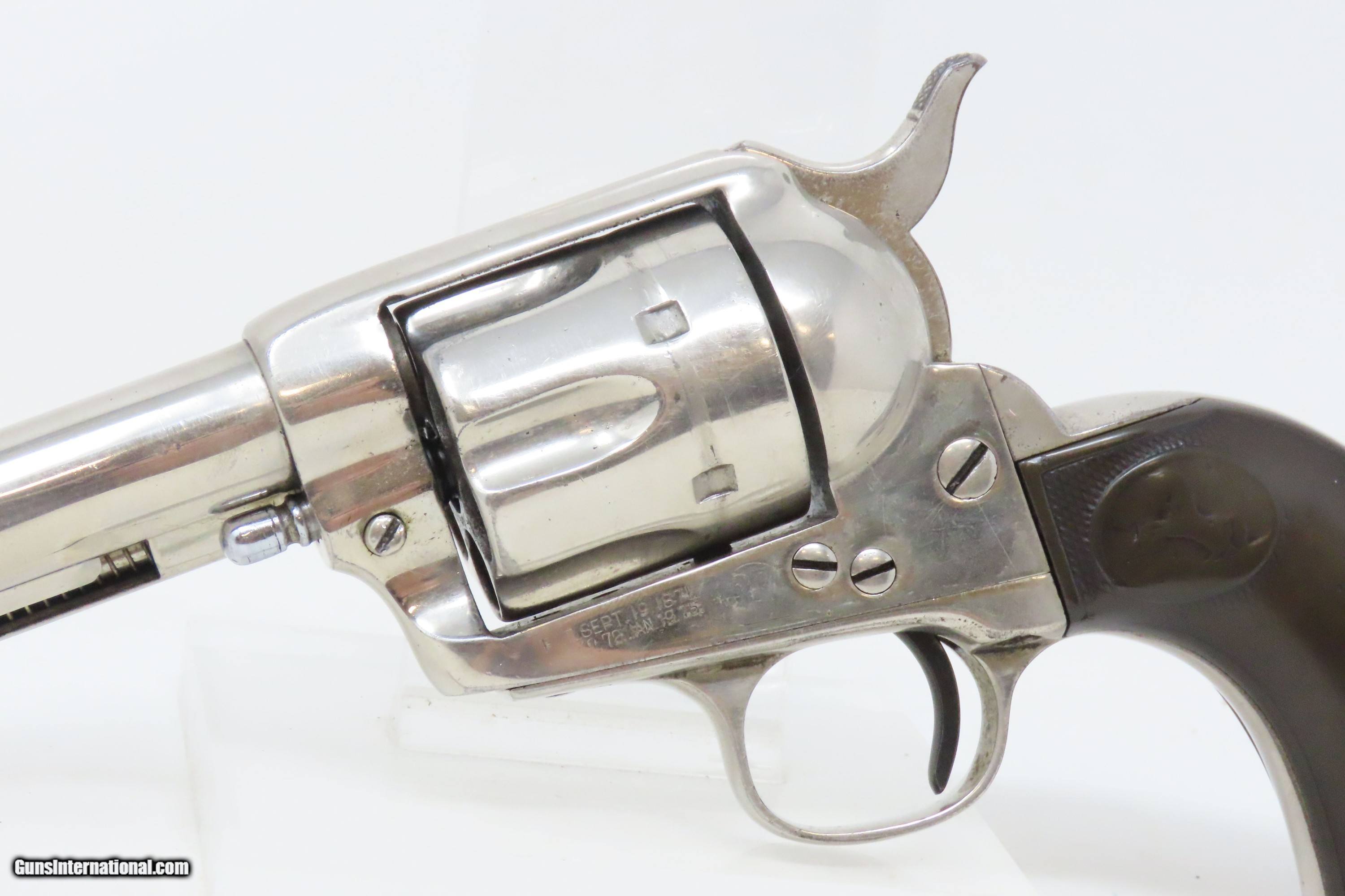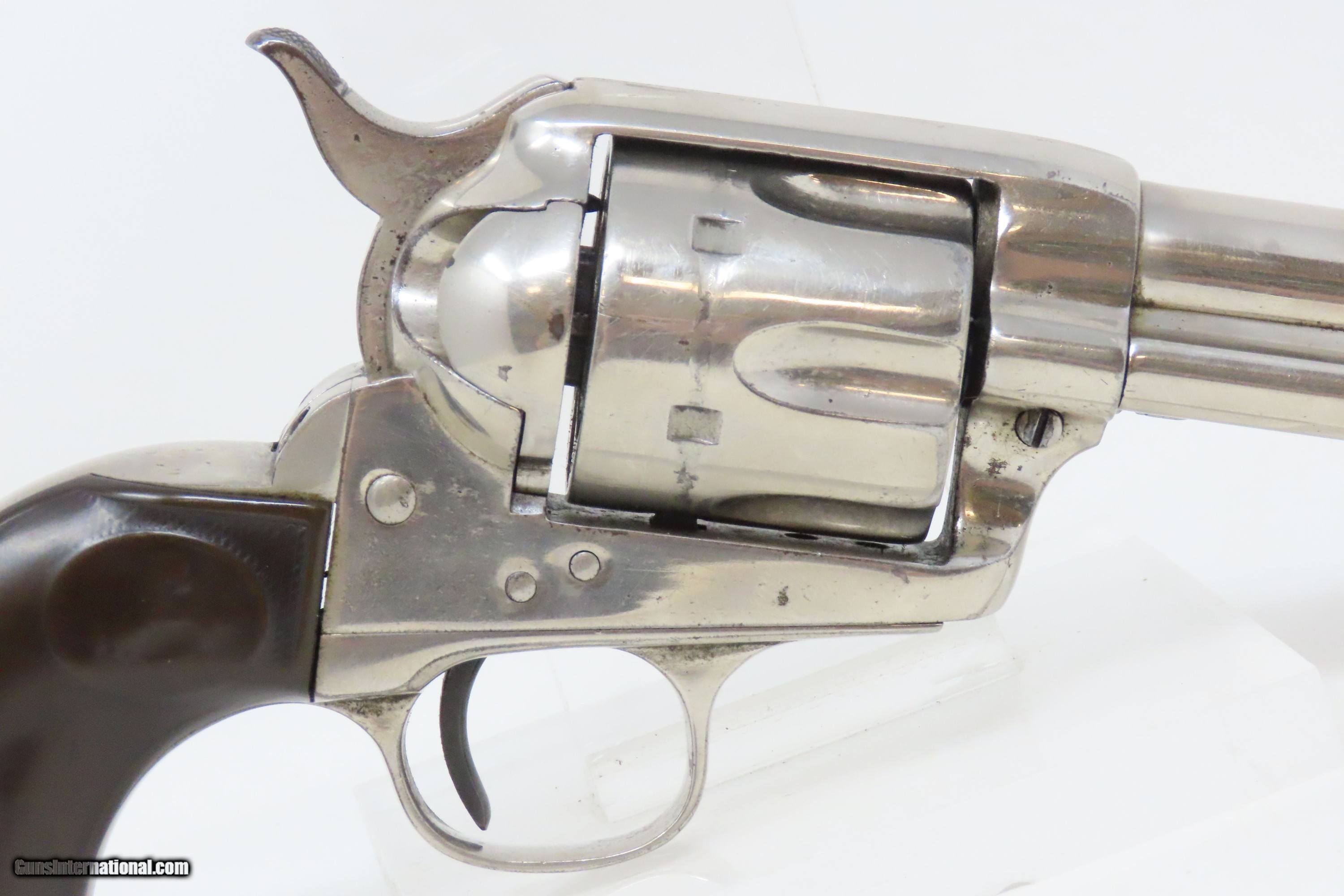 Description: WILD WEST Antique COLT Single Action Army “PEACEMAKER” .44-40 WCF Revolver .44 WCF Colt 6-Shooter Made in 1897 Here we present an antique First Generation Colt Single Action Army Revolver in .44-40 WCF, manufactured in 1897 in Hartford, Connecticut. The Colt “Peacemaker” was introduced in 1873 and has become one of the most iconic firearms in all of history, thanks to its widespread use by the U.S. military, civilians and, more recently, in Western films. Total production numbers for the “First Generation” (c. 1873-1940) Colt Single Action Army reached 357,859. These continued to be relied upon as well as “hot-rodded” by the likes of Elmer Keith, Skeeter Skelton, many other lawmen and gun writers of the time. Calibers, with at least thirty in all, ranged from .22 rimfire through .476 Eley, with approximately half, or 158,884, including Bisley and Flat Top Target, chambered for .45 Colt. The next most popular were the .44-40 Winchester Center Fire (.44 WCF) at 71,392, the 38-40 (.38 WCF) at 50,520, the .32-20 Winchester (.32 WCF) at 43,284, and the .41 Colt at 19,676. Though Colt enjoyed the largest contracts of any handgun maker during the American Civil War, it had to rely on its array of percussion fired revolvers, namely the 1860 Army until the Smith & Wesson owned Rollin White Patent expired in 1869. This enabled them to begin making revolvers with completely bored through cylinder chambers in order to utilize modern metallic cartridge ammunition in the most effective manner. In 1869, Colt began development of a suitable cartridge revolver in earnest, first coming out with a number of conversions for their percussion lines, until 1872 when they debuted what was to become the Colt Model 1873 Single Action Army in the 1872 U.S. Trials. Needless to say, it won, and became the Army’s revolver of choice. It also became the sidearm of choice for many others like cowboys, guards, lawmen, crooks, shopkeepers and all manner of civilians. The overall condition is good+. Refinished in nickel. The action has all four clicks and holds all three positions with excellent indexing and cylinder lock up. The bore is in good condition with strong rifling. Grips are worn but solid. There are two notches cut into the rear of the right panel. Numbers match. Own the original! This is a legitimate antique and not a reproduction. Barrel is 4-3/4 inches. Caliber: .44-40 Winchester Center Fire Overall condition as seen in photos. Very Fast. Very Safe. FREE SHIPPING WORLDWIDE. Delivered directly to your door by express mail! Guaranteed AUTHENTIC & Includes CERTIFICATE OF AUTHENTICITY. ancestryguns $3800 #233843 SOLD Antique: Yes |