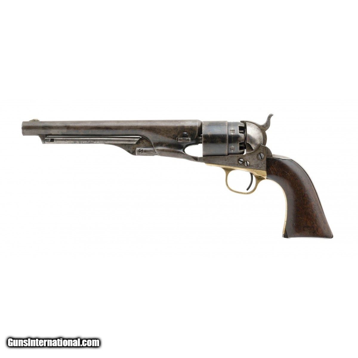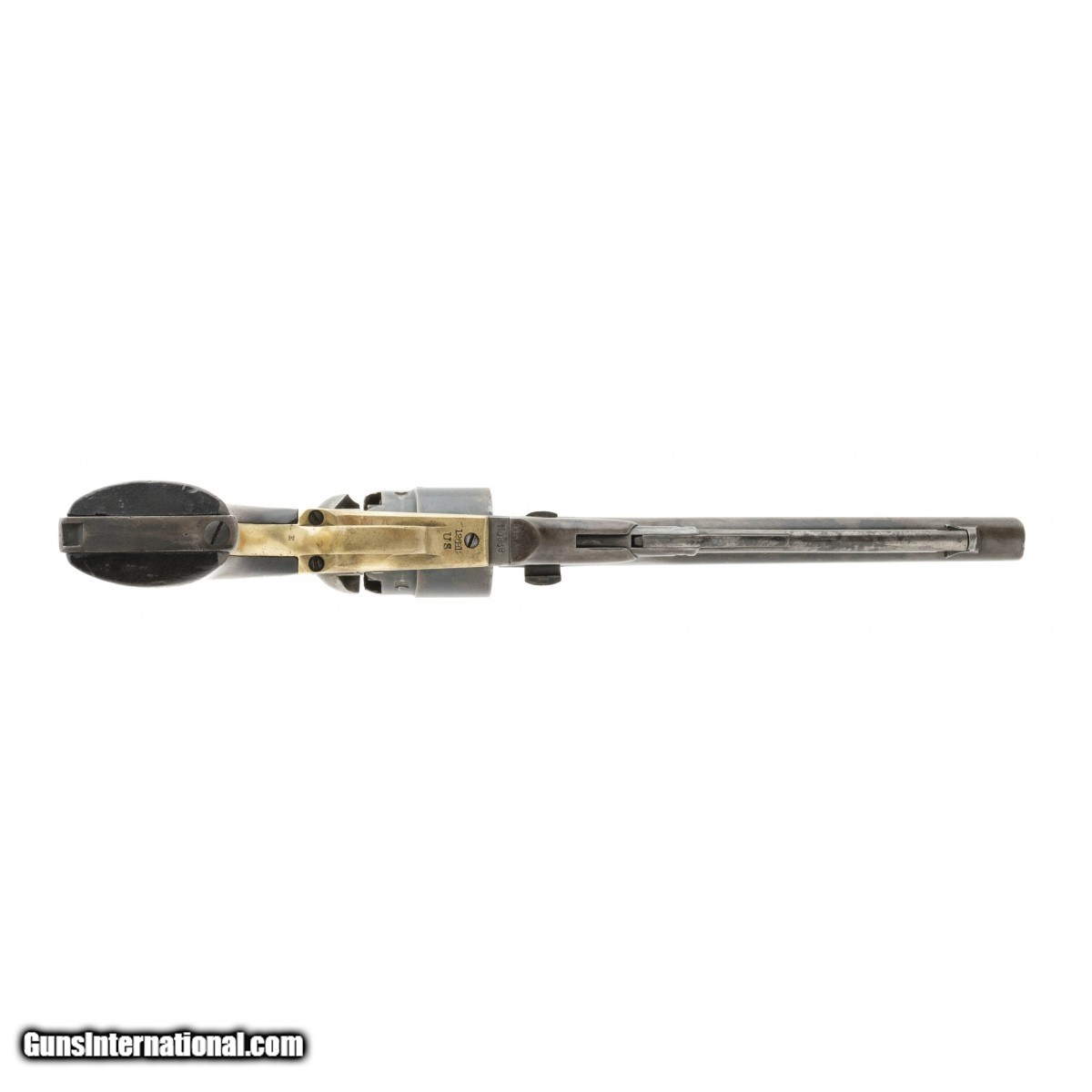 Description: " SN: 110868. Re-issued after the Civil War for service during the Indian Wars. They were often supplied to the Buffalo Soldiers. This revolver has the U.S. forward the trigger guard. The bore is very good and the grips have most of their varnish. The action works perfectly. The side of the muzzle is rounding off due to holster wear. SOLD Antique: Yes |