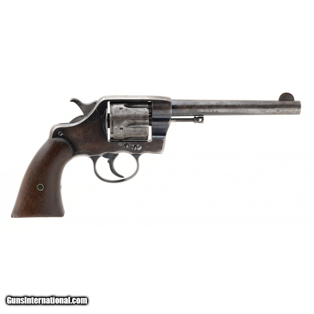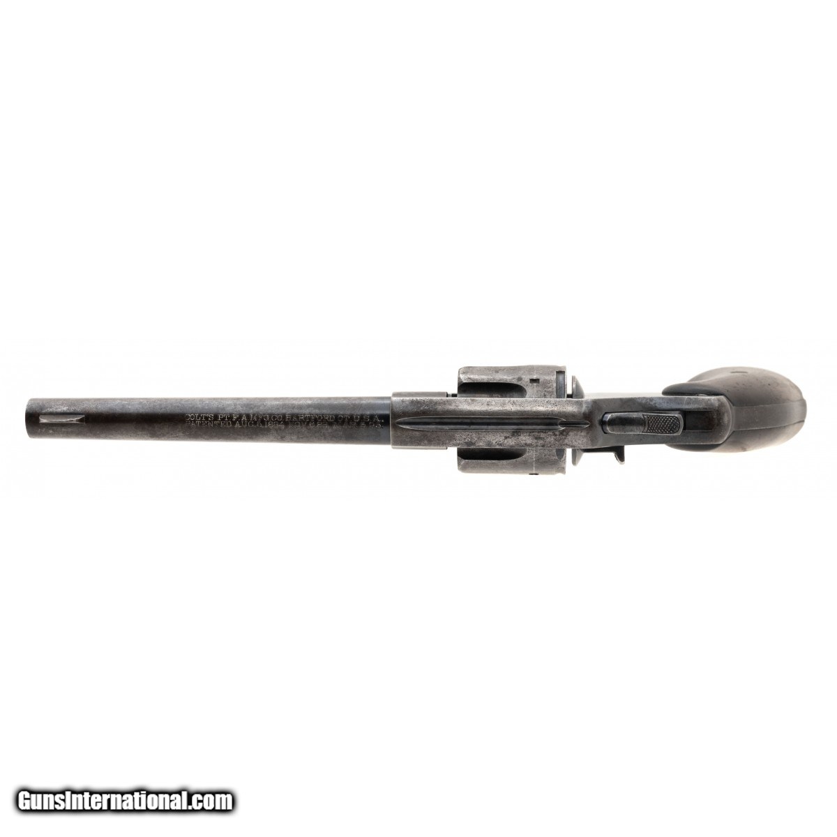Description: " SN:2672. Made in 1895. .38 LC cal. with 6"" barrel. Bore is very good. US military revolver with 40% original blue mixed with patina. Has inspector markings. Original wood grips are very good with visible cartouche. Overall good condition. SOLD Antique: Yes |
