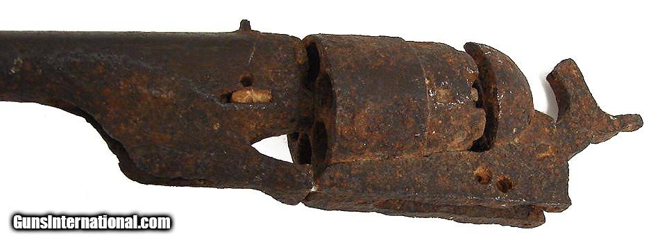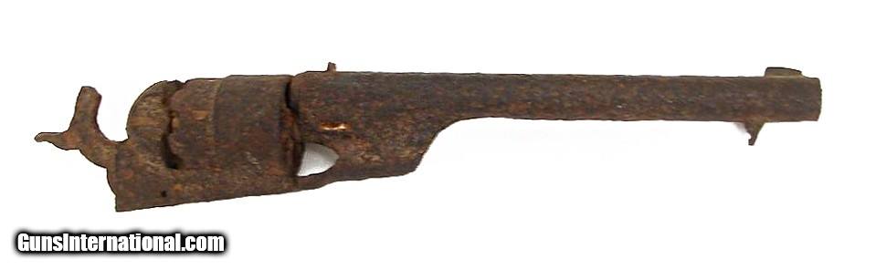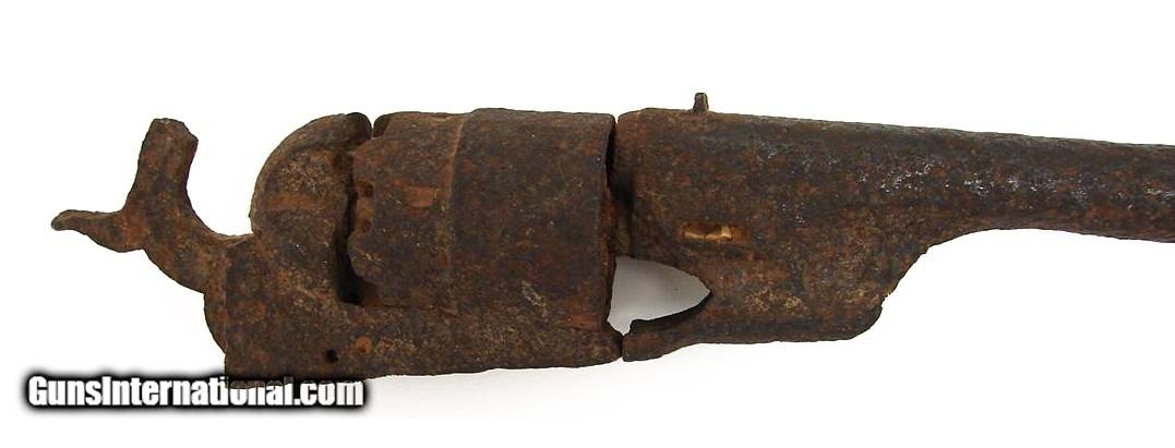 Description: "Relic Colt 1860 Army revolver. The hammer is frozen and no parts on this gun move. It has a great appearance.These ""Relic"" guns are a collecting field in themselves. If you want to start a really neat collection, start by looking for them at gun shows or junk shops and let dealers and fellow collectors know you are collecting them. If the seller knows where it was excavated or any history, get him to write a detailed letter and keep it with the gun! The owner of Collectors Firearms has a collection of guns similar to this example. SOLD Antique: Yes |