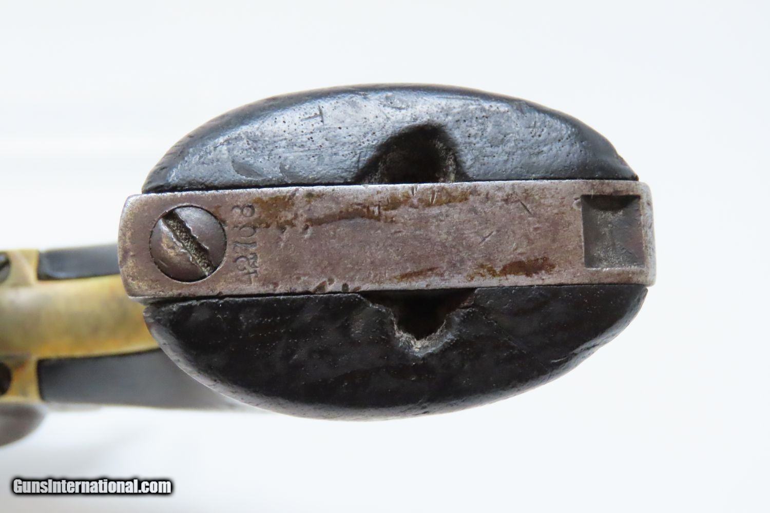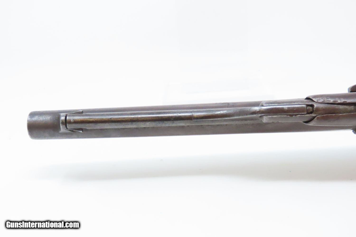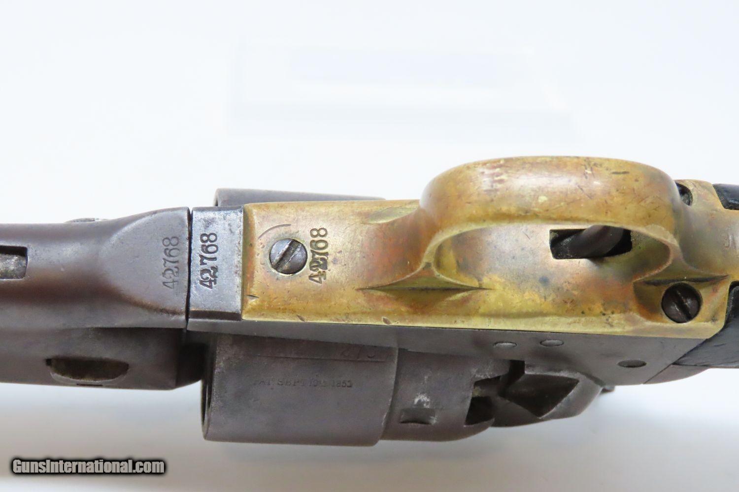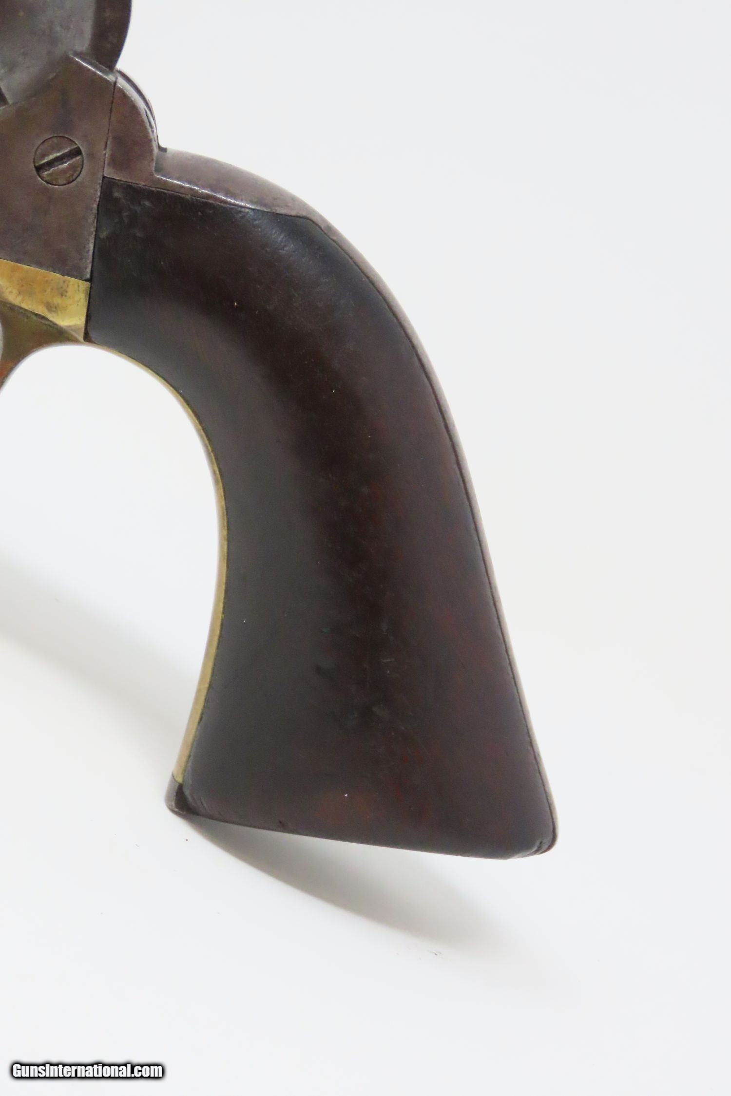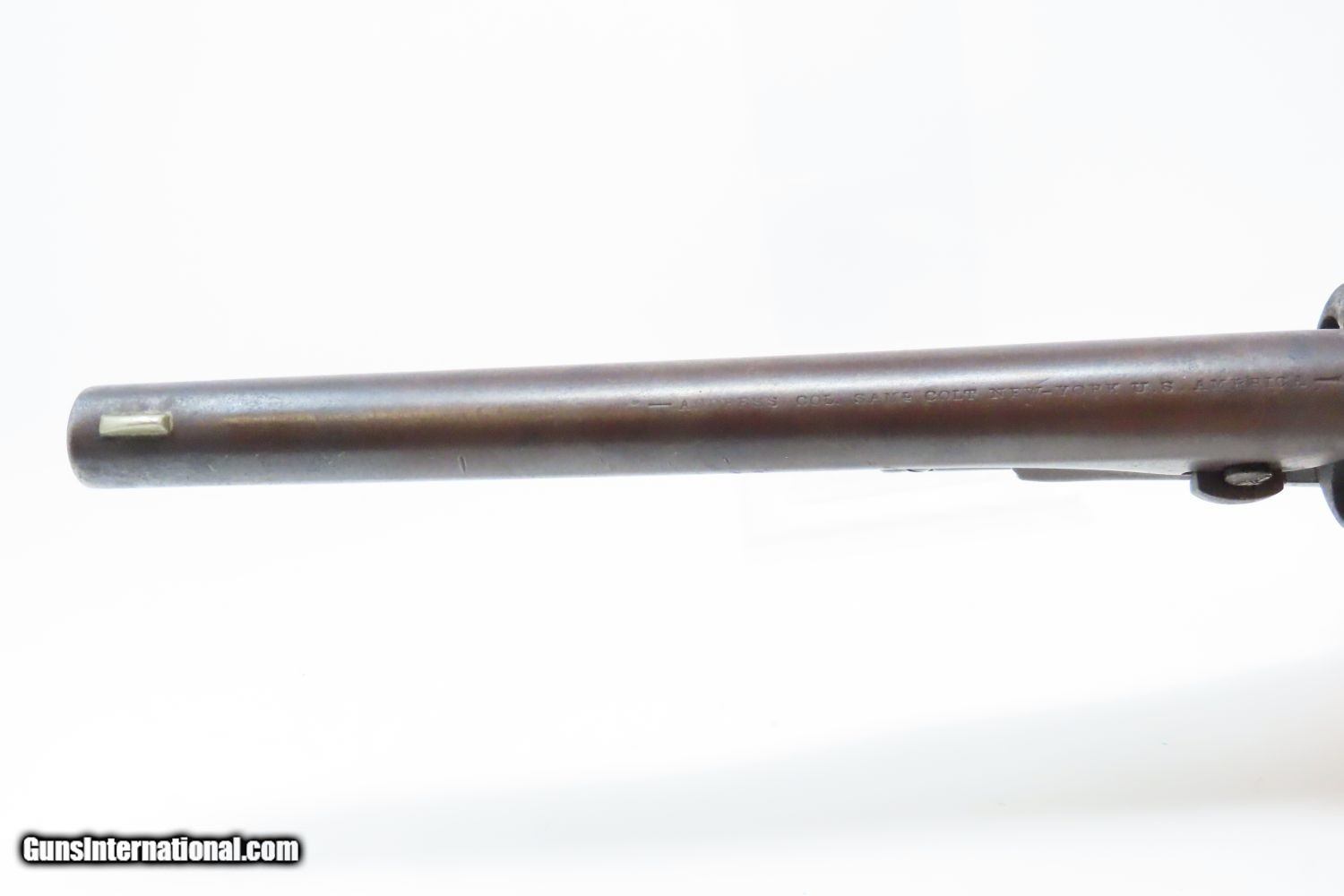 Description: 1862 mfr. CIVIL WAR COLT Model 1860 ARMY .44 Caliber Percussion REVOLVER Iconic Revolver Used Beyond the Civil War into the WILD WEST! Here we present an antique Colt U.S. Model 1860 Army Percussion Revolver, made in 1862 in Hartford, Connecticut. The 1860 Army was the single most used pistol of the American Civil War. Over 200,000 were made from 1860 to 1873, and 156,000 of those were made by the end of the war in 1865. These were excellent sidearms for officers, cavalry, infantry, and artillery troops. The 1860 Army was Samuel Colt’s finest achievement to that point, having finally developed a large caliber revolver that weighed about 2 lbs. 10 oz. to the famous Dragoon’s 4 lbs. 4 oz., and was adopted en masse by the U.S. government with huge contracts. The revolver was well balanced in hand and had a long enough barrel to be effective when utilized as a carbine with the attachable shoulder stock. This revolver represented unprecedented firepower from a handgun in the field at the time and was especially suited to Cavalry. The Confederacy, lacking in manufacturing capabilities though they were, managed to produce limited numbers of copies, and battlefield pickups of the 1860 Army were highly coveted. The 1860 Army went on to serve the U.S. military even after the Civil War and into the Indian Wars, until production of Colt’s 1873 Single Action Army created new waves in the revolver market, and again achieved great success in the military and commercial markets. The overall condition is very good. Smooth, even, brown patina. Strong and tight action. Nice bore with clear rifling. The grip is in good shape with expected wear. The bottom of the grip was carved out on either side for use with a lanyard, something that would prevent the loss of the gun while on a horse. Numbers match. A Colt 1860 Army Revolver from 1862 in “attic” condition! Own the original! This is a legitimate antique and not a reproduction. Barrel is 8 inches. Caliber: .44 Percussion Overall condition as seen in photos. Very Fast. Very Safe. FREE SHIPPING WORLDWIDE. Delivered directly to your door by express mail! Guaranteed AUTHENTIC & Includes CERTIFICATE OF AUTHENTICITY. ancestryguns $3465 #210569 SOLD Antique: Yes |