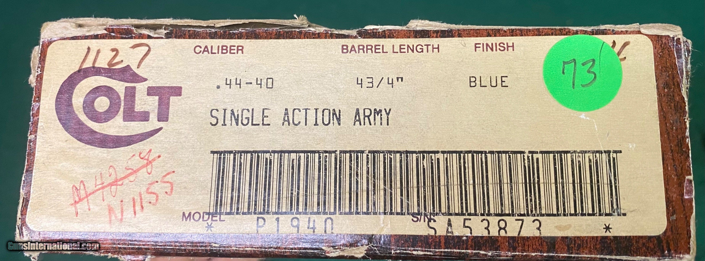 3rd Gen Single Action Army 44-40 w/4 3/4” bbl Mfg 1981