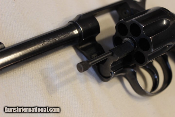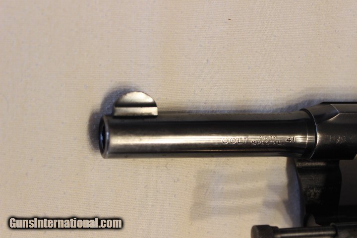 Description: Colt Army Special in scarce caliber, Excellent condition, tight lock-up, bright exc. bore, 4" barrel, nearly unfired, light holster wear, 90%+ original finish SOLD Curio/Relic: Yes |
