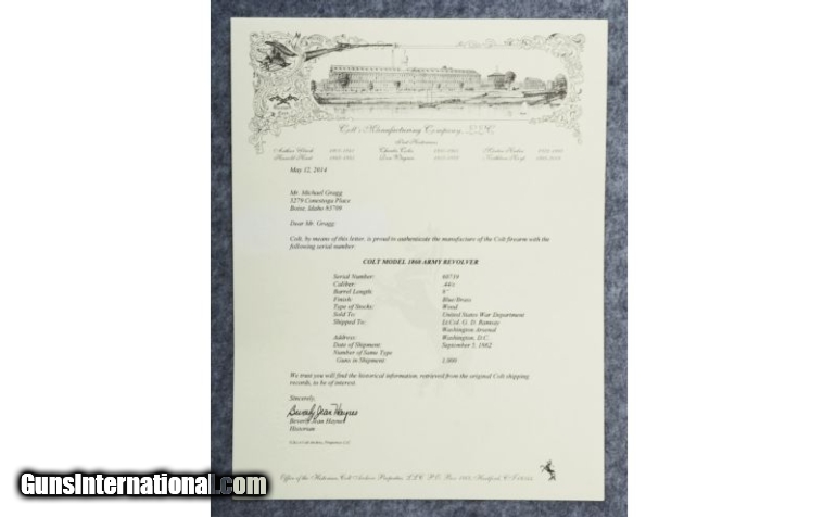 Colt 1860 Army "Civil War Production" +Colt Letter .44 BP