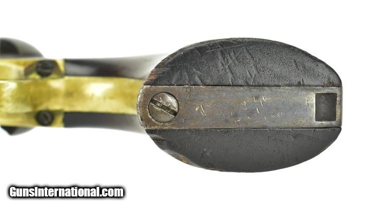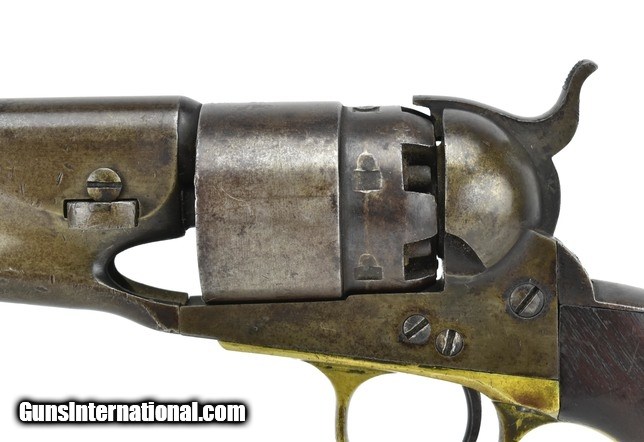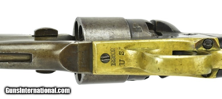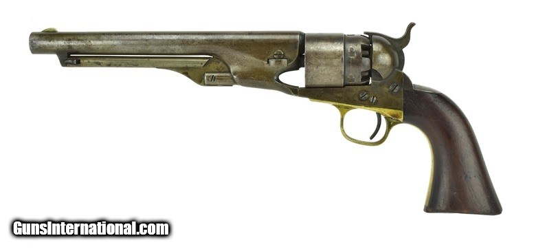Description: Colt 1860 Army U.S. Marked Revolver. This is one of the guns that was refurbished after the Civil War. The guns were taken apart, finished and then reassemble with no attempt to put the guns back together matching. These guns were issued to the Buffalo soldier as cartridge guns were coming in and the Buffalo soldier always received hand me downs. Very nice gun with good history. Trigger guard is marked “U.S.” This is a very sharp example. Most of these guns were used quite hard. The metal has a light brown to gray patina. The cylinder scenes were removed in the refurbishing process, but they preserved the patent dates. Grips are very good. Action works well and locks up tight! Good opportunity to find a Buffalo soldier Colt Army! SOLD Antique: Yes |