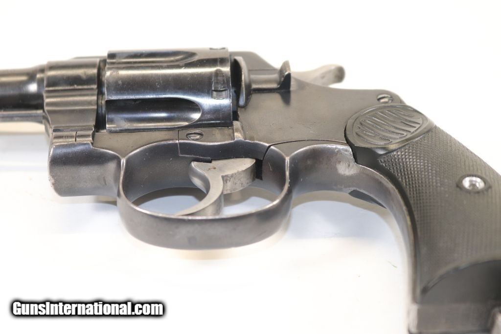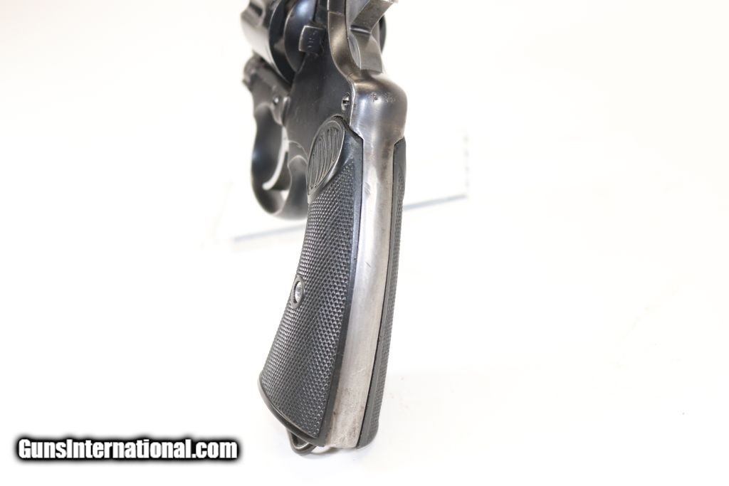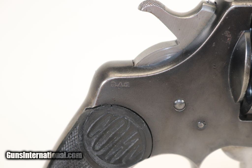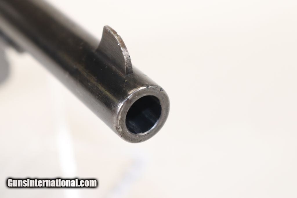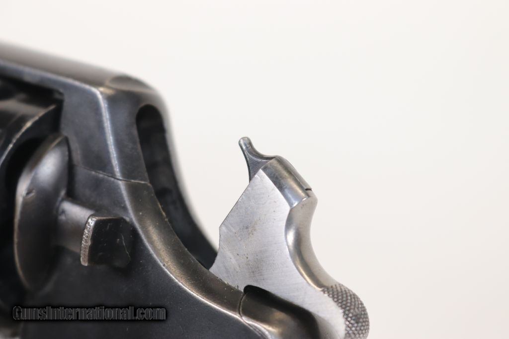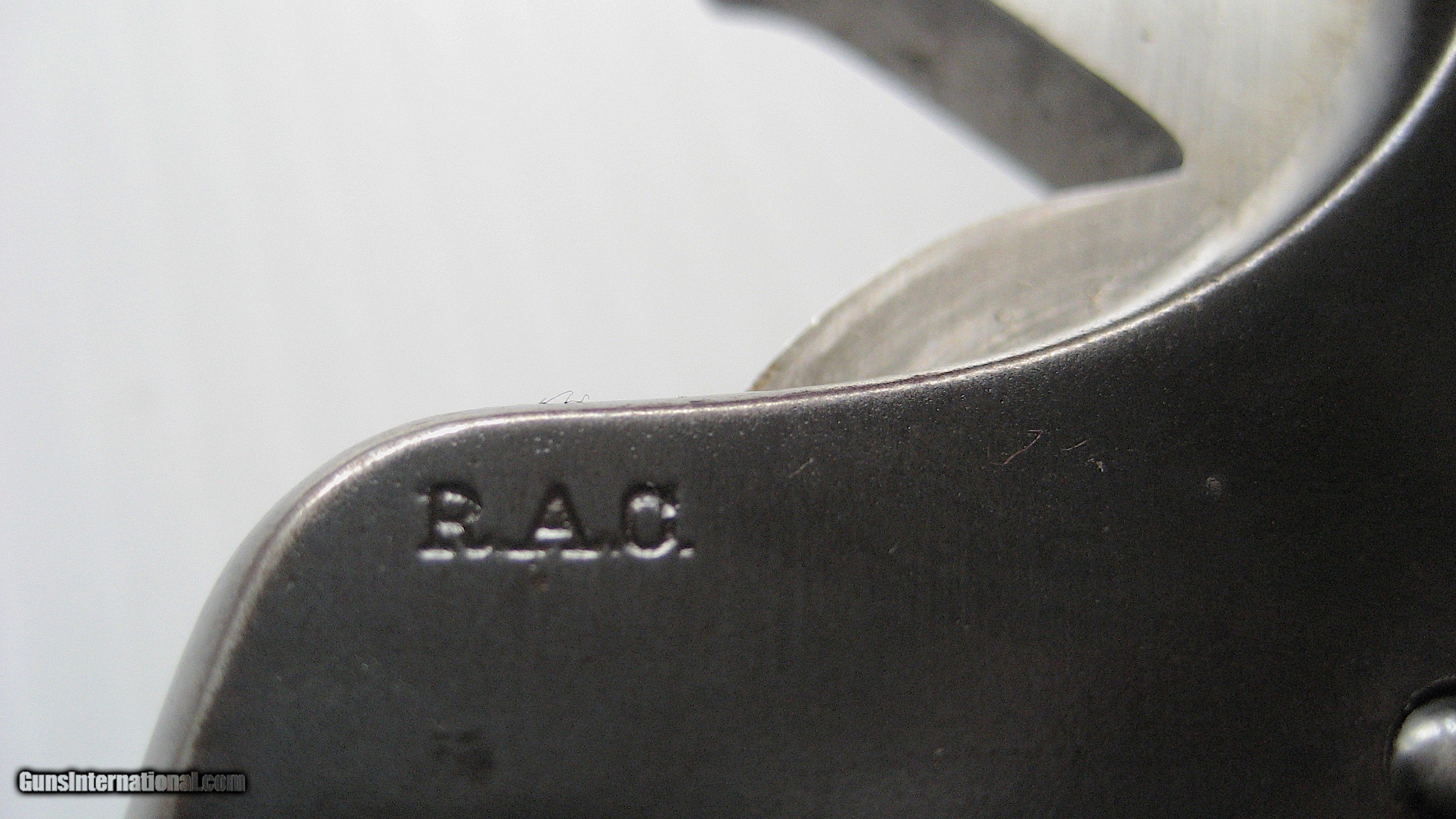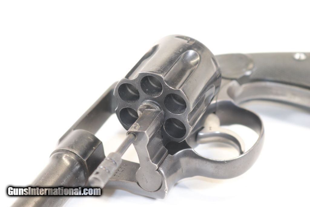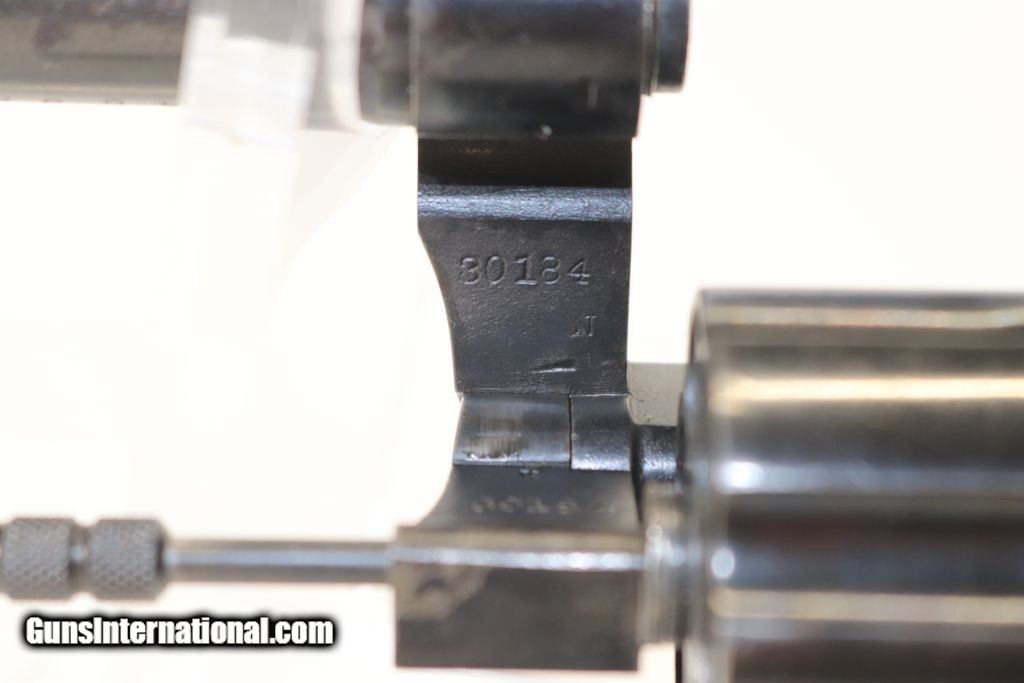 Description: Colt 1909 .45 Colt Revolver - 1910 Philippines Shipment to update military sidearms from .38 to .45 caliber. Marked on grip butt US Army Model 1909 No 30184. Marked by inspector RAC. 30184 also on frame and cylinder swing out arm. Very Rare. The Philippine Moro Rebellion after the Spanish American War demonstrated the fact that the .38 Colt was an unsatisfactory man stopper. The Moros would take a cylinder of .38 Colt’s and keep on coming. With the result that many American soldiers were either seriously wounded or killed by the Moro’s knives. The Army replaced the .38’s with .45’s. One of the .45 ACP’s standard 230 grain “balls” at 855 feet per second and 405 foot pounds of muzzle energy often did what six of the .38 Colt’s bullets could not do. Stop a charging Moro cold. The War Department placed initial orders for 6000 New Service revolvers Caliber .45, on December, 17 1908. They were officially designated as" Colt's Double-Action Revolver, Caliber .45, Model of 1909". The marking "U.S. ARMY MODEL 1909, No (Serial Number)" The serial number marked on the butt was the same number as was stamped under the crane on the receiver as well as on the crane. The cylinder latch was marked on the rear with the last 4 digits of the serial number. The stocks were hand numbered inside as well as marked on the butt with the inspectors initials "RAC" (Renaldo A. Carr.) The right side of the receiver was also marked with the initials of the inspector as well as with those of the "Army Inspector of Ordnance". Additional orders were placed in 1910 and 1911 for a grand total of 19,503 pistols. The pistols were serial numbered from 30001 through 49503. Bore very lightly frosted and still very strong. Grpps generally good with some wear near uper edge. Comes with padded Pistol Case. SOLD Curio/Relic: Yes Handgun Caliber: .45 ACP (.45 Auto) Manufacturer: Colt Model: 1909 New Service Serial Number: 30184 Barrel Length: 5 Condition: Very Good Metal Condition: Very Good Bore Condition: Very Good Action: Revolver Manufacture Date: 1911 |