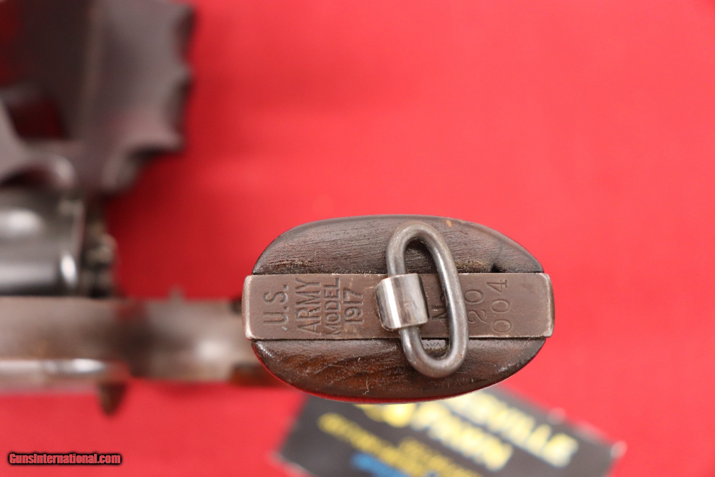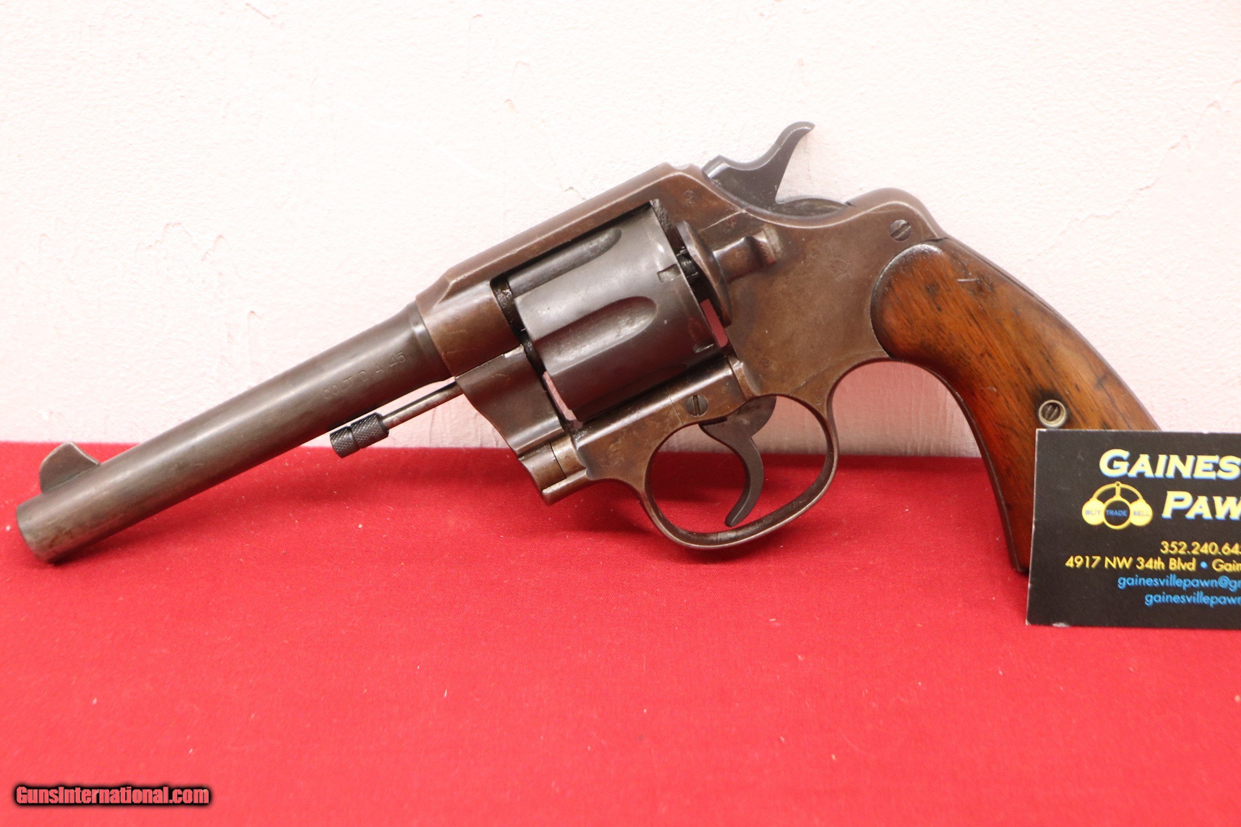 Description: Another great item from Gainesville Pawn! Up for sale is Colt 1917. United States Property Revolver, .45 ACP caliber (uses moon clips). During WW 1 the military was in dire need of hand guns. Colt could produce 1911 pistols fast enough. Colt adapted the 1909 to shoot .45 ACP with moon clips. This became the model 1917. This gun is mostly brown but in excellent mechanical shape. Made in 1919 possible that it saw service in WW 2. All proper proofs exist on the metal. Bore a little dark but good rifling. ( New Service frame )*Please be aware that all items are sold “AS IS”. Ask questions BEFORE placing a bid. Feel free to call us at our store (352) 240-6452 or email us at Gainesvillepawngmail with ANY questions. We do not accept trades or offers through through Guns International We only entertain trades and offers through our store. $35 shipping and handling. Insurance extra. We only accept USPS money orders and major credit cards for payment. 3% convenience fee for credit cards. WE collect Florida state sales tax for in state sales. Please be aware that this item is for sale in our store as well as the occasional gun show so it may be sold there at any time. We will not ship the item until you have your dealer/receiving store email us a signed copy of their FFL to gainesvillepawngmail. SOLD Curio/Relic: Yes Handgun Caliber: .45 ACP (.45 Auto) Manufacturer: Colt Model: 1917 Barrel Length: 1714xx Condition: good Metal Condition: brown Wood Condition: good Bore Condition: good |