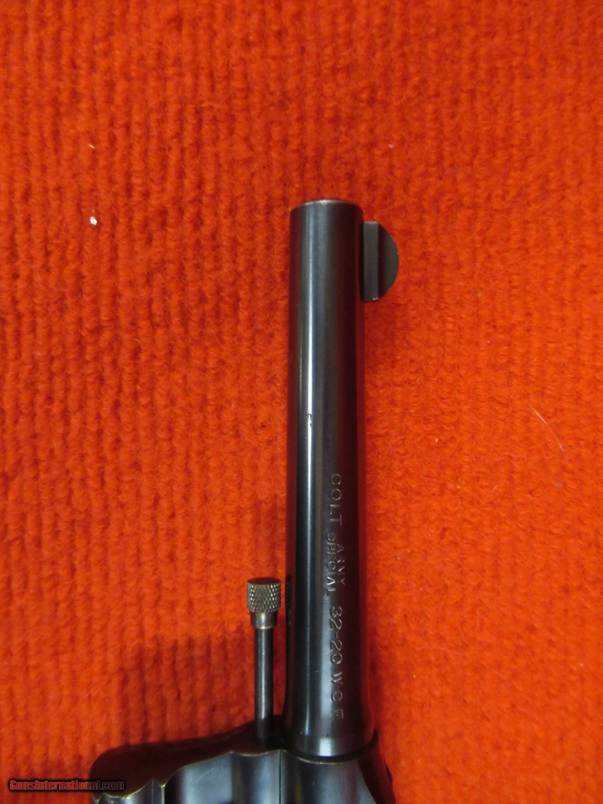 Description: Guns Listing ID: 707163 #896A Gun is in excellent condition. Gun manufactured in 1926. Gun is 90%+. There is a tiny spot on the left side of the frame where some pitting has begun and a tiny spot on the barrel, 95% of the bluing is still intact, no blemishes in the grip. Gun is still very tight, probably hasn‚‚t been shot very much. This gun is in excellent shape for being 97 years old. Great show piece for any Colt collector. Excellent condition and a great piece of history. && SOLD Manufacturer: COLT Model: Army Special (1926) Caliber Info: .32-20 WIN Condition: Used - Non-Certified Barrels: 5 BARREL Finish: BLUED |