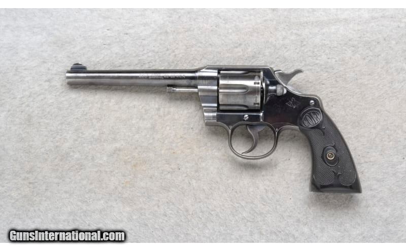 Description: This Colt Model Army Special is a 6 shot double action revolver in .32-20 WCF Cal. It has a 6 inch barrel. A blade front sight and an integral notch rear sight. The grip is a checkered hard black plastic with Colt. The left side grip has a chip missing. .32-20 WCF SOLD Chambers: 6 shot. Metal Condition: "Fair. Has some blue wear, freckling and minor handling marks. Wood Condition: Black plastic left side grip has a piece missing. Bore Condition: Very Good. Barrels: 6 inch. Triggers: SA/DA Weight: 38 oz. Sights: Blade front. Integral notch rear. Item Location: Colorado Springs, CO |