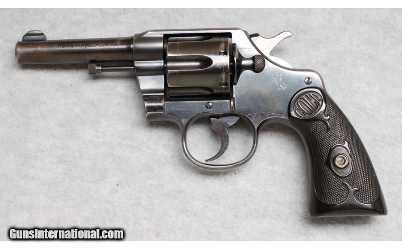 Description: Good condition, some finish wear, small nicks and scratches. The Colt Army Special is a double action, six round revolver. They were built from 1908-1927. The Army Special started life as the New Army & New Navy and would evolve into the Official Police in 1927. It was available in 4", 5" and 6" barrel lengths. Available calibers were 22LR, .32-20, .38 Special, .38/200 and .41 long Colt. .32-20 WCF SOLD Chambers: Revolver Metal Condition: Good Bore Condition: Bright Barrels: 4 Triggers: Double and single action Butt Pad: Factory grips Item Location: La Vista, NE |