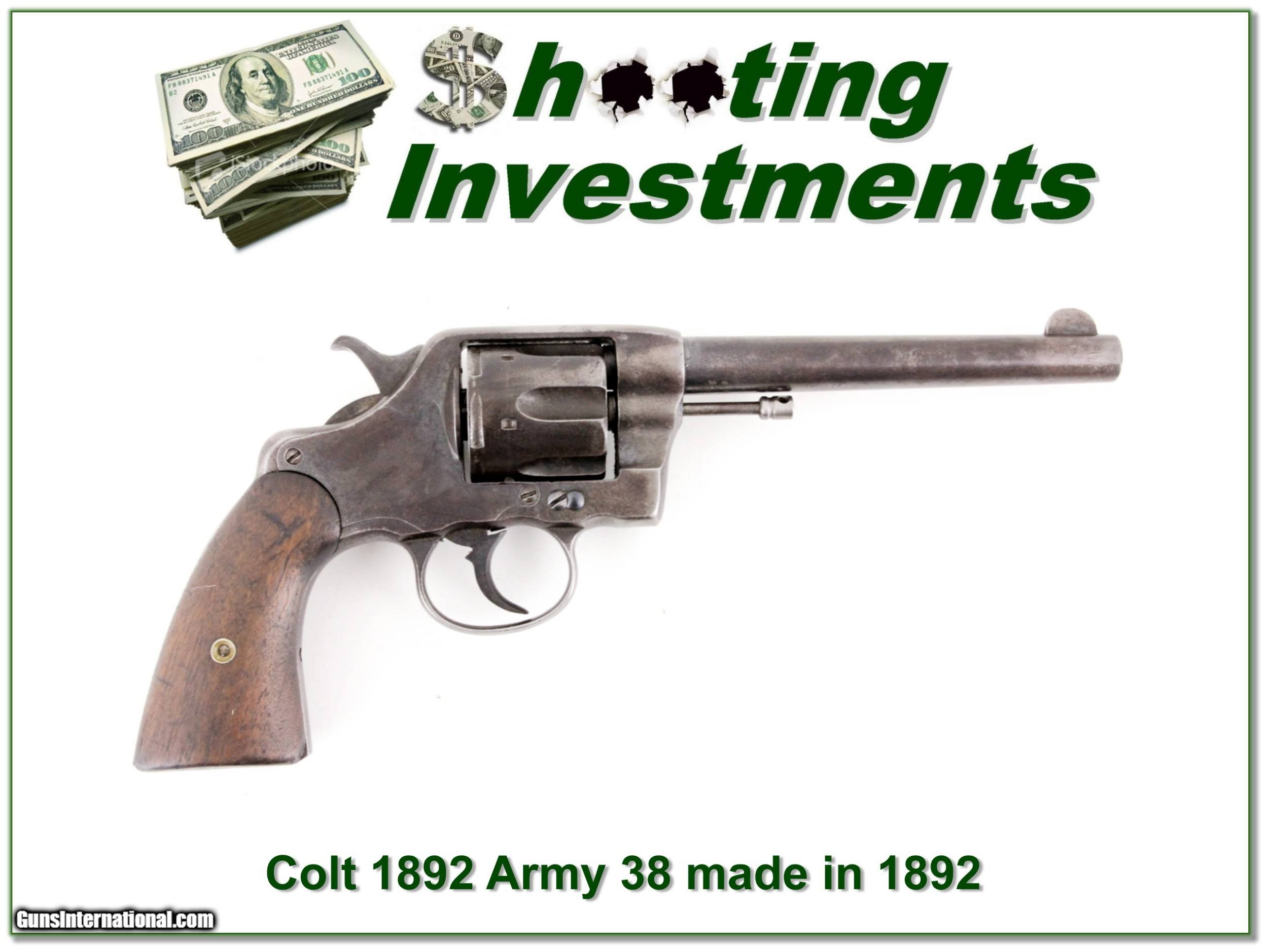 Description: Collectors, this is a very nice first year Colt 1892 Army 38. All numbers match! S# 5628 1st contract, 2nd ship 9-1892. I am selling this one on consignment and as such lay-a-way can’t be used. It does of course have the standard 3-day inspection. Shipping with insurance is $39. Please email me with any questions or larger pictures. (Consign your quality firearms with Shooting Investments for only 12%! Let me know if you have any you would like to sell!) 18-0764 Payment: Payment is by Money Order, Cashiers Check or Personal Check. I can now also accept MasterCard and Visa with a 3% convenience fee. PayPal can be used for some items but never firearms. Please let us know if you would like to pay via PayPal. Shipping: The shipping charge will be listed in each description. It is $39 for most long guns and $29 for most handguns. Some heavy guns or those insured for over $2000 will be higher. Shipments to Alaska and Hawaii are higher because air shipment is required. Most firearms are shipped on Tuesday and Thursday and usually in 5 days of receipt of payment. We package all shipments carefully and insure them. For long guns you can purchase a new Plano case for $19. They now cost us $22 when buying 100 at a time. Optics are shipped Priority Mail and most other non-firearm shipments are shipped First Class. Returns: Our return policy is simple. If for any reason you are not pleased with your purchase, you may return your item for a full refund of purchase price. Ammunition cannot be returned. It is important to us that you are happy. Guns cannot be fired or dissembled before returning them and they must be returned in the same condition as received. Notification of a return must occur with-in 3 days of receipt at your dealer. Shipping, convenience and dealer fees are not refundable and are the responsibility of the buyer. Lay-a-way: If needed, we offer a 60 day lay-a-way option on most firearms. It is 1/3 now, 1/3 in 30 days and 1/3 in 60 days. Lay-a-way firearm sales are final and if not completed the first payment cannot be returned. Consigning your firearms with Shooting Investments: We will help you get top dollar for your firearms. While most local guns shops charge 20% or more, our fee is only 12% with a minimum of $75. At your local gun shop it might take months to sell. Selling on-line provides instant access to thousands of interested buyers. You won’t find any other on-line dealer willing to sell your firearms for only 12% or listing every gun on 3 separate s. Selling through an House typically costs the seller 15% and the buyer an addition 15% (so 30%) and you have to wait several months to sell and longer to receive funds. If properly priced, we will sell your firearms in a few weeks. Send us an email or give us a call and we’ll explain how easy it is for you to get top dollar. Trading: Trading for use is really just buying your gun to re-sell. If you have a gun you want to trade, please email a picture and we will let you know what we can give or it. You will always get more if we sell it for you on consignment. Help for California Buyers: We are happy to ship to California. It is the buyer’s responsibility to make sure any item you buy is legal in your state. We are also happy to help with your purchase of a firearm from someone other than us. If you see a gun you would like to buy but the seller can’t or won’t ship to California they can ship to use and we’ll then ship it to your California dealer. The cost for this service is only $30 + shipping. Let us know if we can help! SOLD |