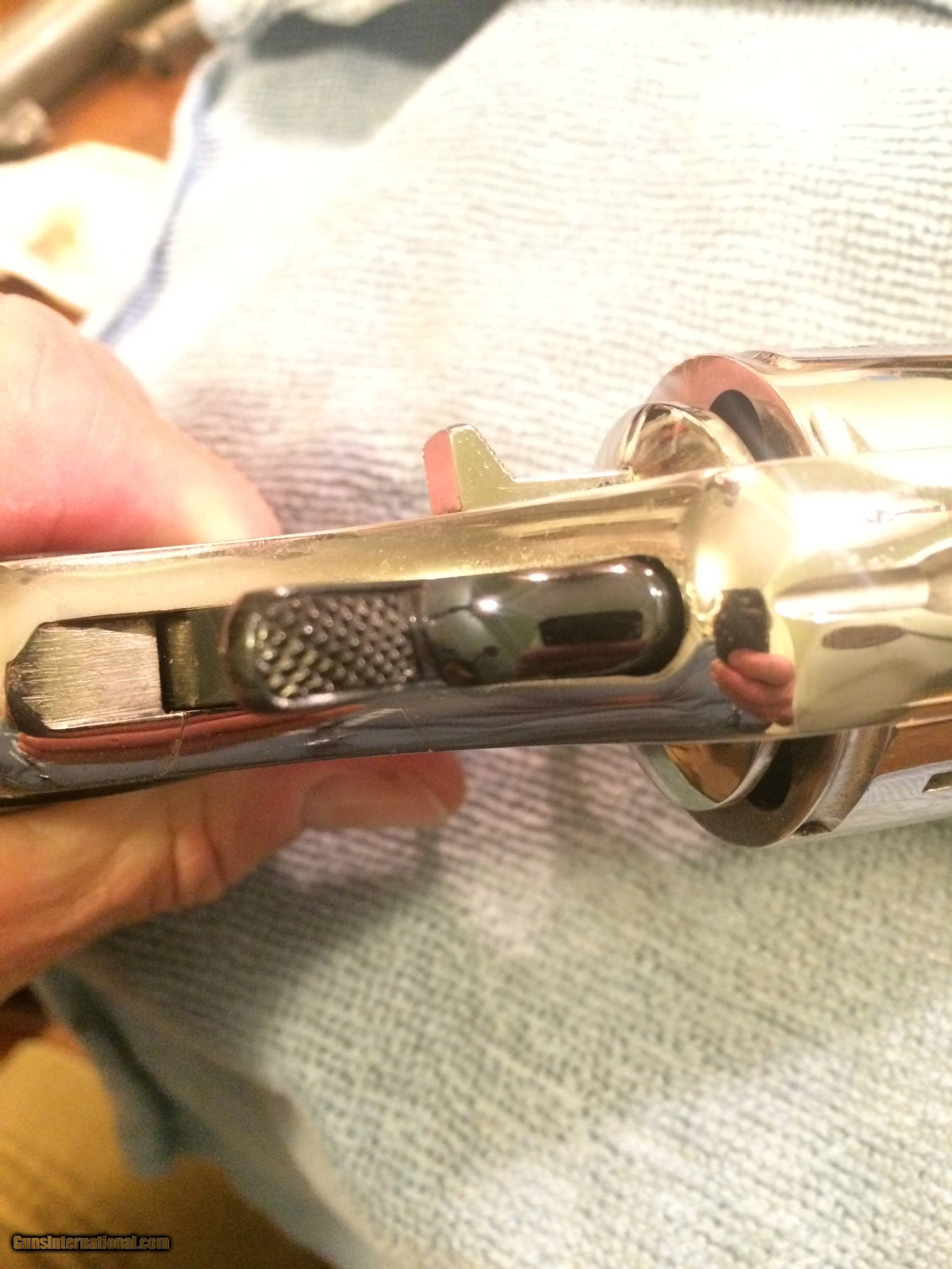 Description: Colt DA in near perfect condition. 1895 Army civilian model in very fine nickel. .38 Colt. This gun is as good as ive ever seen. Barrel address and markings are super crisp. Action great. Grips original in fine condition. Looks hardly used for a gun made in 1903. Ships to FFL for $40.00 SOLD Curio/Relic: Yes Handgun Caliber: .38 Long Colt Manufacturer: Colt Model: DA |