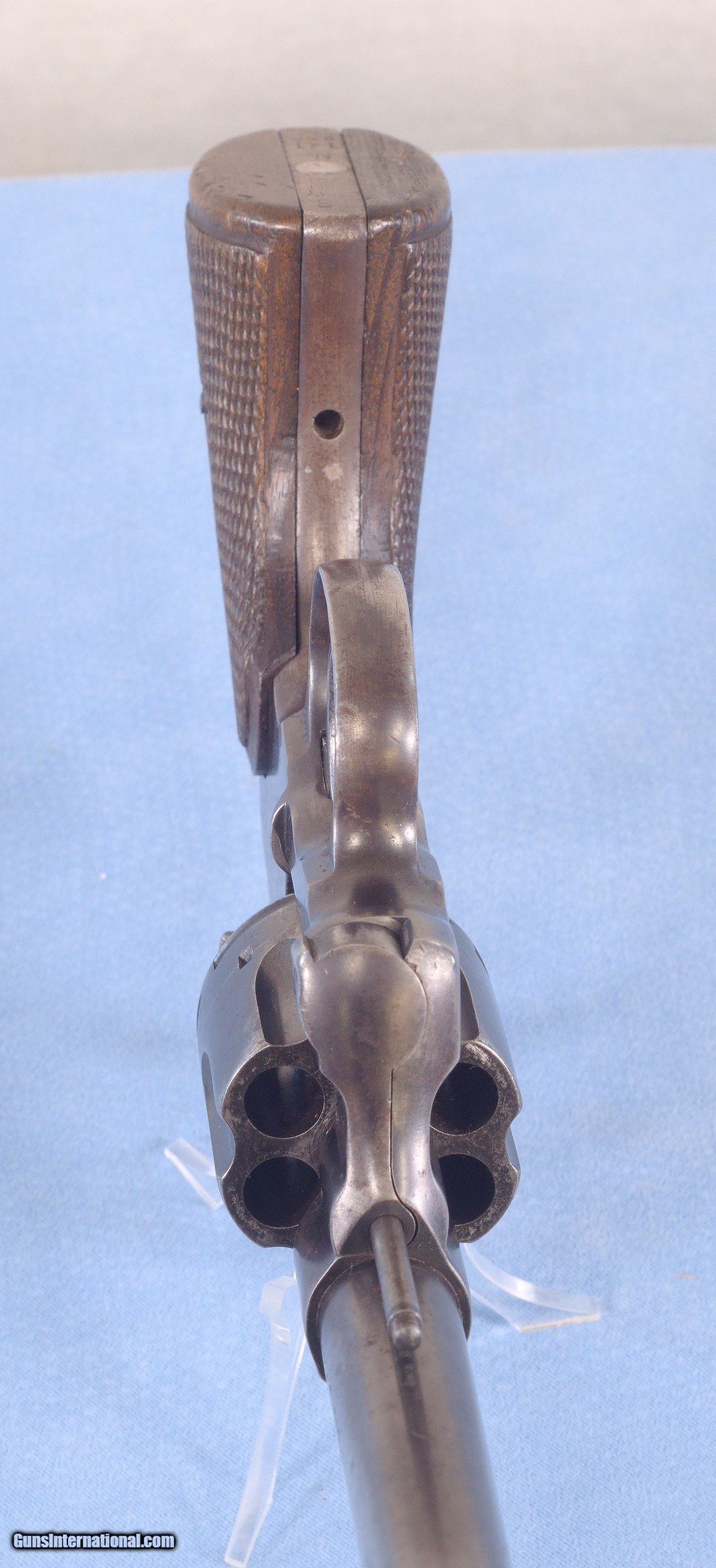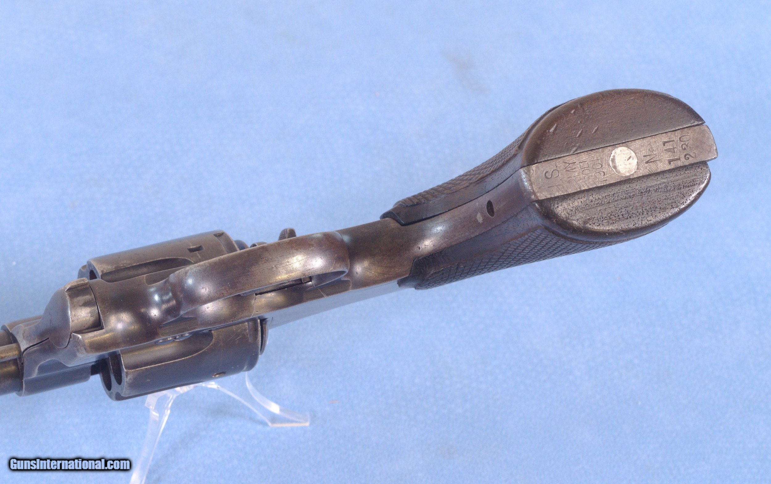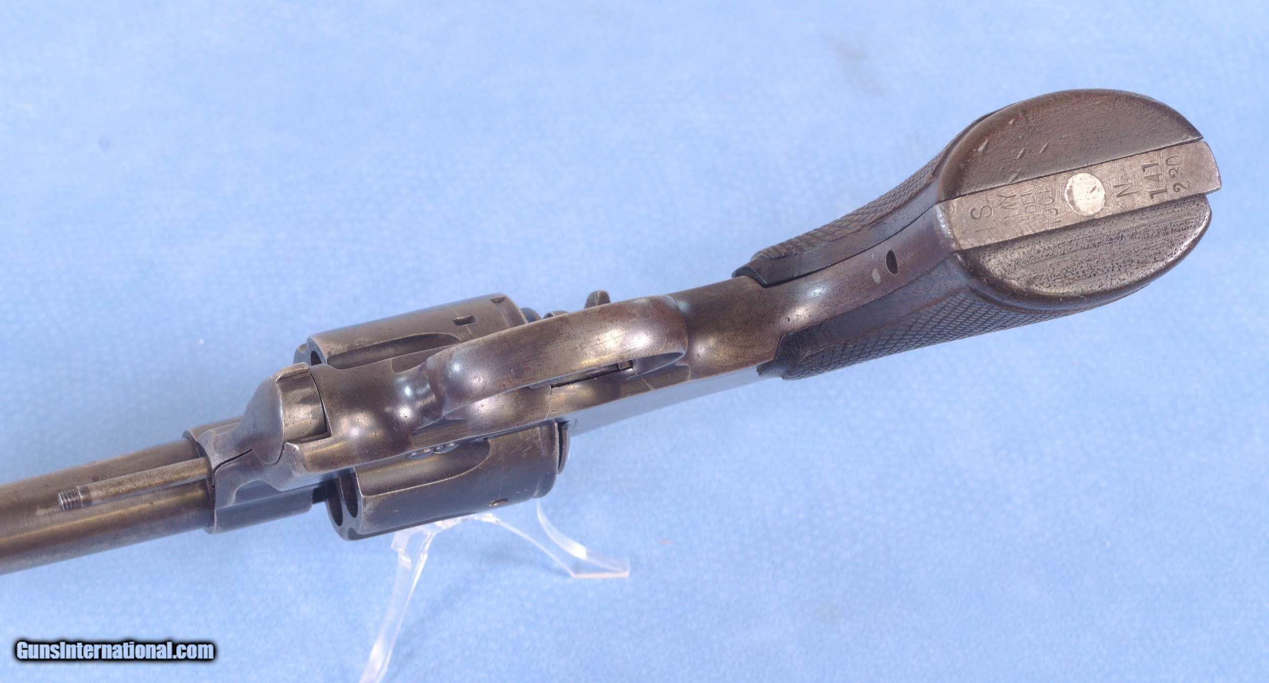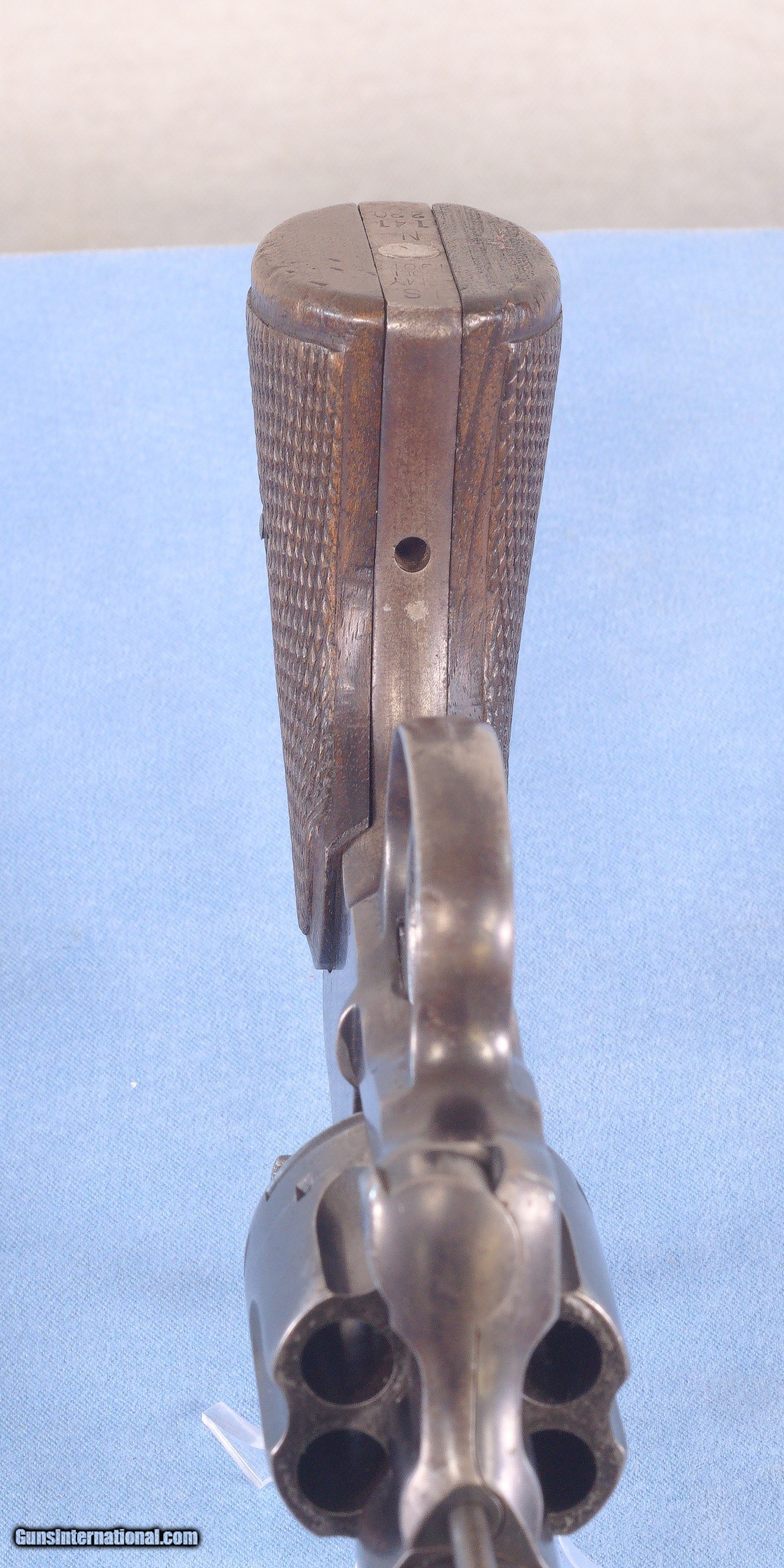 Description: Presented here is a Colt New Army Model 1901 chambered in .38 Long Colt caliber. This revolver has matching numbers. This Revolver has a blade front and frame notch rear sight. The top of the barrel is marked with the two line Hartford address and patent date (1884-1895) markings with "COLT D.A. 38" on the left side. Inspected by R.A.C. (Rinaldo A. Carr). This revolver is in good overall condition with some play in the cylinder and a chip in the rear of the right grip panel. Proper markings on the butt of the grip. It looks like a lanyard loop existed at some point but has been filed down flush with the butt. This fine Colt would make a great addition to a collection of Colt branded militaria. PRICE: $395.00 We are Antique & Modern Firearms in Lexington, KY, a dealer of fine firearms since 1974. To Inquire please call 859-276-1419 We Buy, Sell, and Trade Firearms & Knives. Do you have an Individual Firearm, Firearms Collection, or Firearms Estate to sell? Give us a call or send an email, and we can talk about buying the item(s) outright or selling them on consignment for you. NOTE: No additional fee for a Credit Card payment SOLD Handgun Caliber: .38 Long Colt Manufacturer: Colt Model: 1901 Serial Number: 141230 Barrel Length: 6 inches Condition: Good Metal Condition: Good Wood Condition: Good Bore Condition: Good Manufacture Date: 1917 |