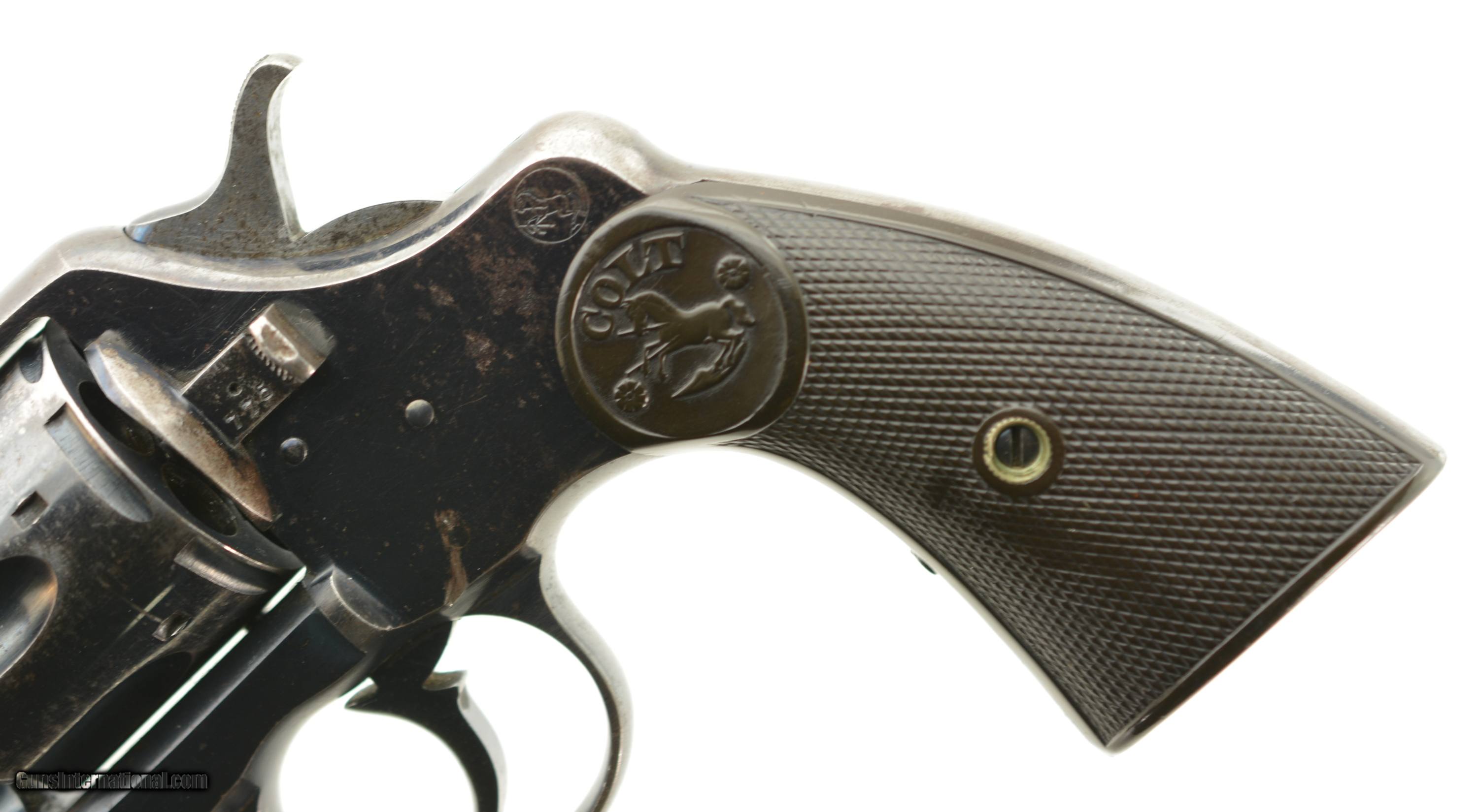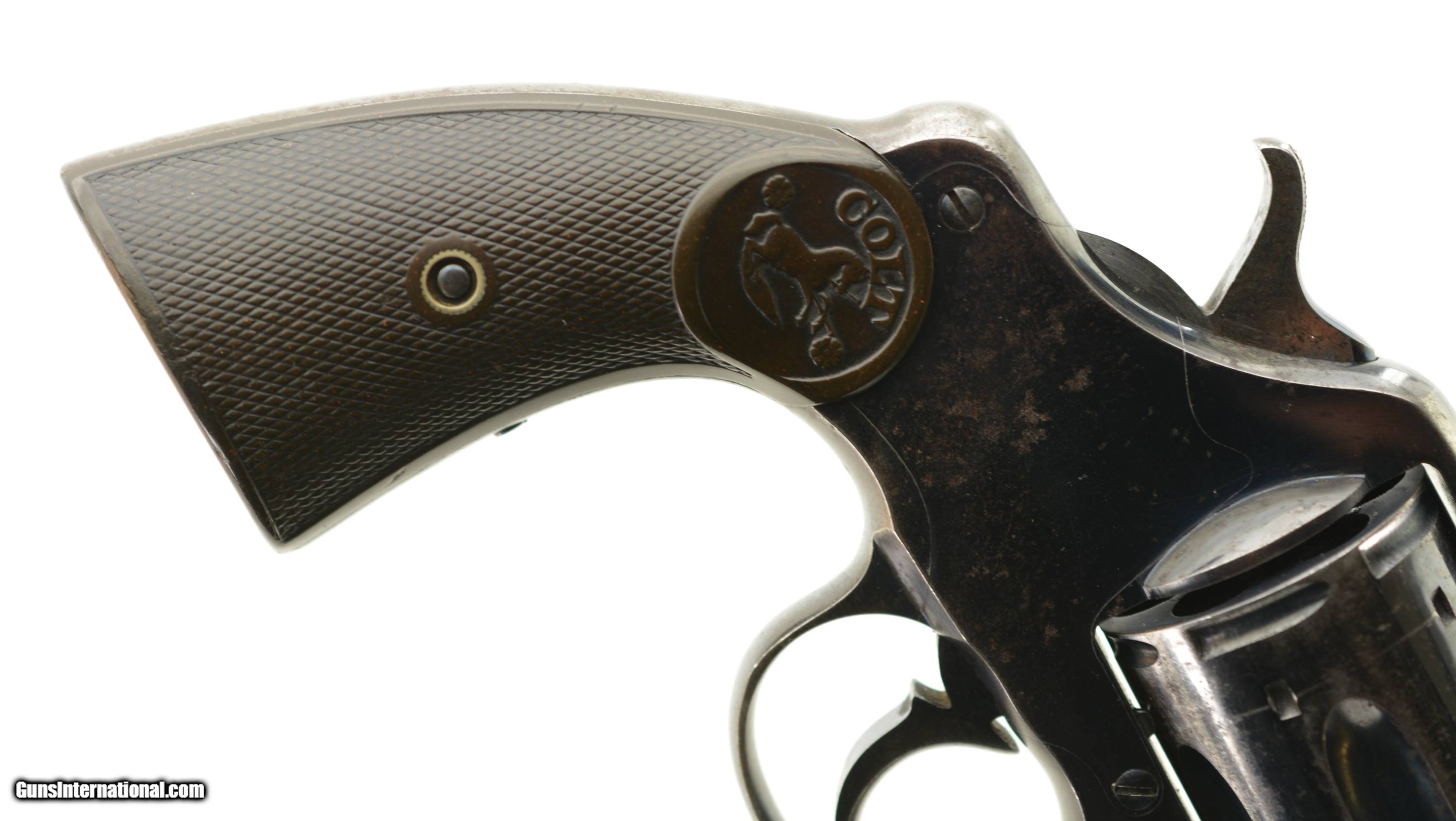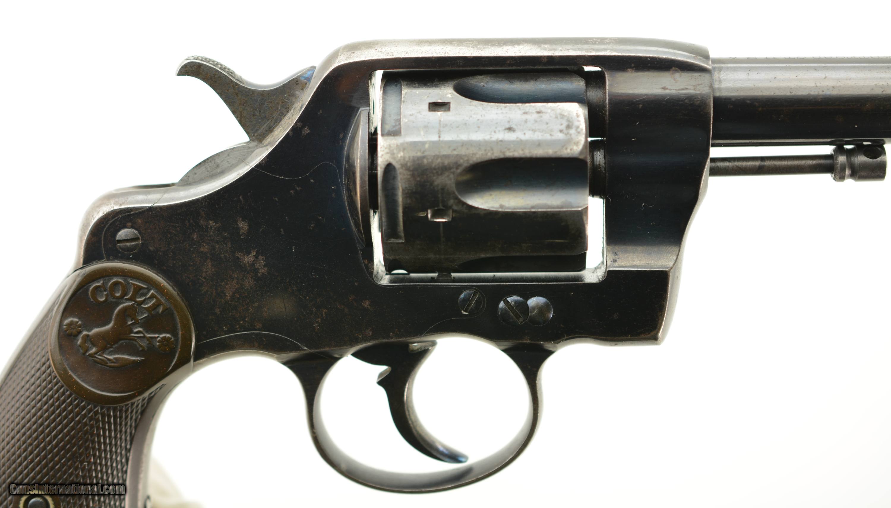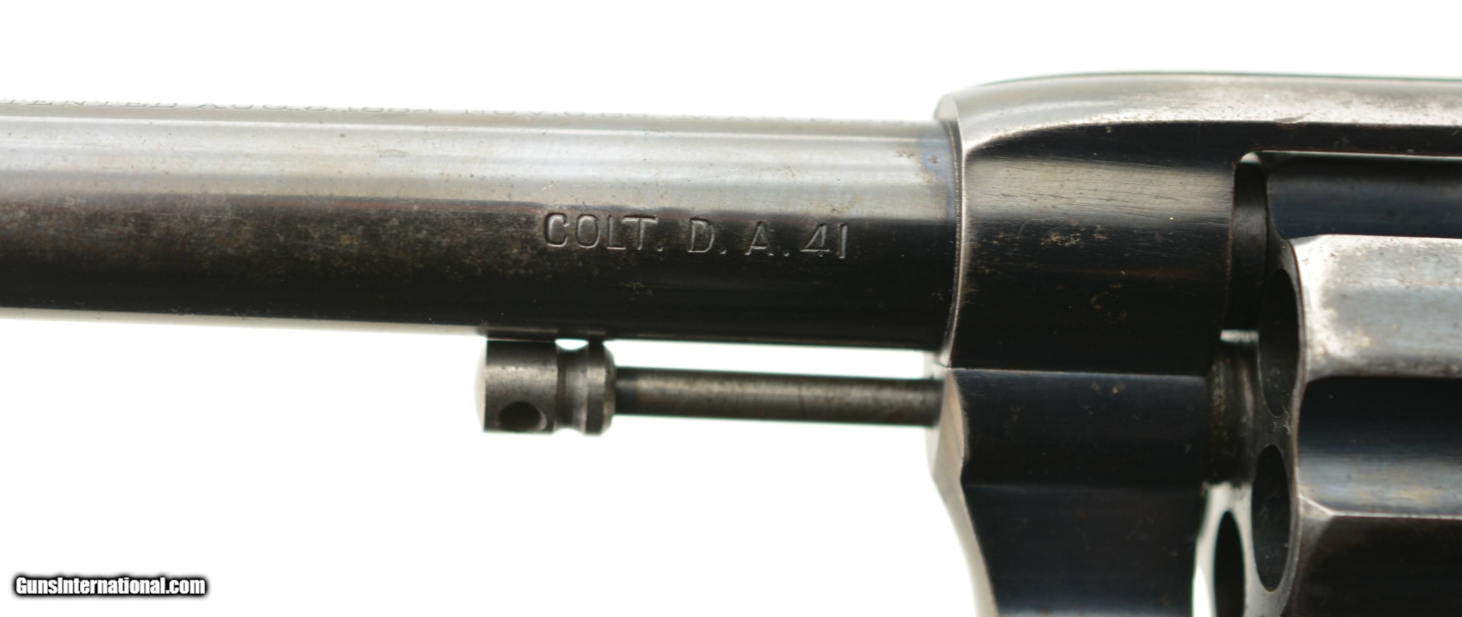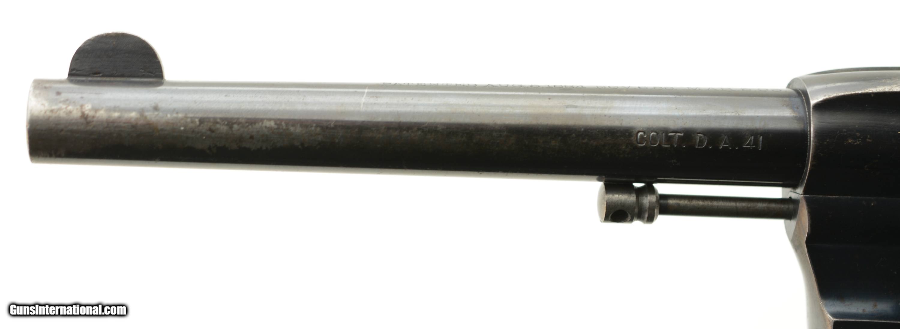 Description: Serial #180583, .41 Colt, 6" barrel with a fine, bright bore that has a small amount of freckling within the grooves. The metal surfaces of this handsome, 1902-manufactured revolver retain about 80-85% of the original blue with some moderate silvering and fading along the high and projecting edges. Some handling marks are also present, and there are a few areas of pinprick pitting and specks of mild surface oxidation. The trigger still retains lots of original fire blue, while the hammer has thinning fire blue remaining along the spine, with light freckling on the otherwise bright sides. The checkered hard rubber factory grips are assembly numbered to the gun and they rate near excellent with only a few handling marks, and some flattening of the points. There is a factory rework mark on the cylinder under the extractor, and the action is fully functional, with a good lock-up. This is a fine example of a Model 1902 Colt overall. FFL or C&R SOLD Curio/Relic: Yes Manufacturer: Colt Model: 1902 Serial Number: 180583 Caliber Info: .38 Gauge Info: .38 |