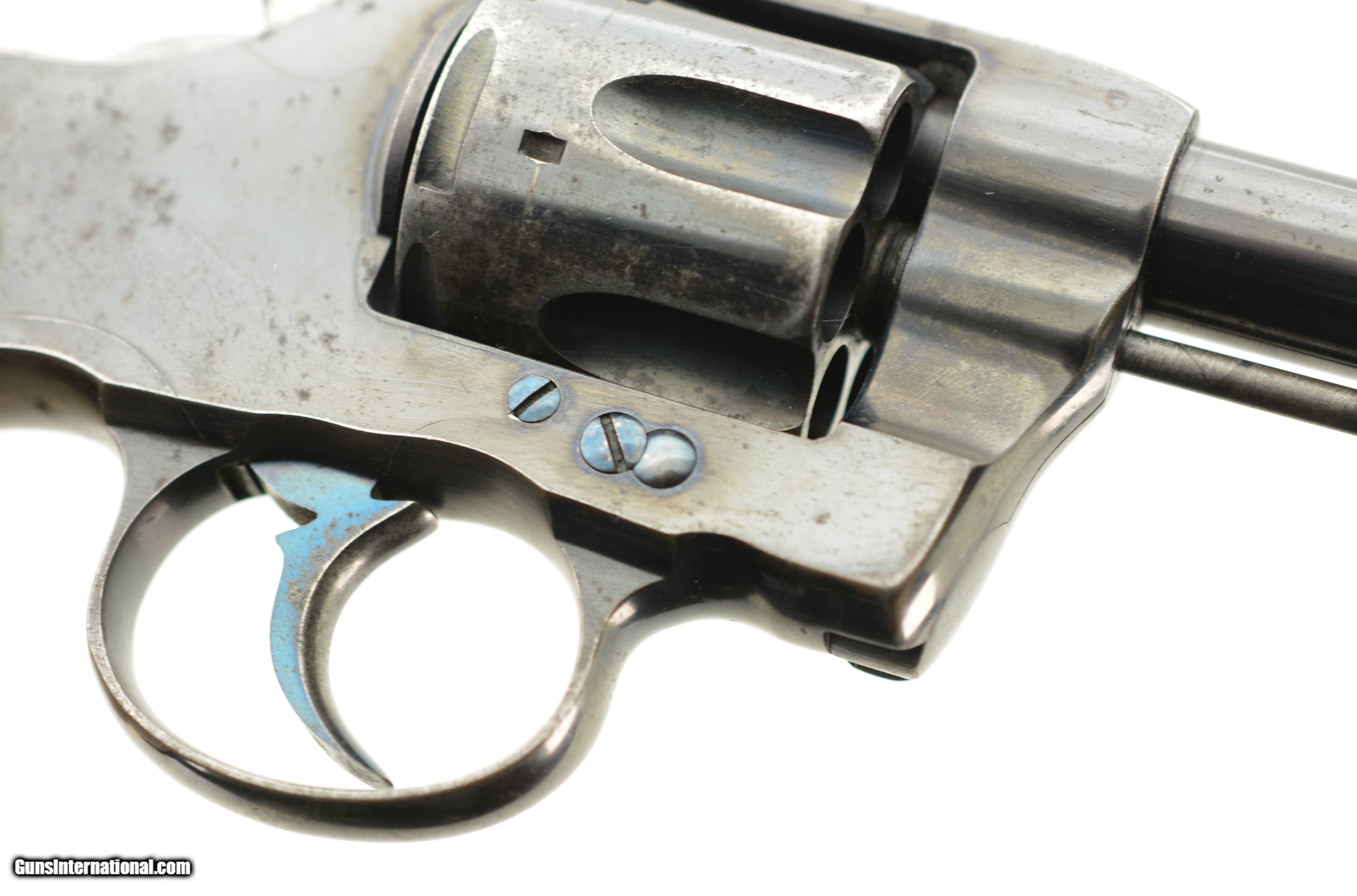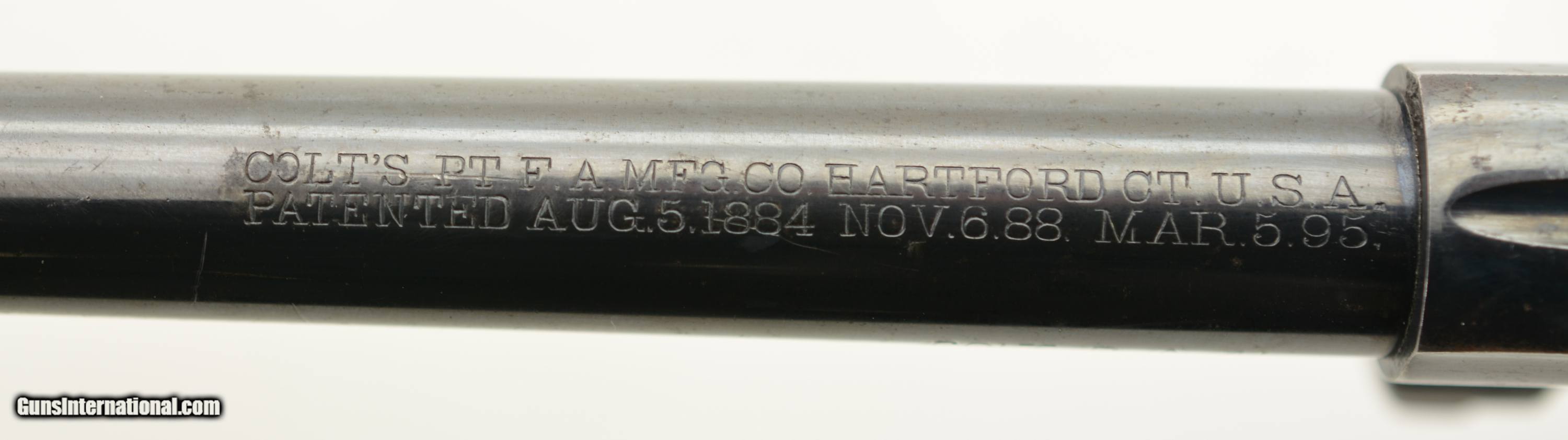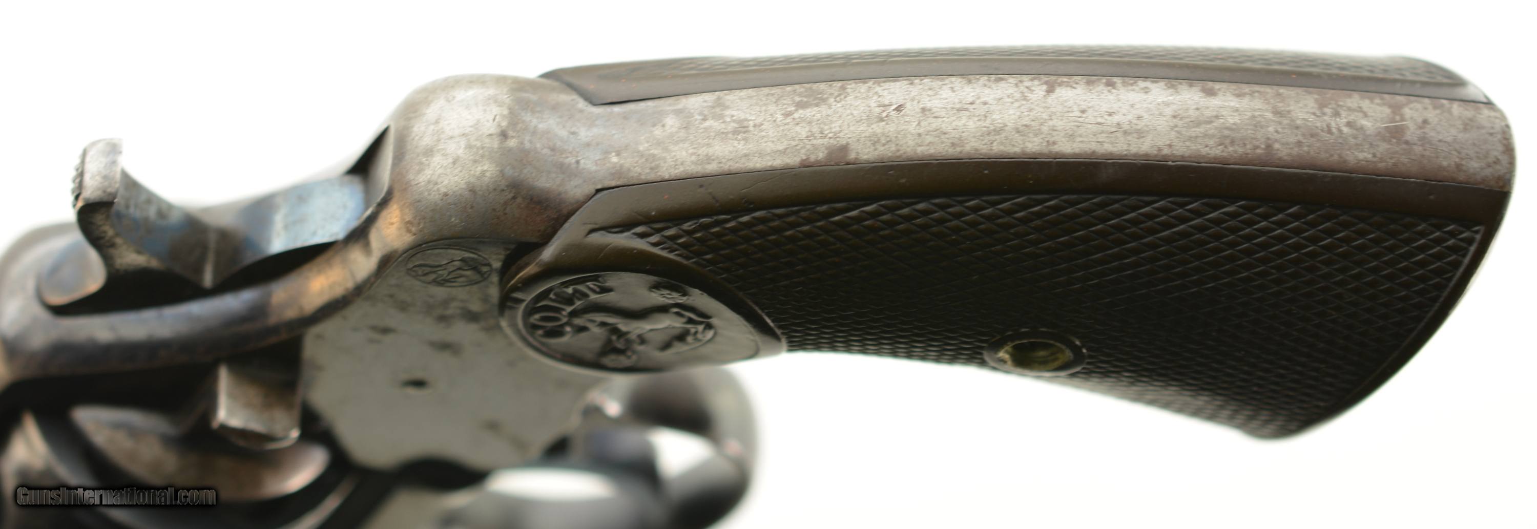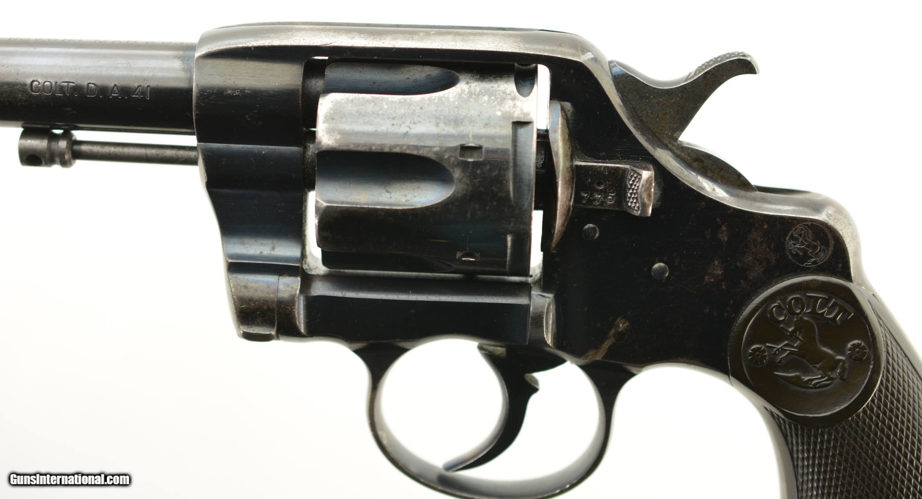 Description: Serial #180583, .41 Colt, 6" barrel with a fine, bright bore that has a small amount of freckling within the grooves. The metal surfaces of this handsome, 1902-manufactured revolver retain about 80-85% of the original blue with some moderate silvering and fading along the high and projecting edges. Some handling marks are also present, and there are a few areas of pinprick pitting and specks of mild surface oxidation. The trigger still retains lots of original fire blue, while the hammer has thinning fire blue remaining along the spine, with light freckling on the otherwise bright sides. The checkered hard rubber factory grips are assembly numbered to the gun and they rate near excellent with only a few handling marks, and some flattening of the points. There is a factory rework mark on the cylinder under the extractor, and the action is fully functional, with a good lock-up. This is a fine example of a Model 1902 Colt overall. FFL or C&R SOLD Curio/Relic: Yes Manufacturer: Colt Model: 1902 Serial Number: 180583 Caliber Info: .38 Gauge Info: .38 |