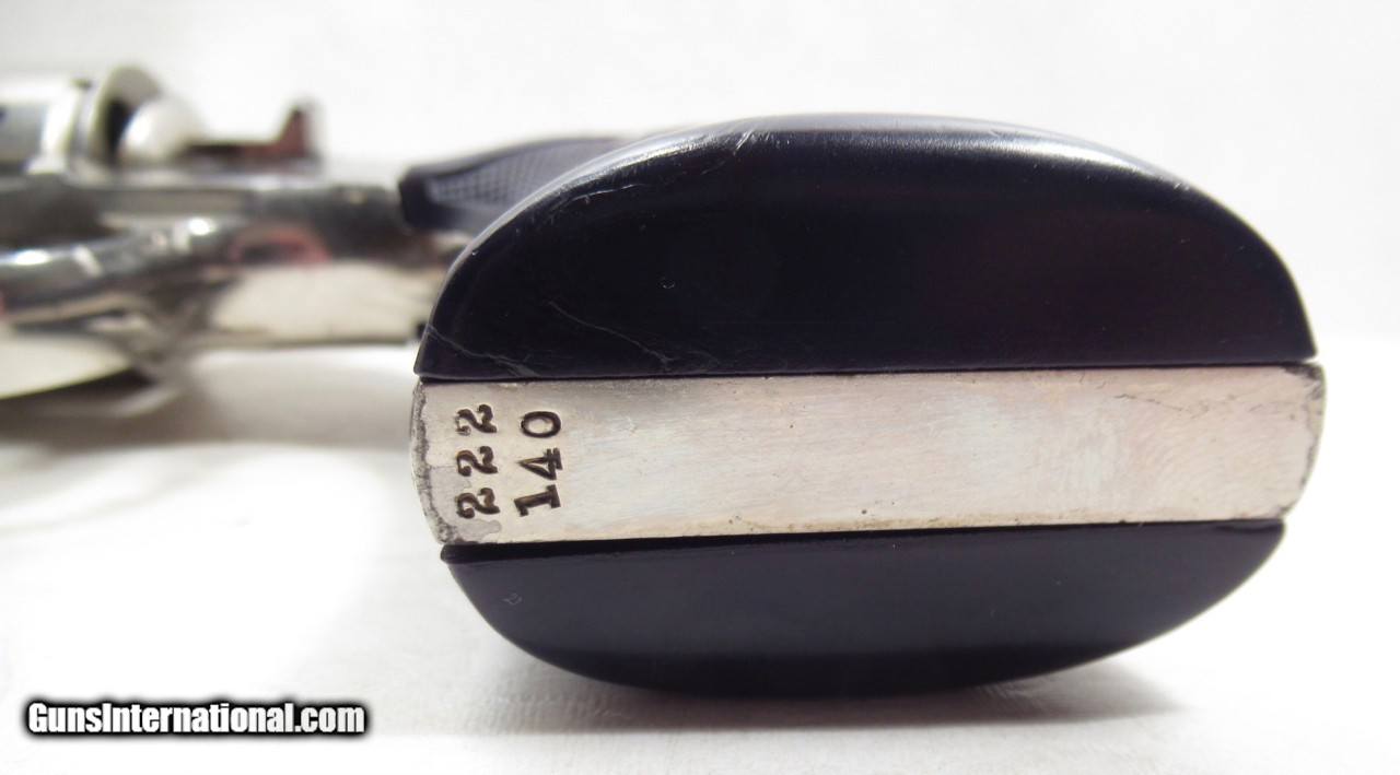 Description: Colt New Army Model Revolver; Serial No. 222140; Per Included Factory Letter: .38 Caliber with 4 ½” Barrel and Nickel Finish; Shipped to H&D Folsom of New York, NY on December 22, 1913 as Part of a 2 Gun Shipment; Good Amount of Original Factory Metal Finish Present; Grips not original to gun; Perfect Action and Bore; Nice 111 Year-Old Colt Revolver; See All Photos for Condition; No Texts; Call (254)541-5765 or Email Only; PERSONAL PROPERTY of Harold Wieser; NOTICE: We Do Not Do Any Consignments - All Items Listed are Owned by Us - NO SALES to New Jersey or New York City - Antiques Only to Massachusetts and California; NOTE: All Modern Firearms Must Go to FFL Dealer who will Accept From Individual with Texas Driver License; Price: $700 Shipped; Payment Address: Harold Wieser - 1466 U.S. Hwy 77 - Rosebud, TX 76570; SEND PAYMENTS VIA USPS PRIORITY MAIL; BEWARE of SCAMS!!! - DO NOT SEND MONEY or CORRESPONDENTS ELECTRONICALLY UNLESS YOU HAVE SPOKEN to HAROLD WIESER FIRST! (254)541-5765 SOLD Manufacturer: Colt Model: New Army Serial Number: 222140 |